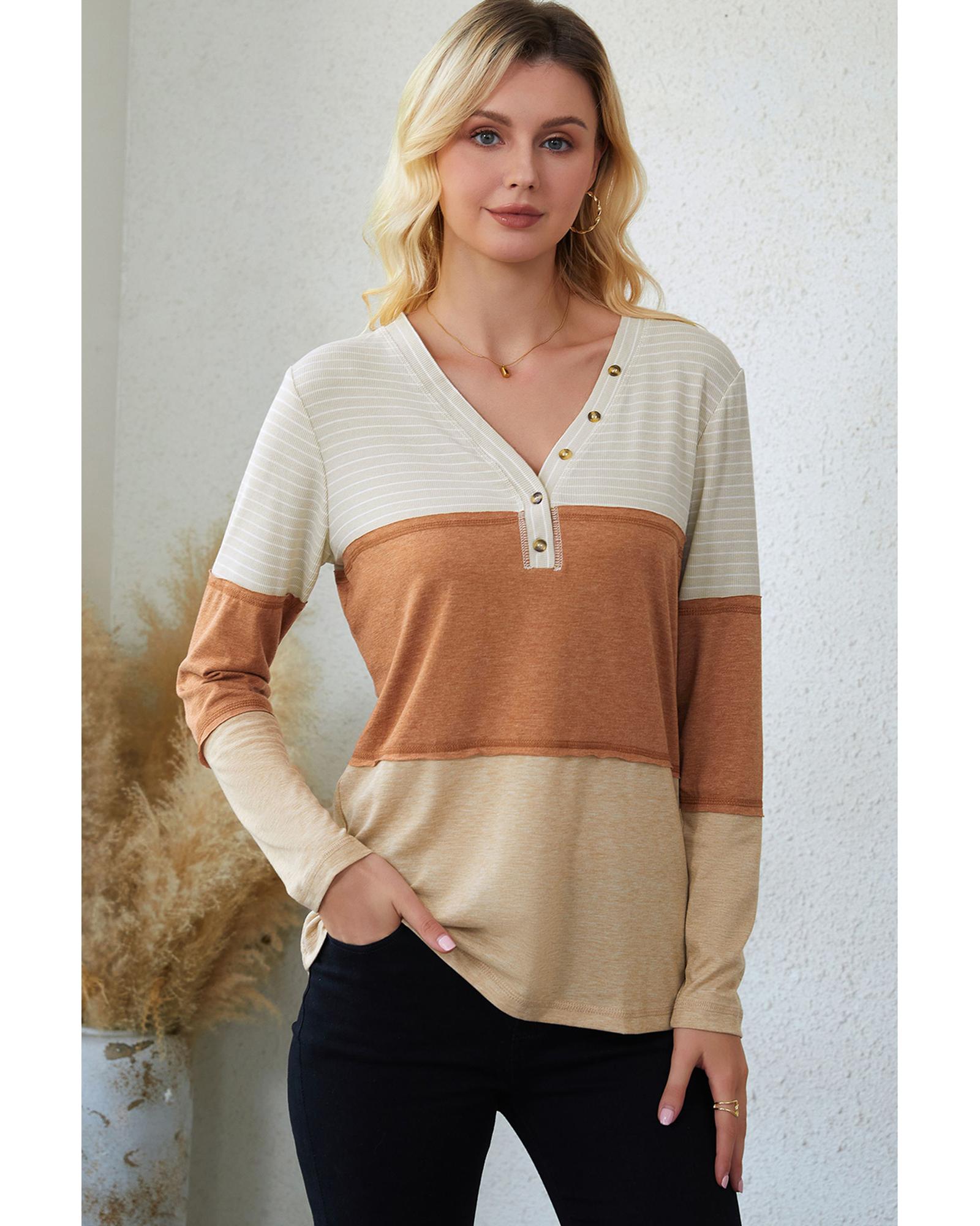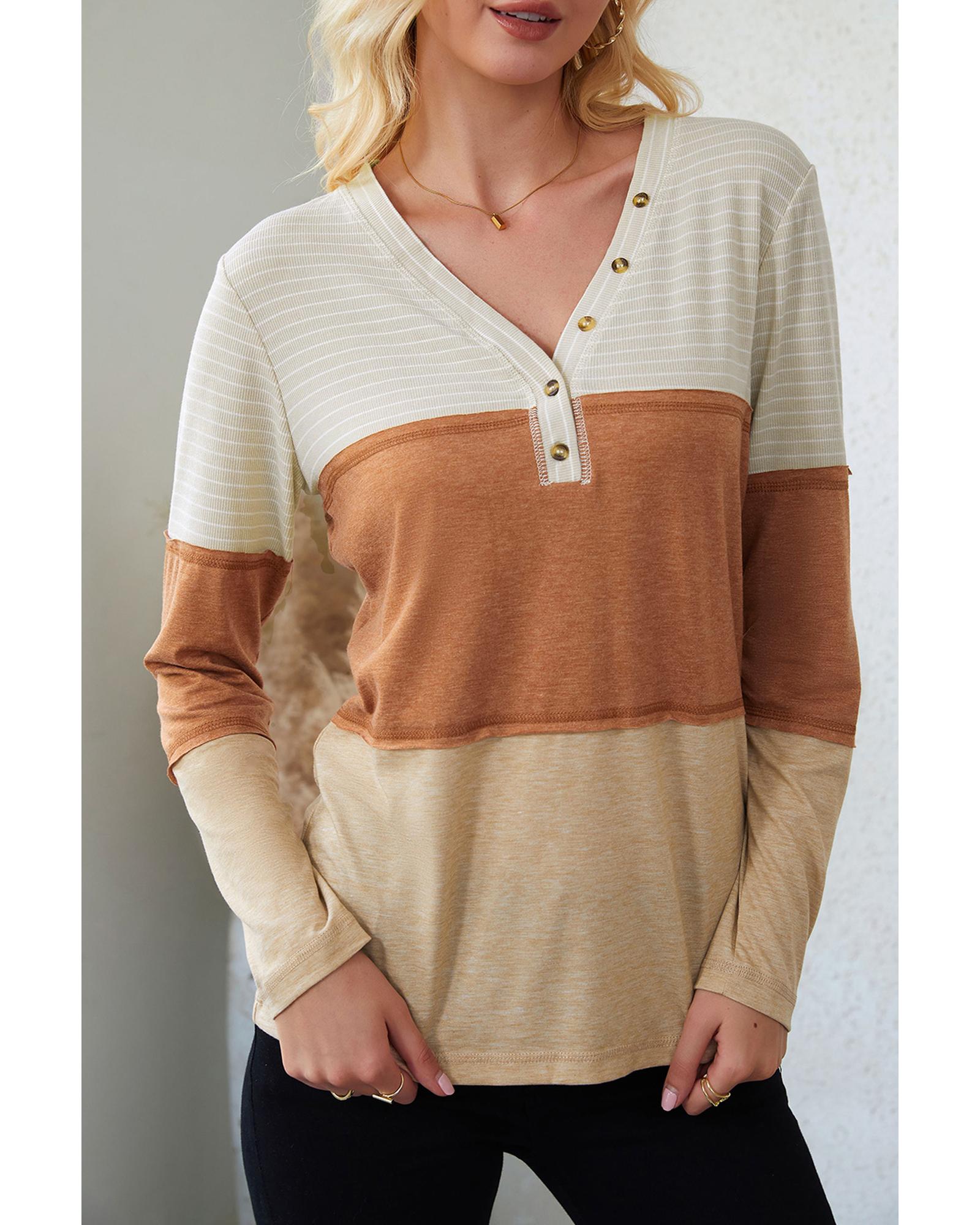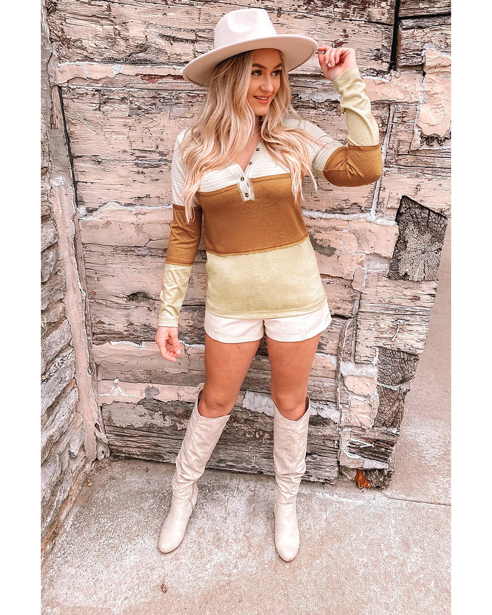 Azura Exchange Buttoned Waffle Knit Long Sleeve Top - L