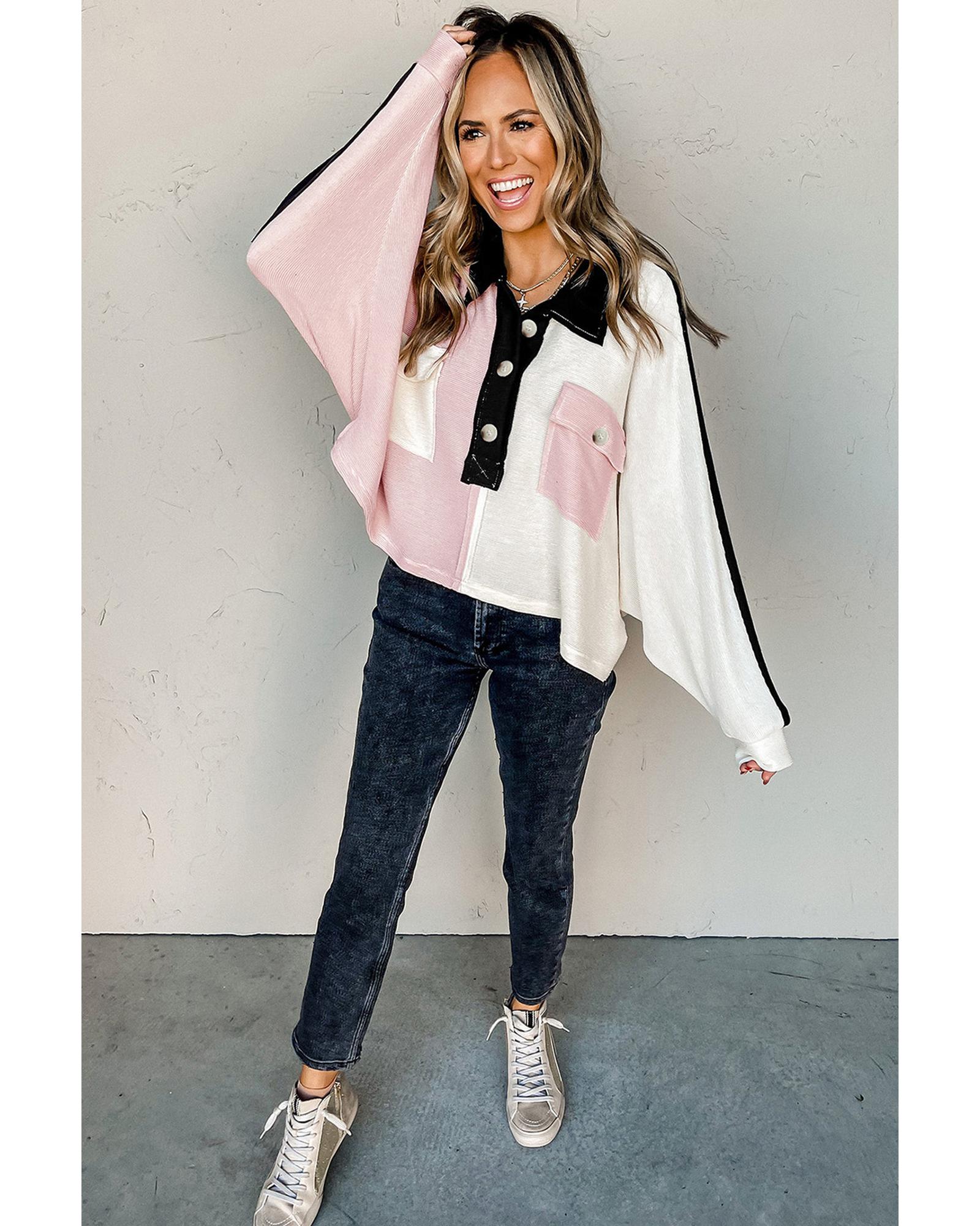 Azura Exchange Colorblock Flap Pockets Henley Collared Top – XL