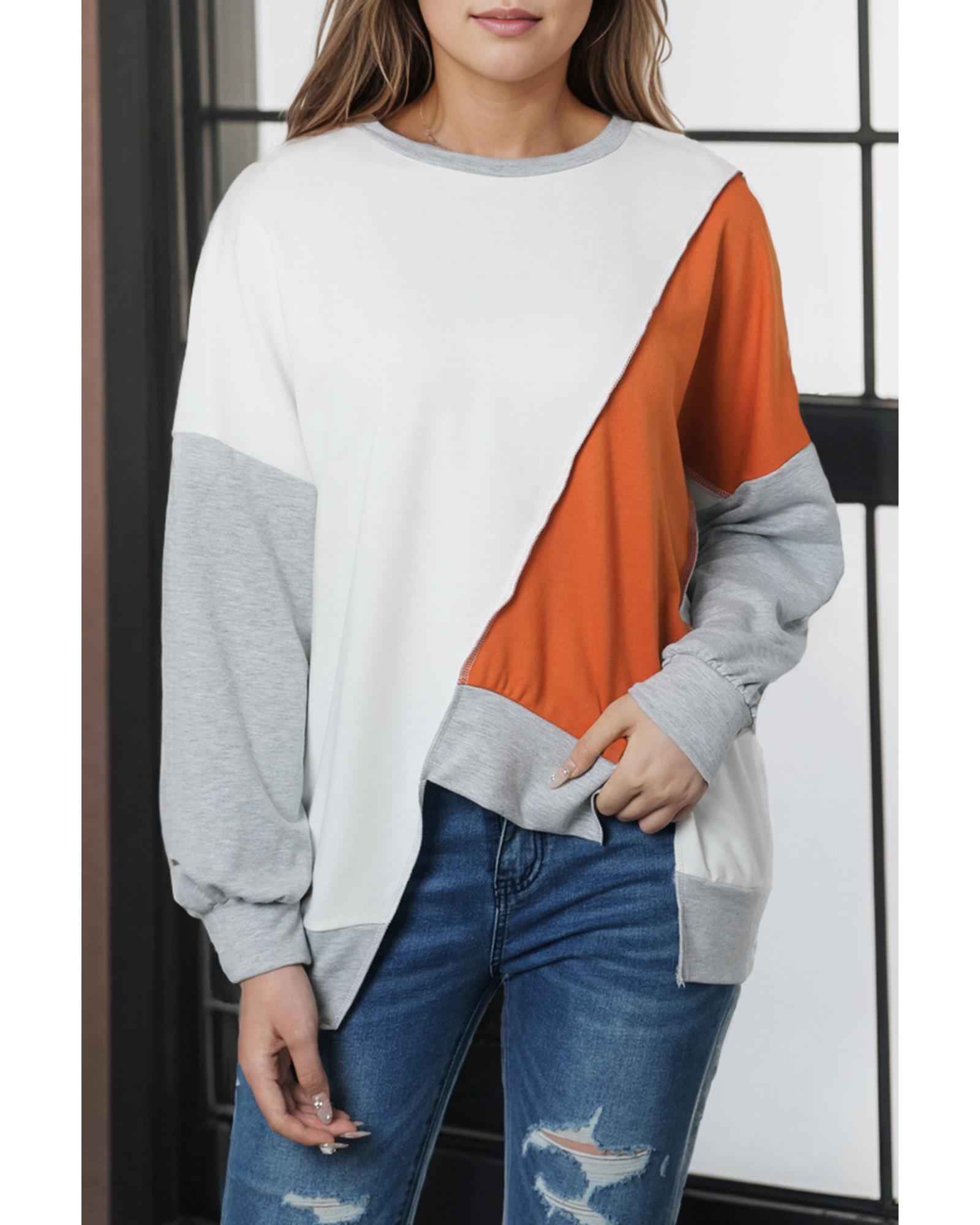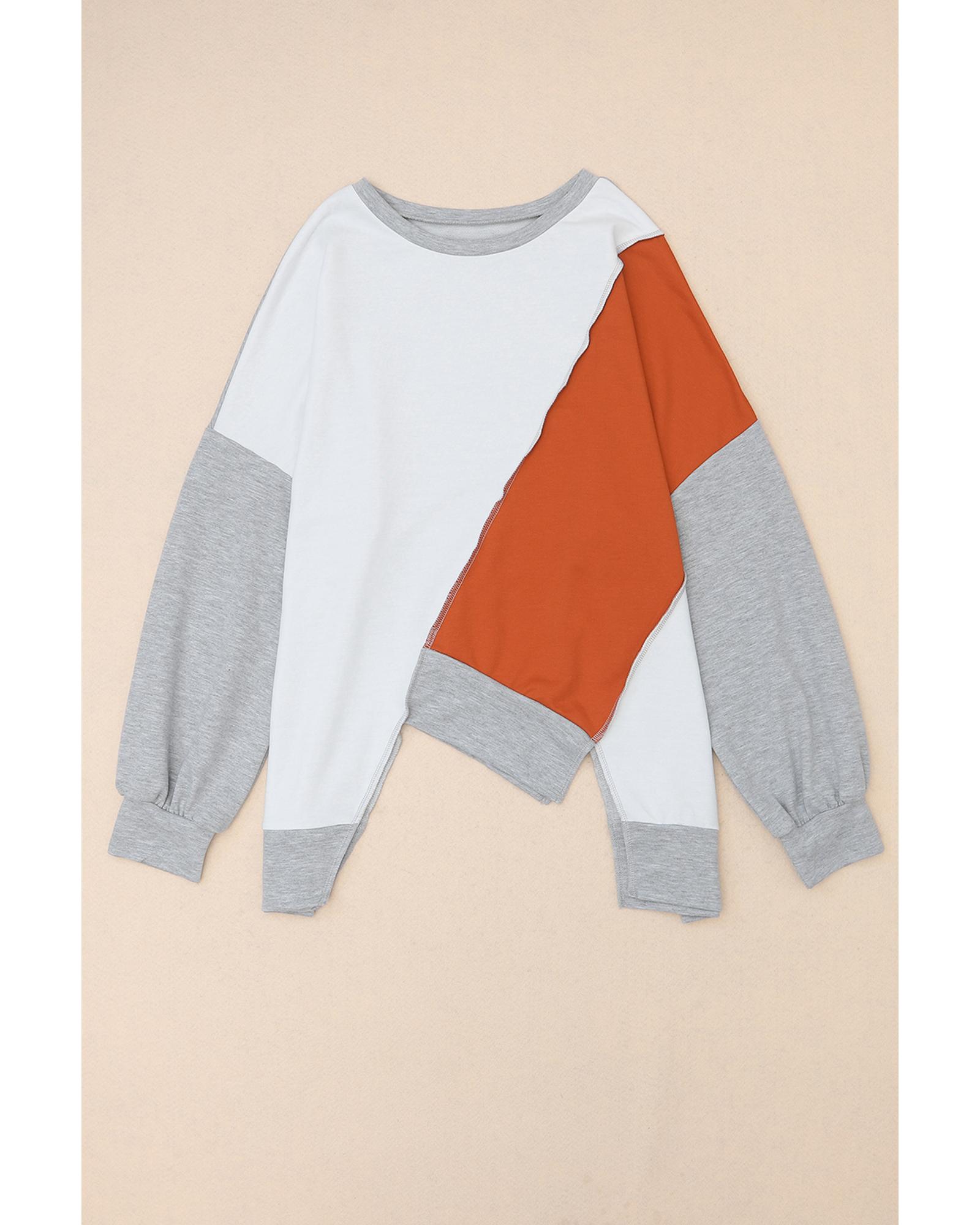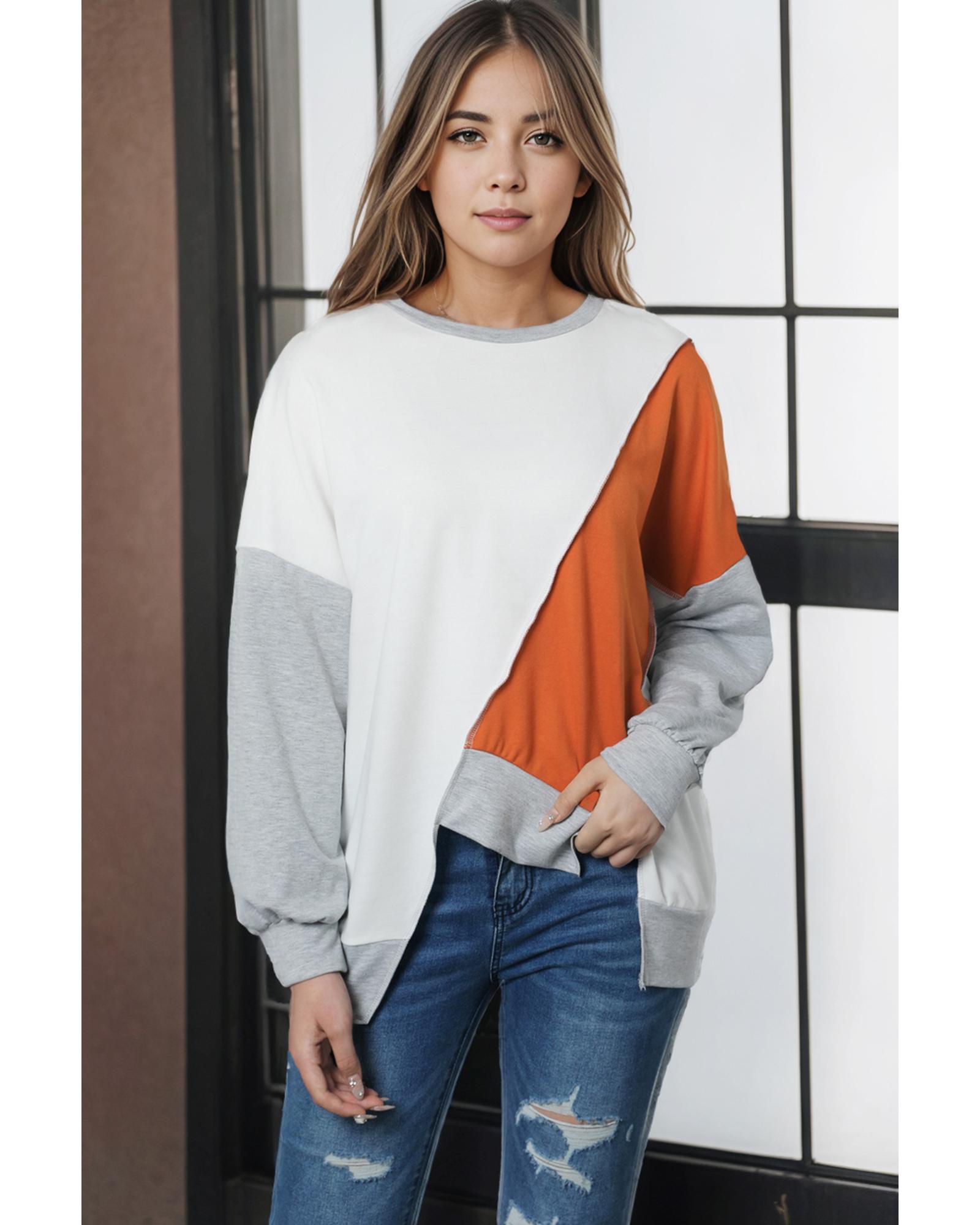 Azura Exchange Colorblock Stitching Irregular Hem Long Sleeve Top – XL