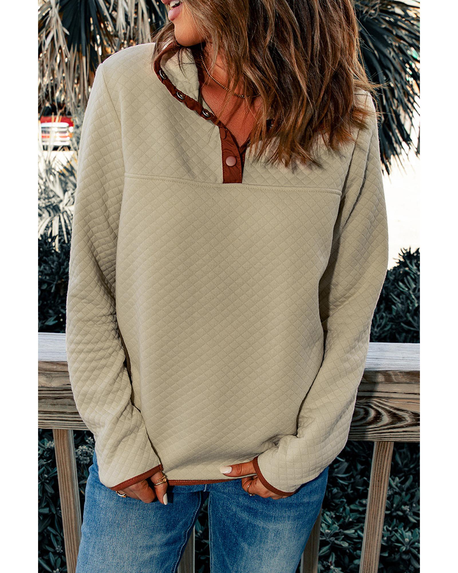 Azura Exchange Contrast Binding Snap Button Geometric Pullover Sweatshirt – M