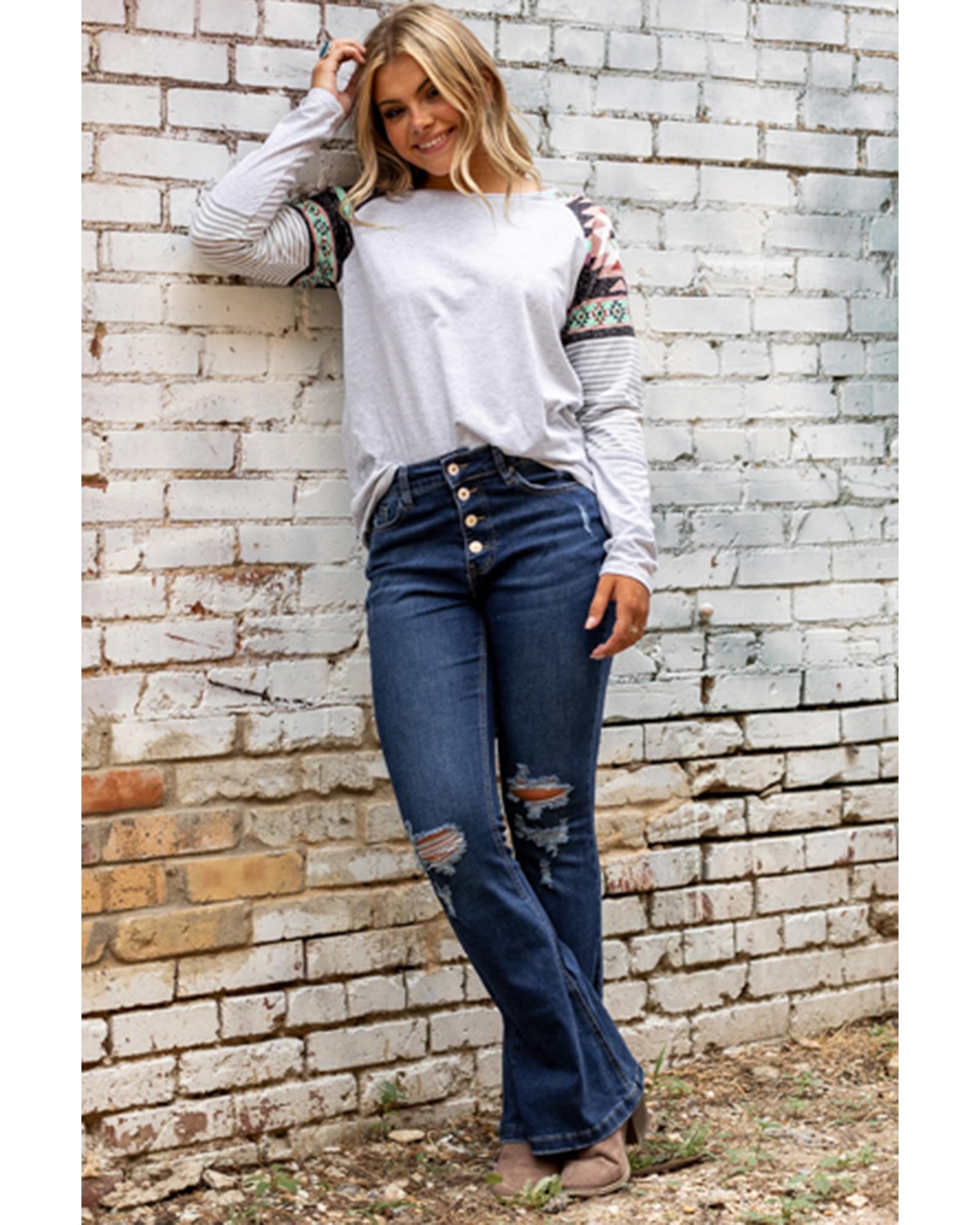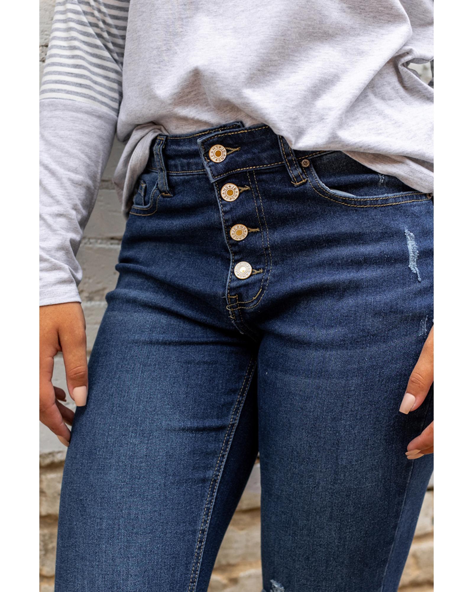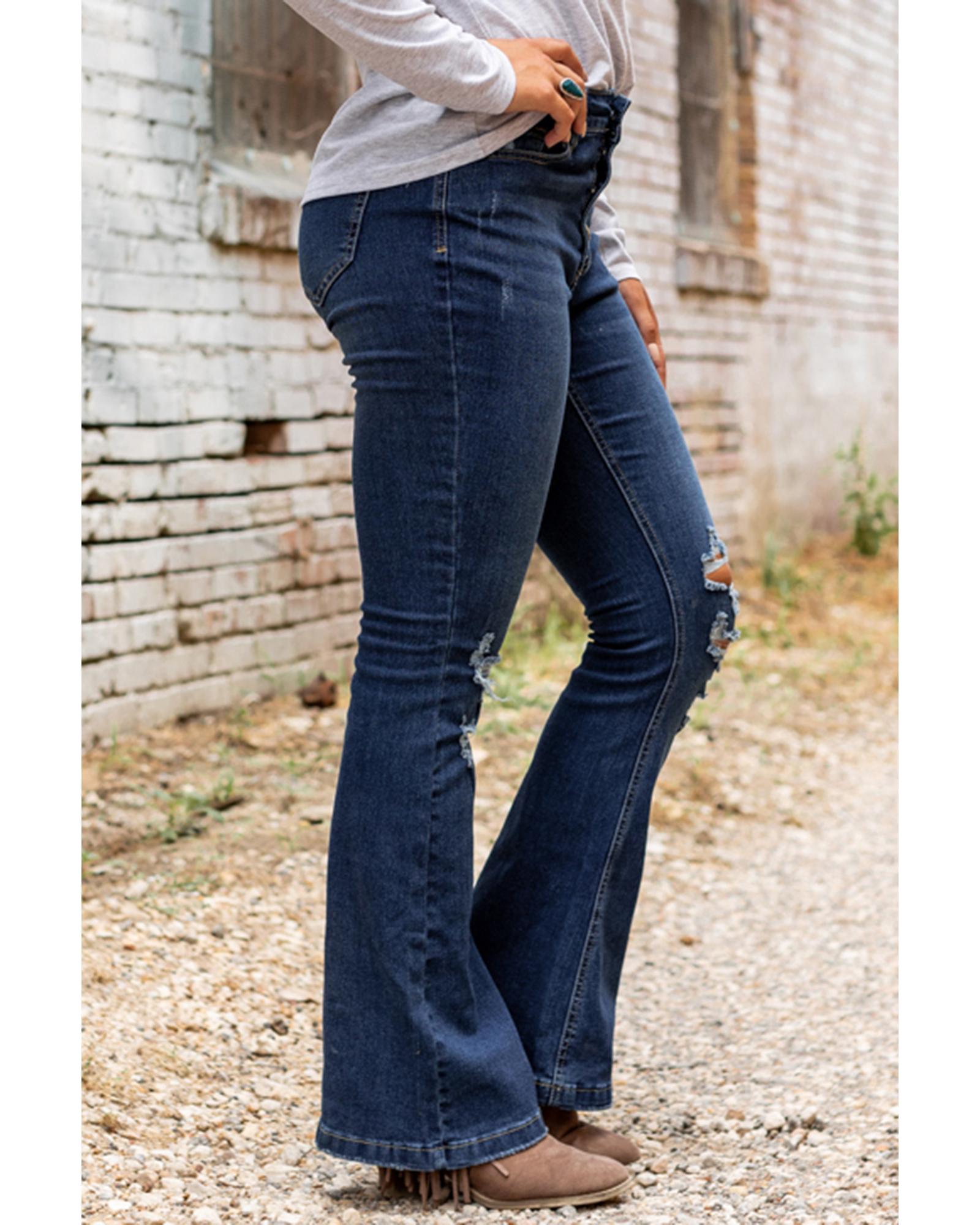 - Trendy and edgy Dark Washed Distressed Flare Bottom Jeans