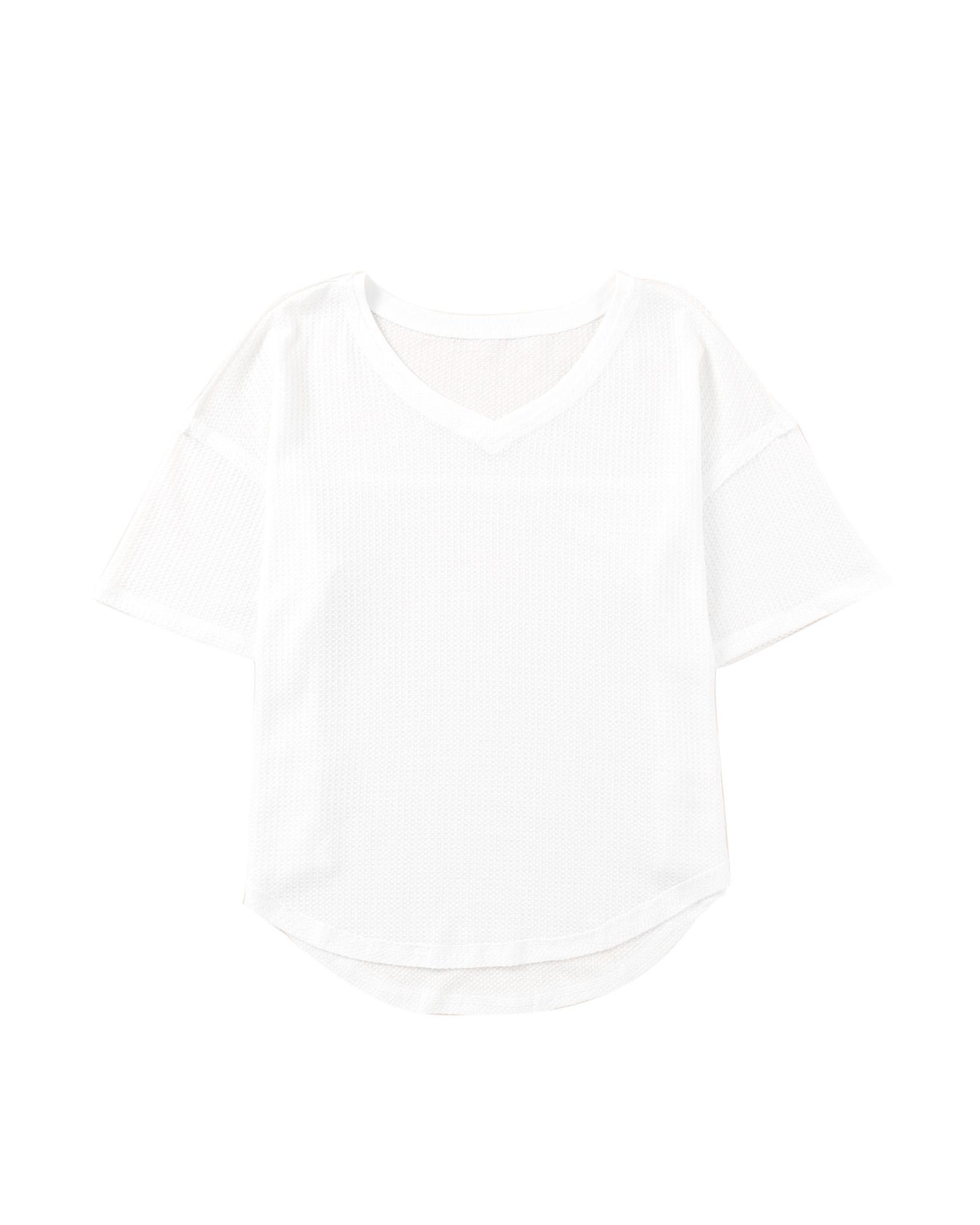 Azura Exchange Drop Shoulder Waffle Knit Top – S