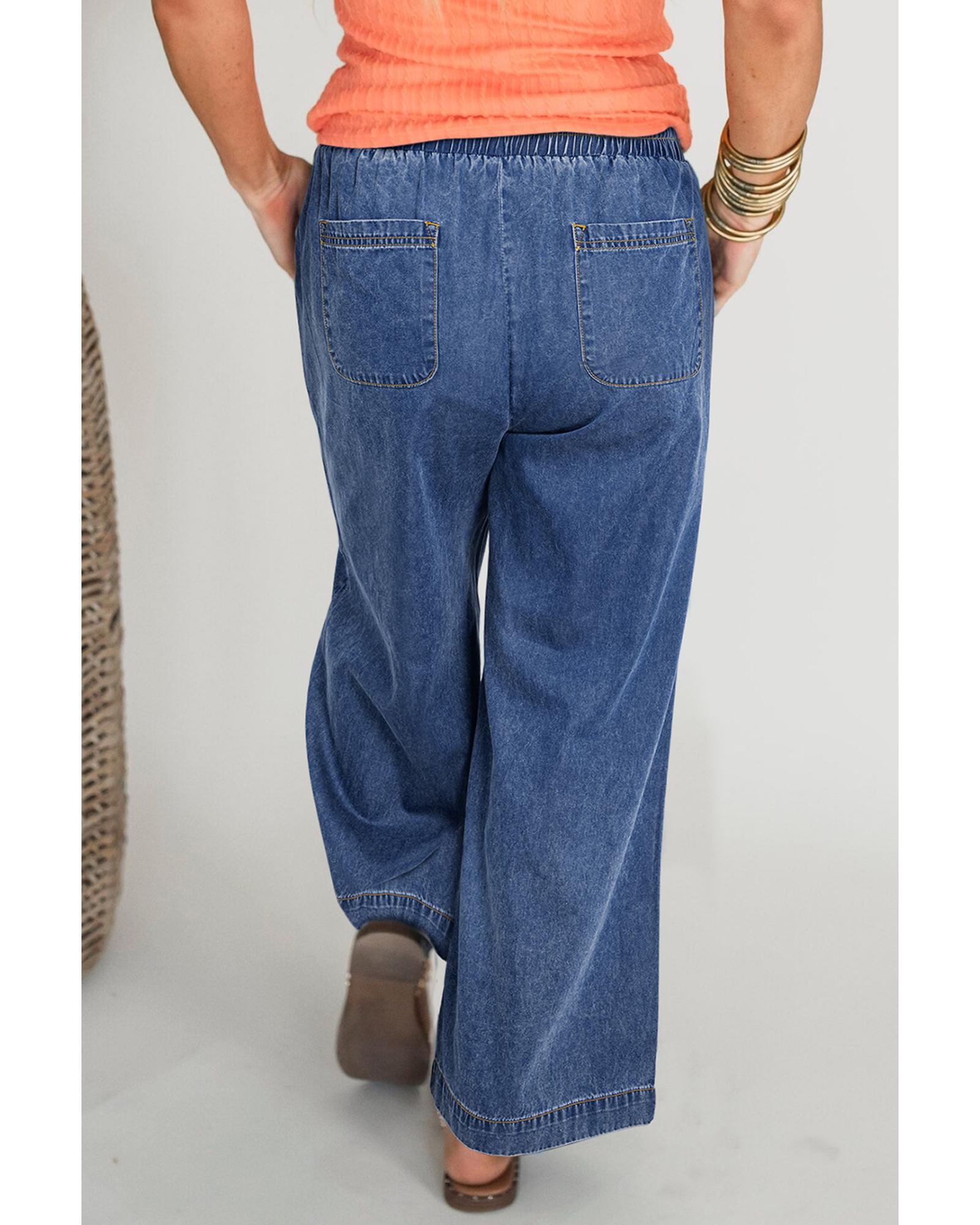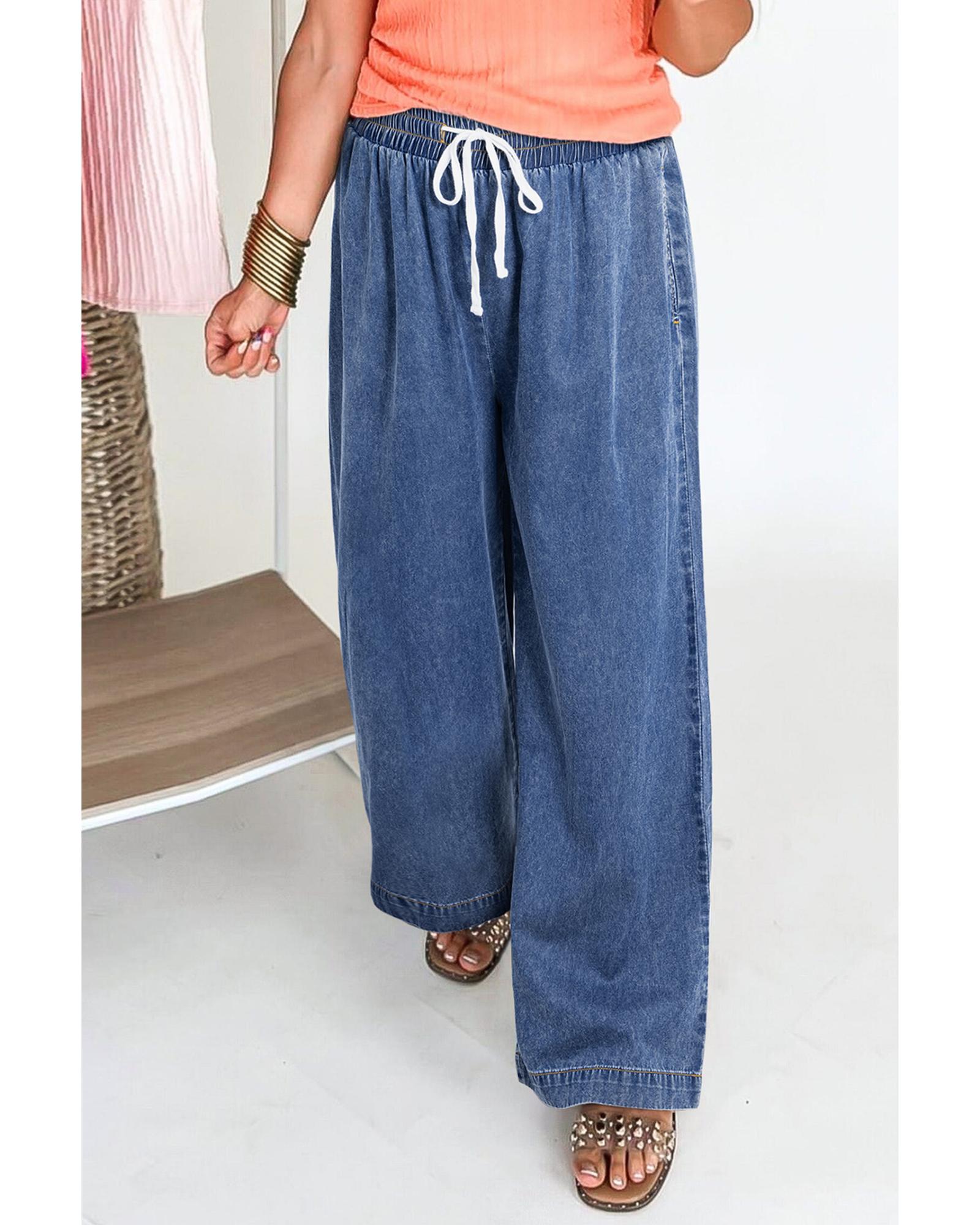 Azura Exchange Dusk Blue Plus Size Drawstring High Waist Straight Leg Jeans – 1X