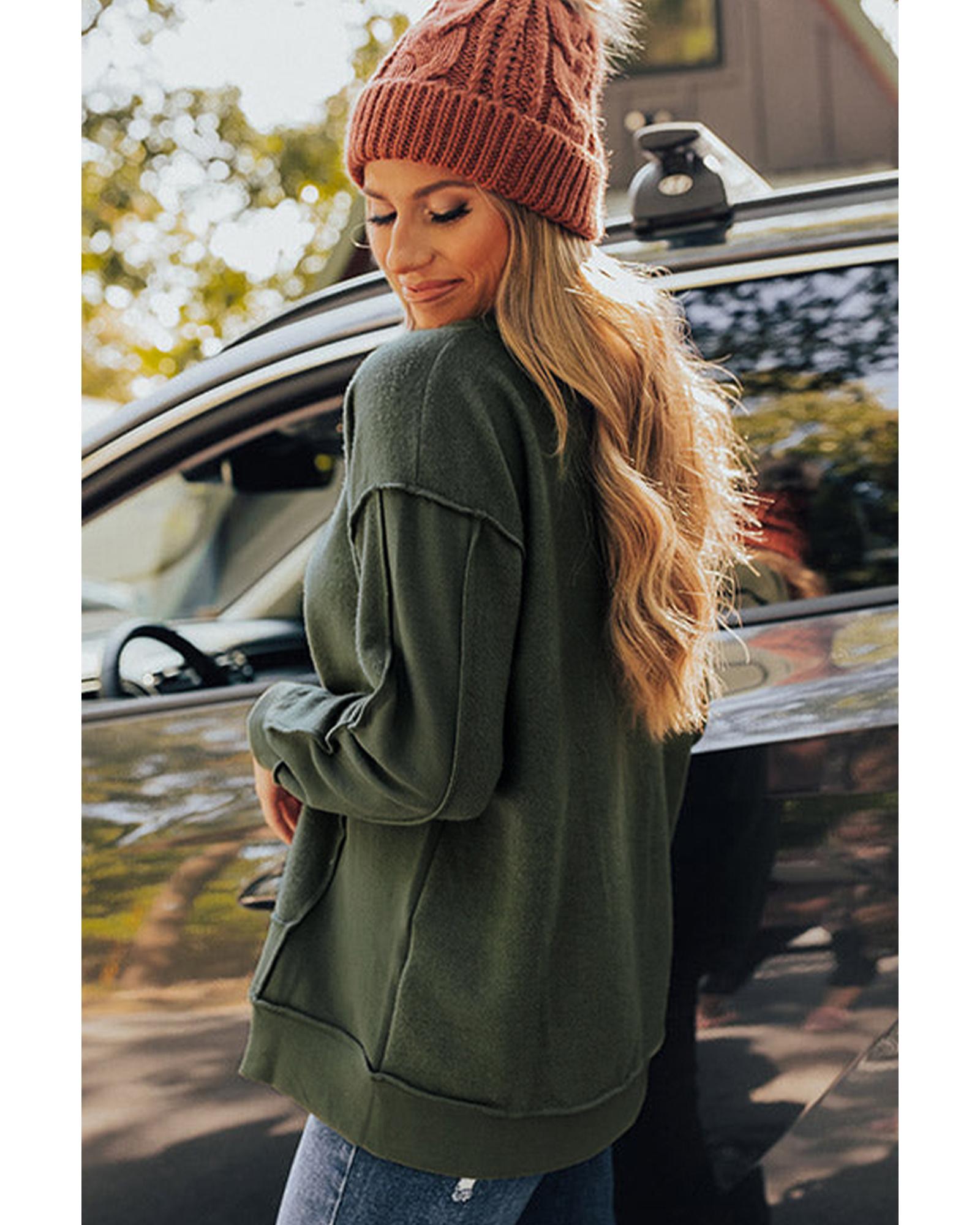 Azura Exchange Exquisite Green Long Sleeve Top with Split Neck and Exposed Seam Detail - M Original price was: $57.99.Current price is: $30.99.