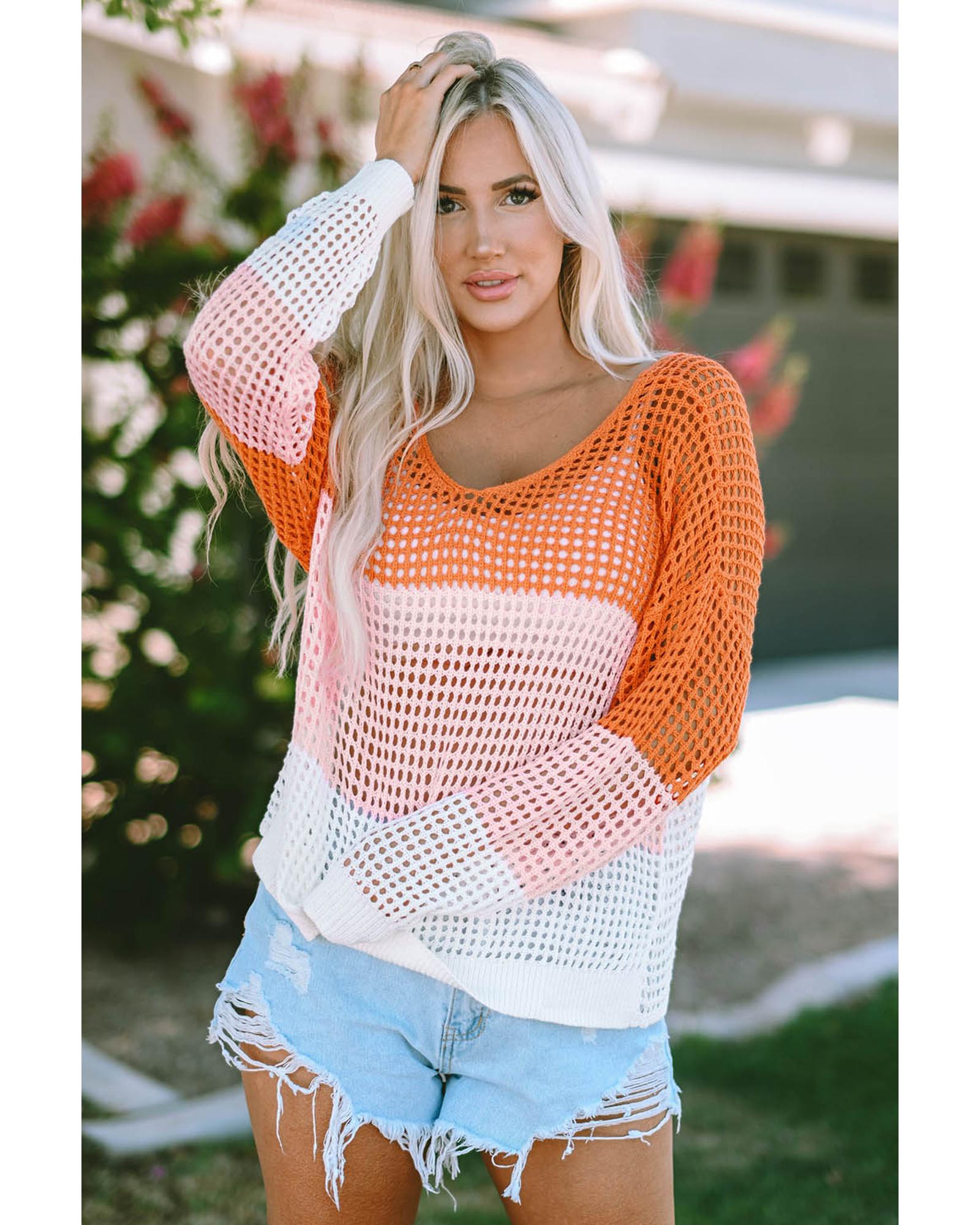 Azura Exchange Eyelet Knit Top with Twisted Back and Color Block Design – M