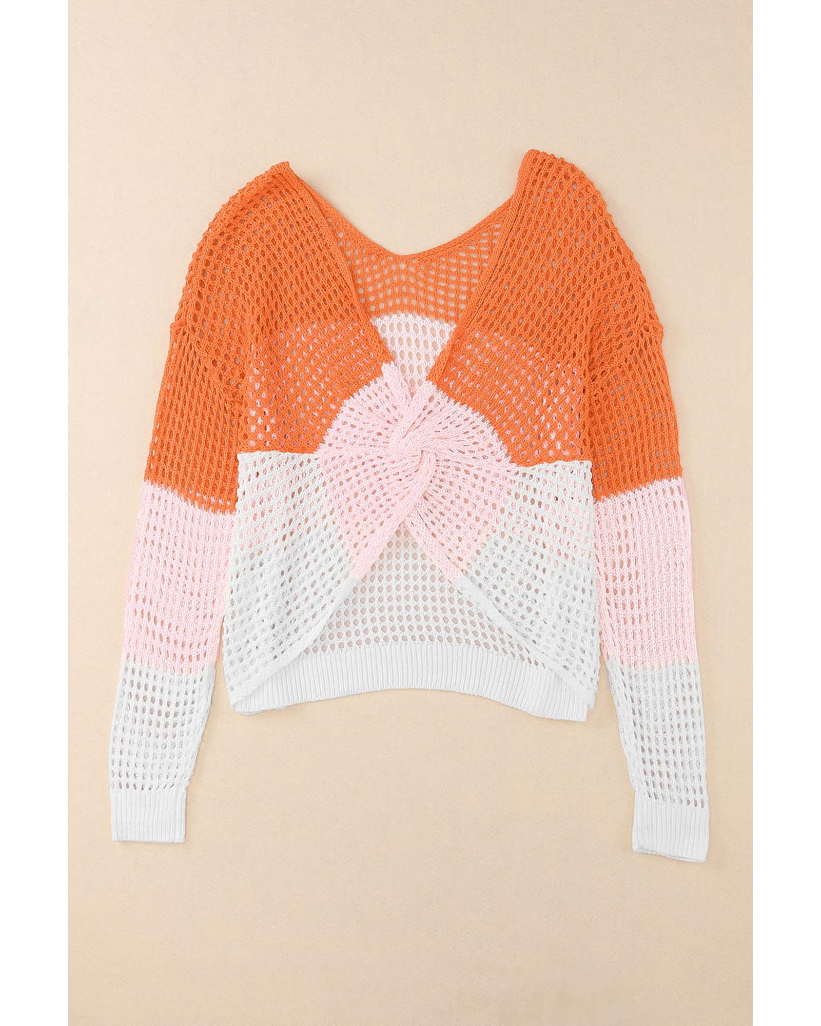 Azura Exchange Eyelet Knit Top with Twisted Back and Color Block Design - XL