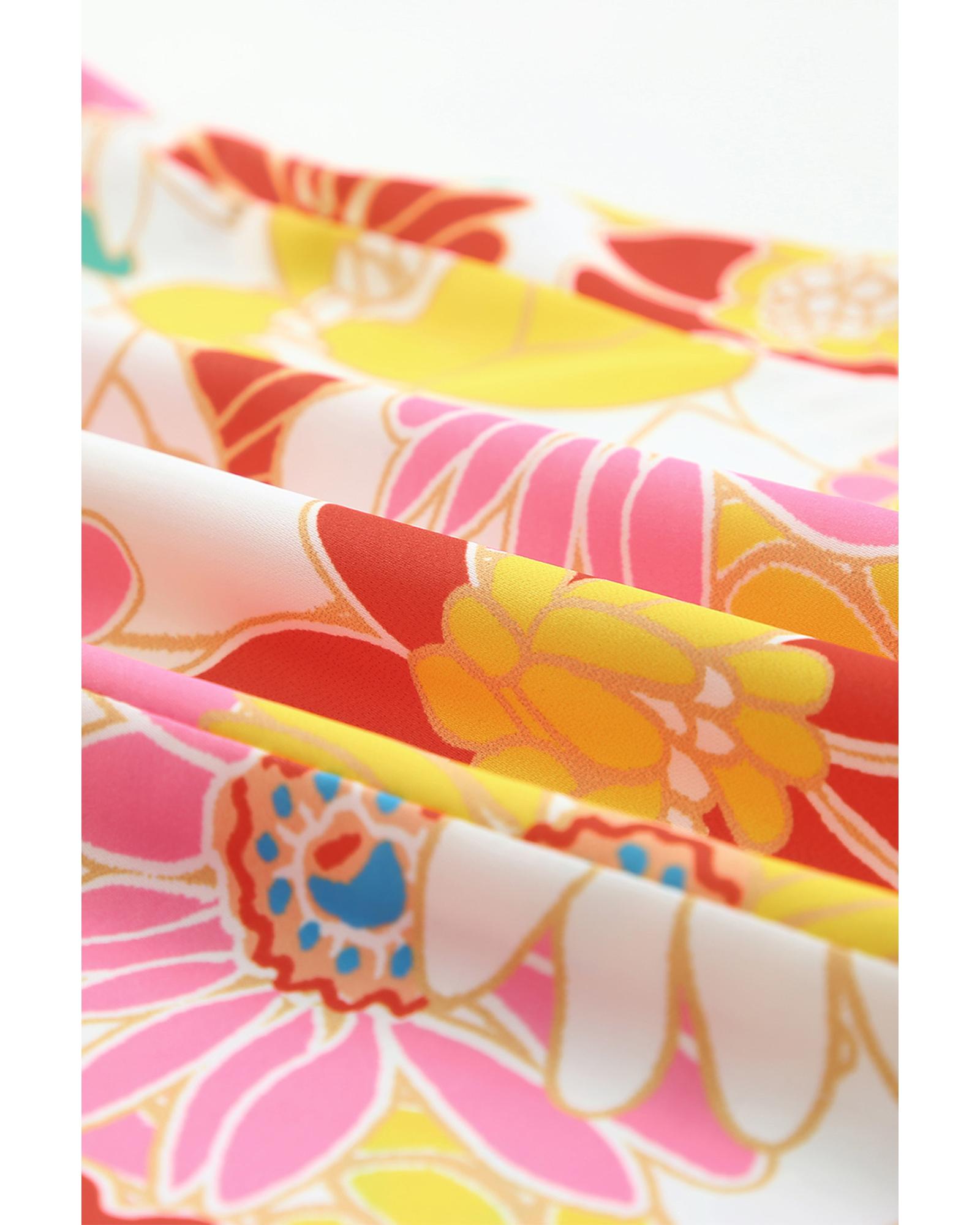 • Multicolor Stand Collar Flutter Sleeves Floral Top