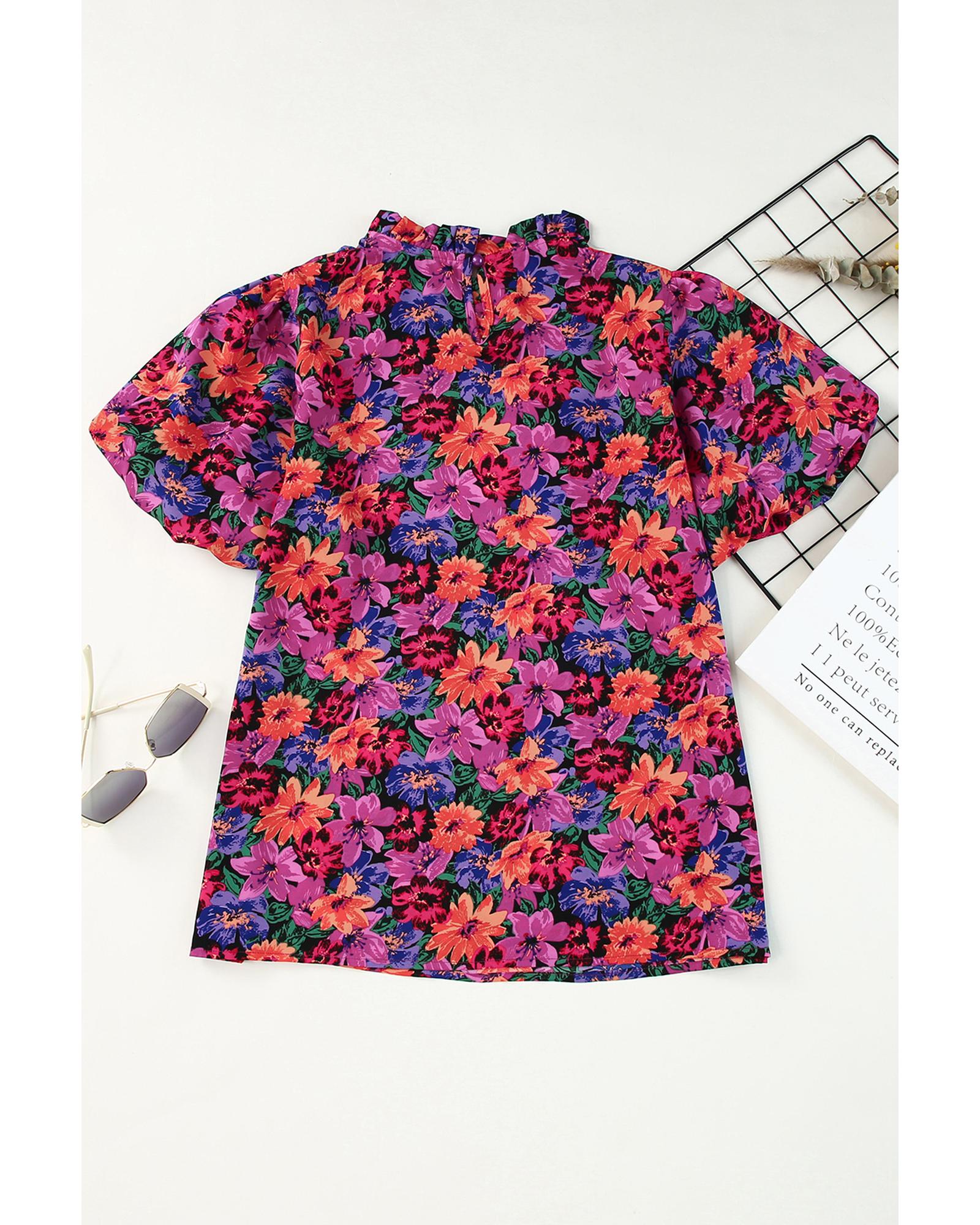 Azura Exchange Floral Print Puff Sleeve Blouse – L