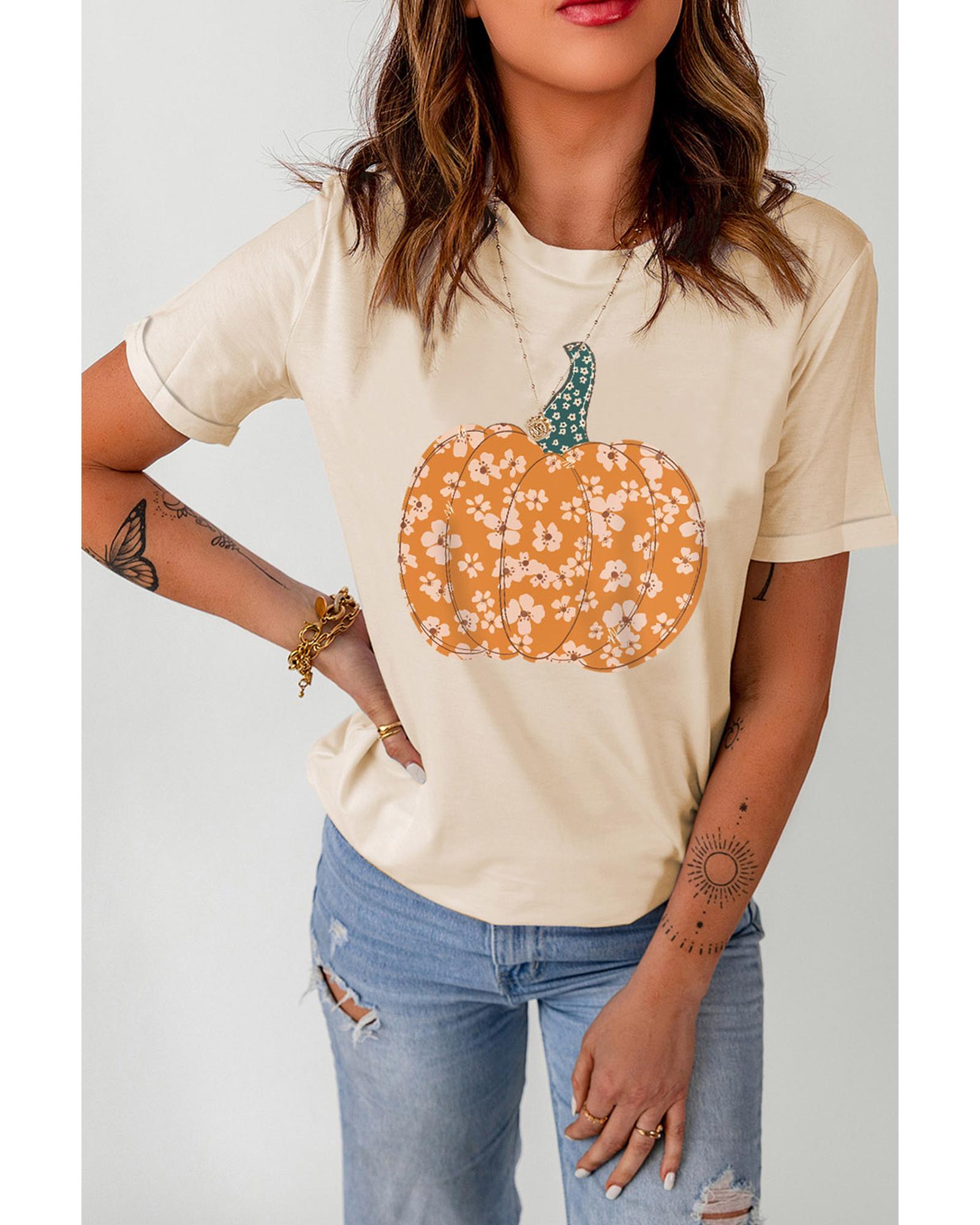 Azura Exchange Floral Pumpkin Graphic Tee – M
