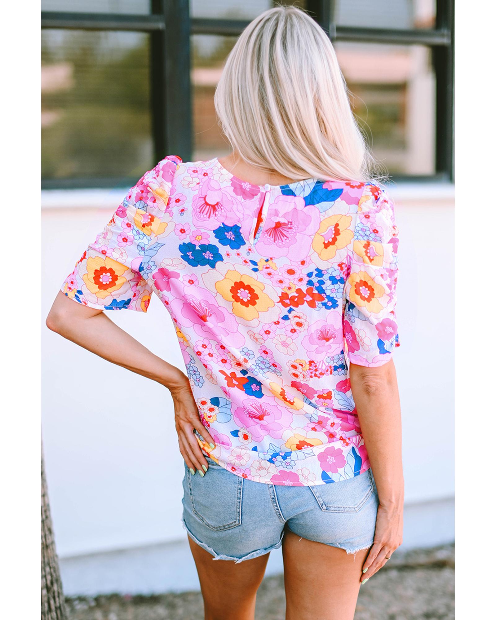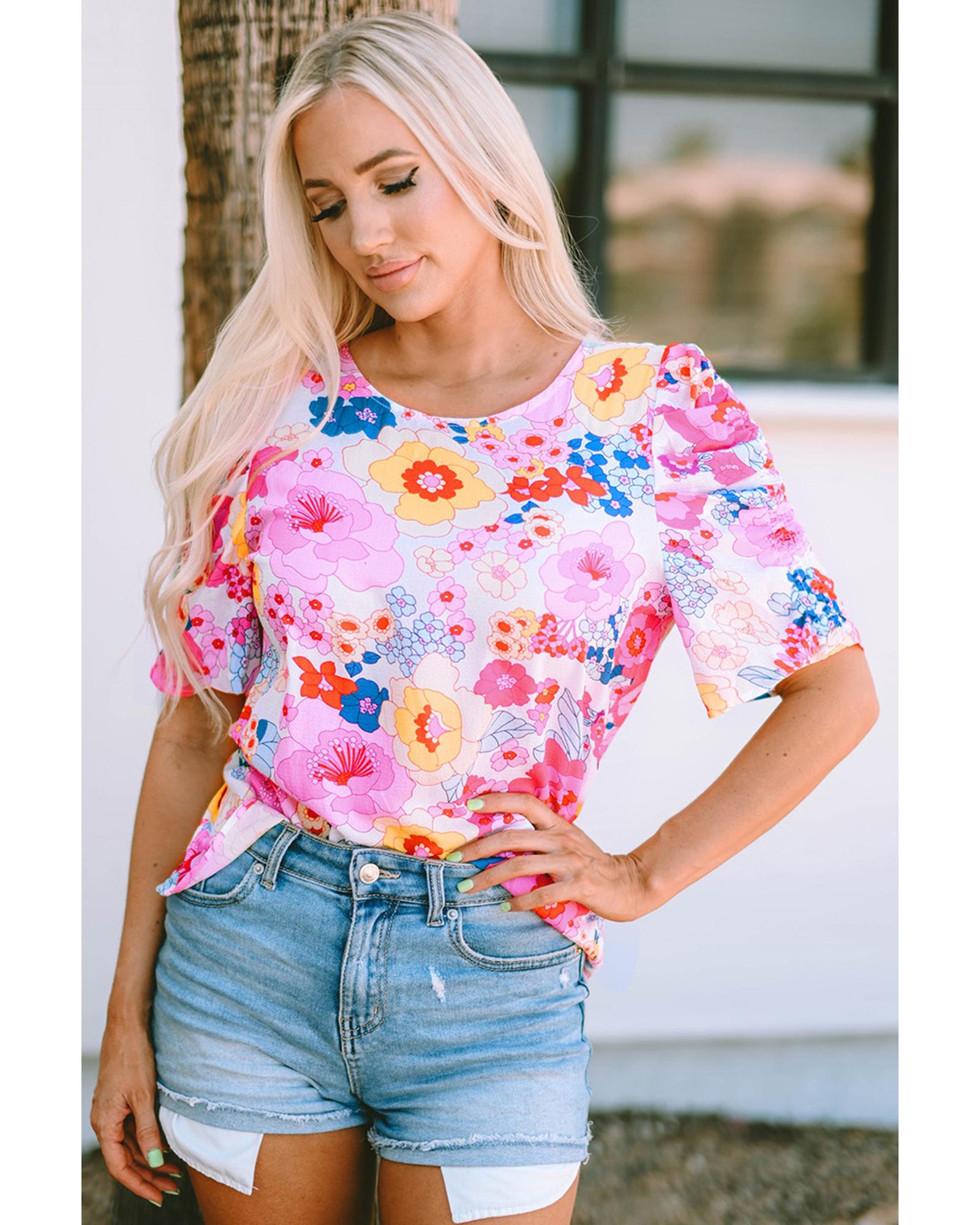 Azura Exchange Floral Print Bubble Sleeve Shirt - L