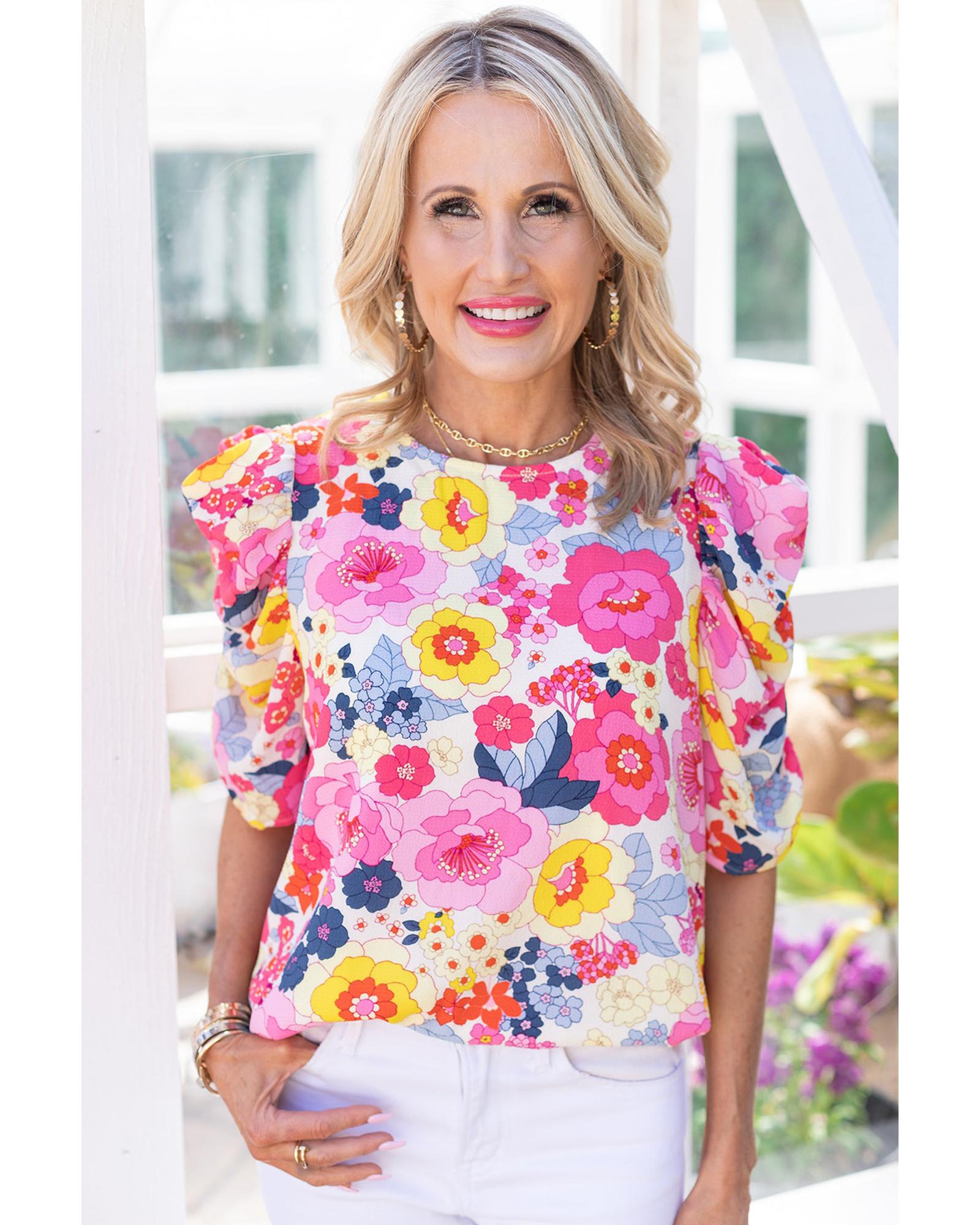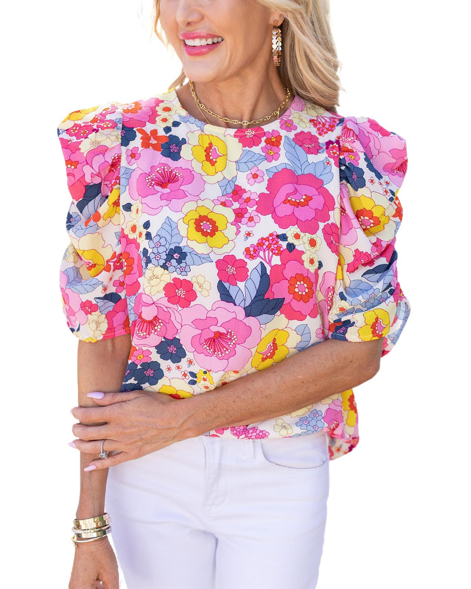 Azura Exchange Floral Print Bubble Sleeve Shirt - L Original price was: $64.99.Current price is: $34.99.