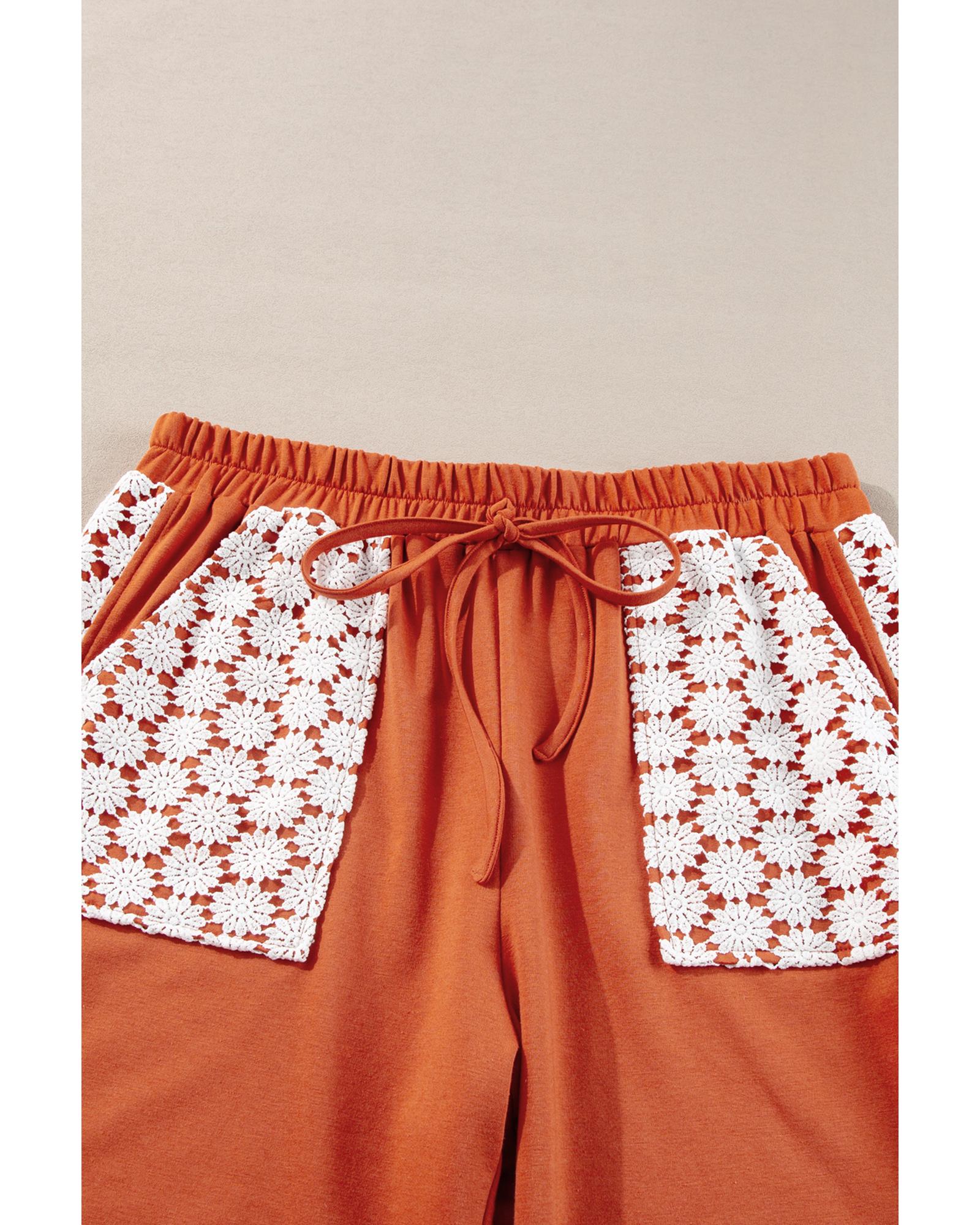 Azura Exchange Gold Flame Plus Size Floral Crochet Patch Drawstring Wide Leg Pants – 4X