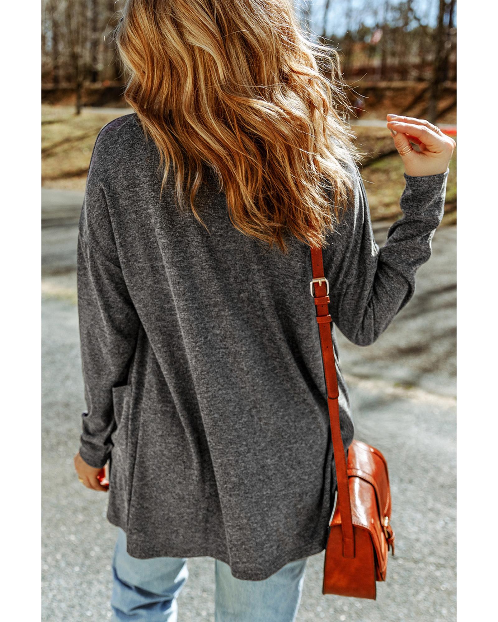 Azura Exchange Gray Heather Knit Pocketed Button Front Cardigan – L