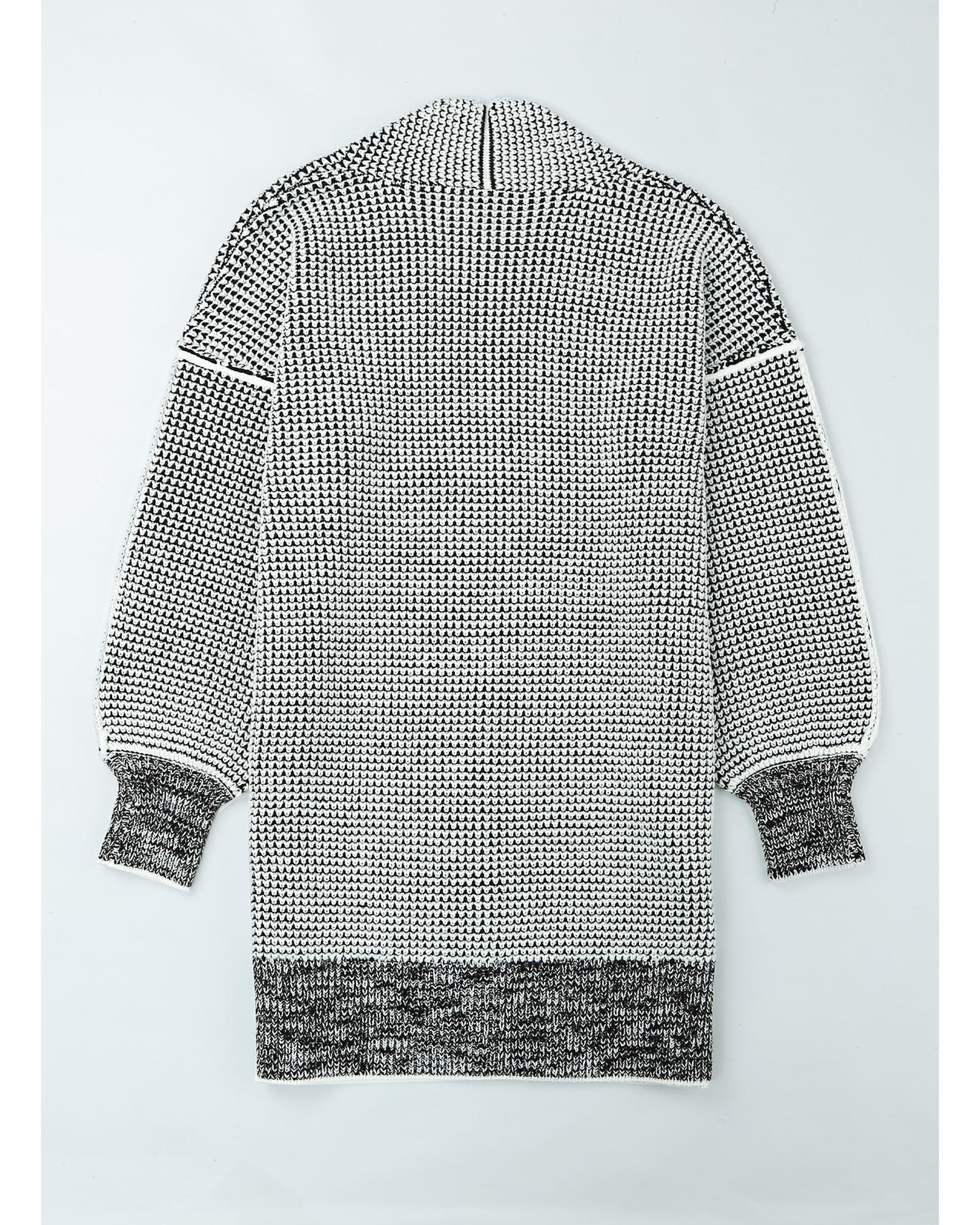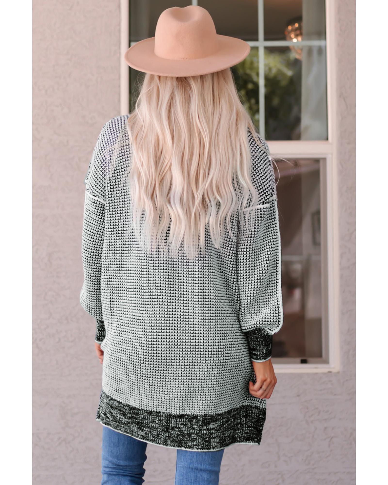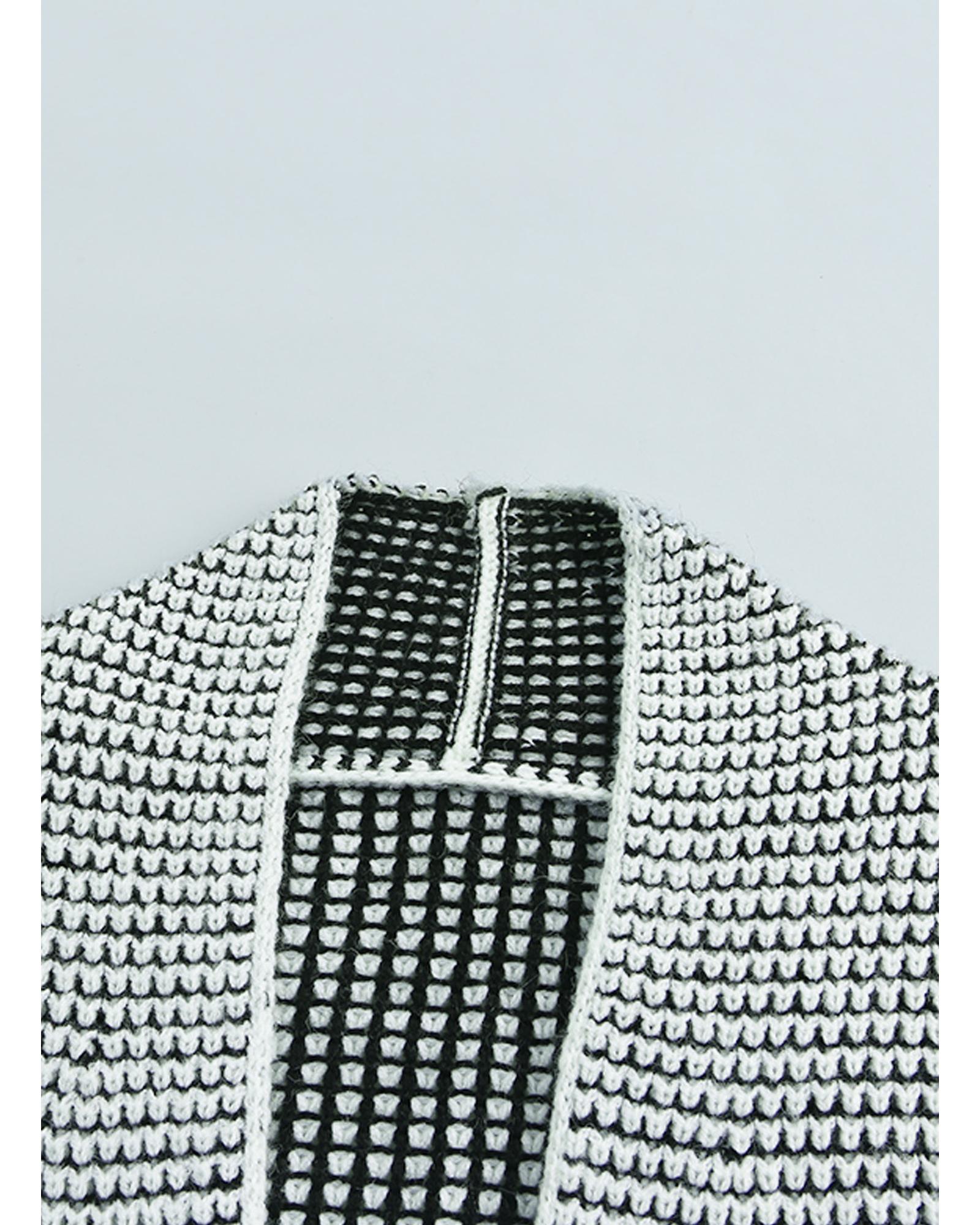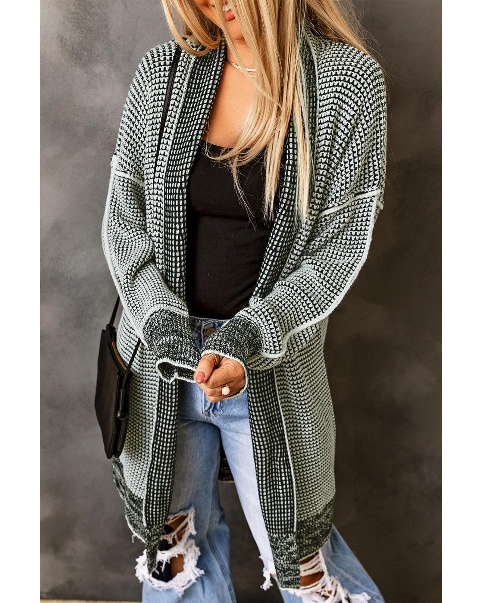 Azura Exchange Gray Plaid Knitted Long Open Front Cardigan – S
