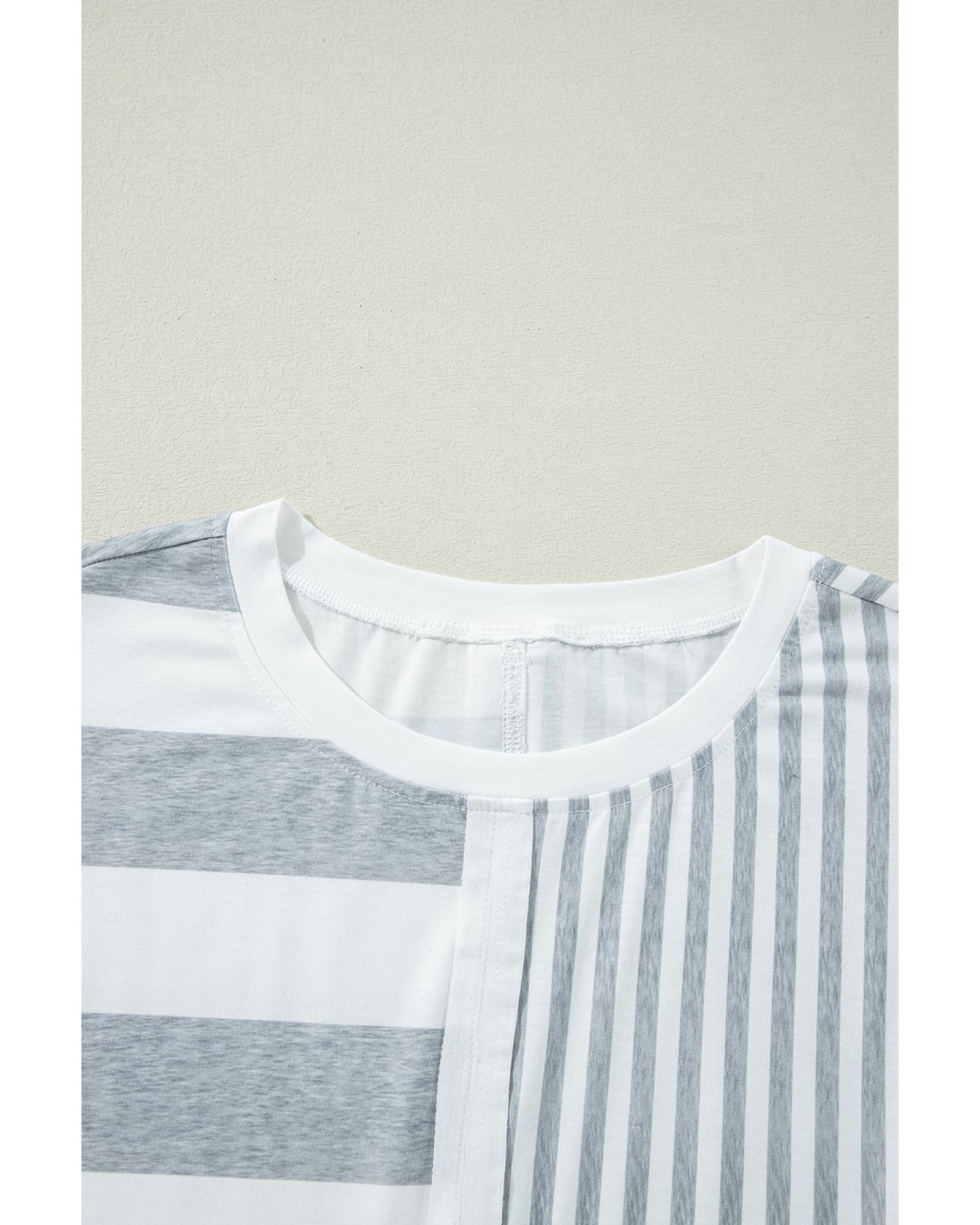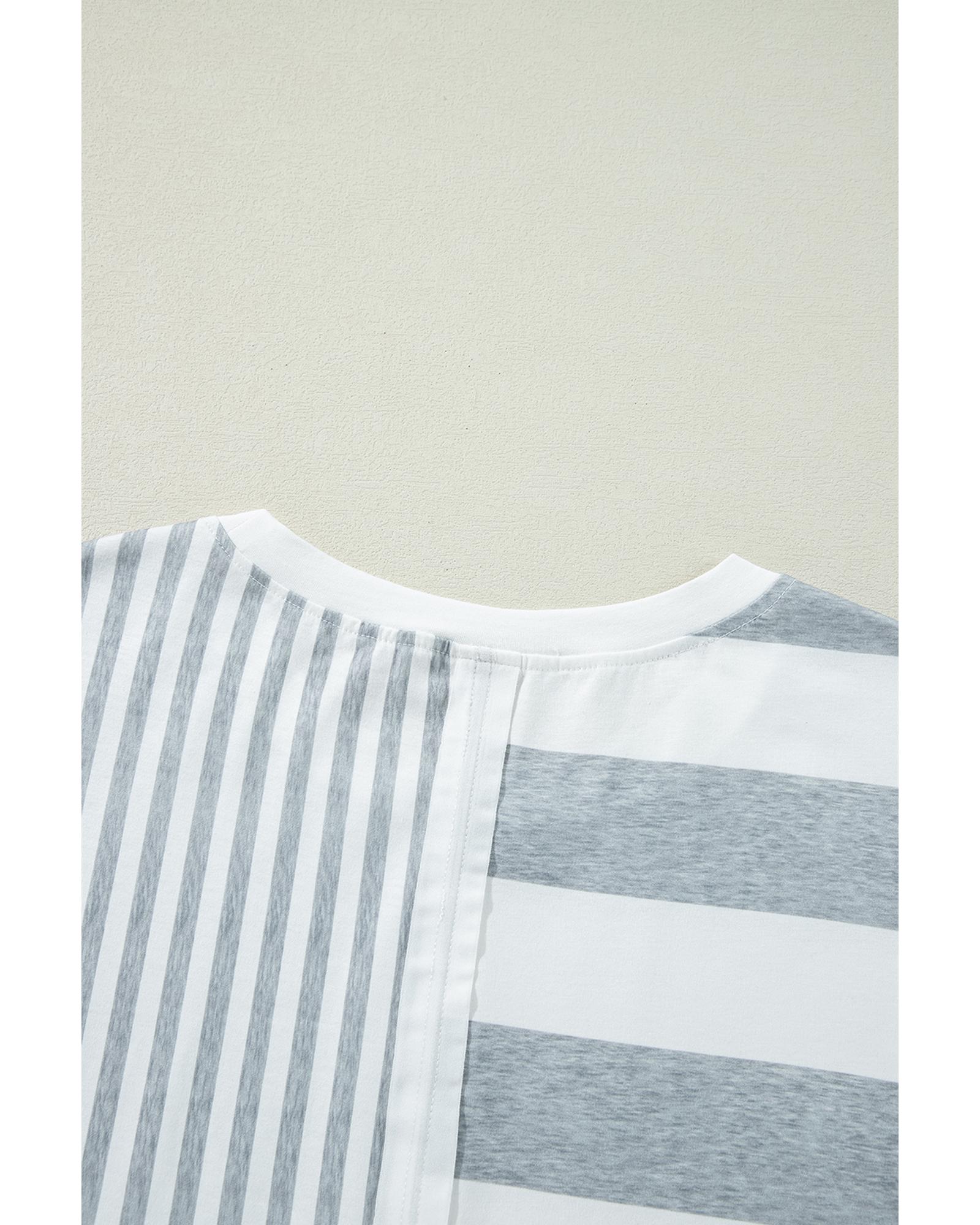 Azura Exchange Gray Stripe Mixed Printed Short Sleeve Shift Mini T Shirt Dress – XL