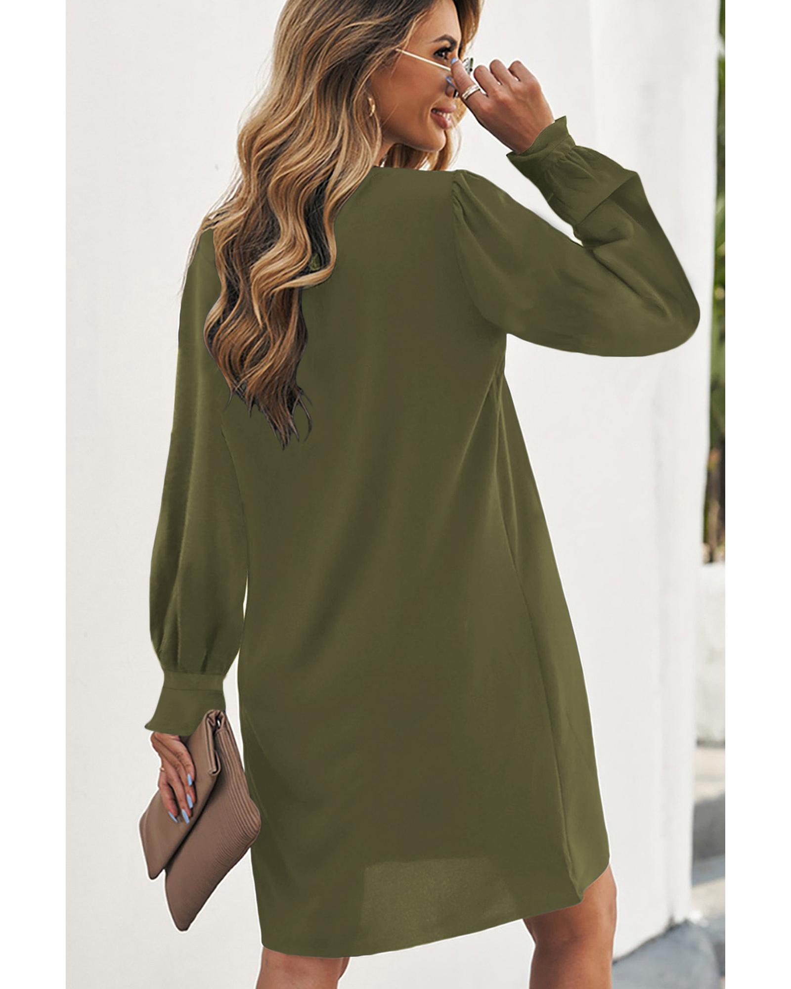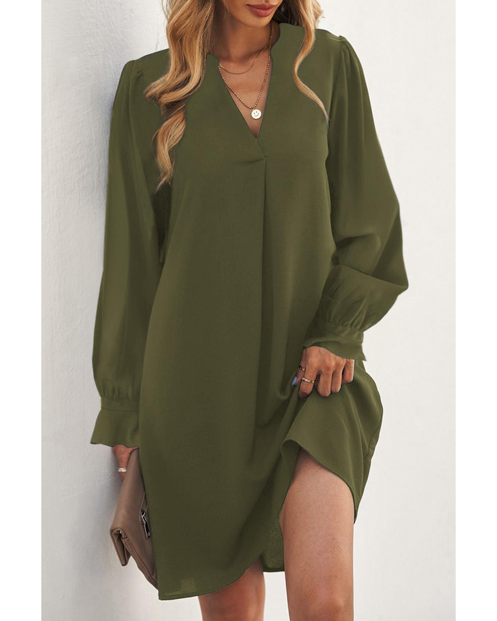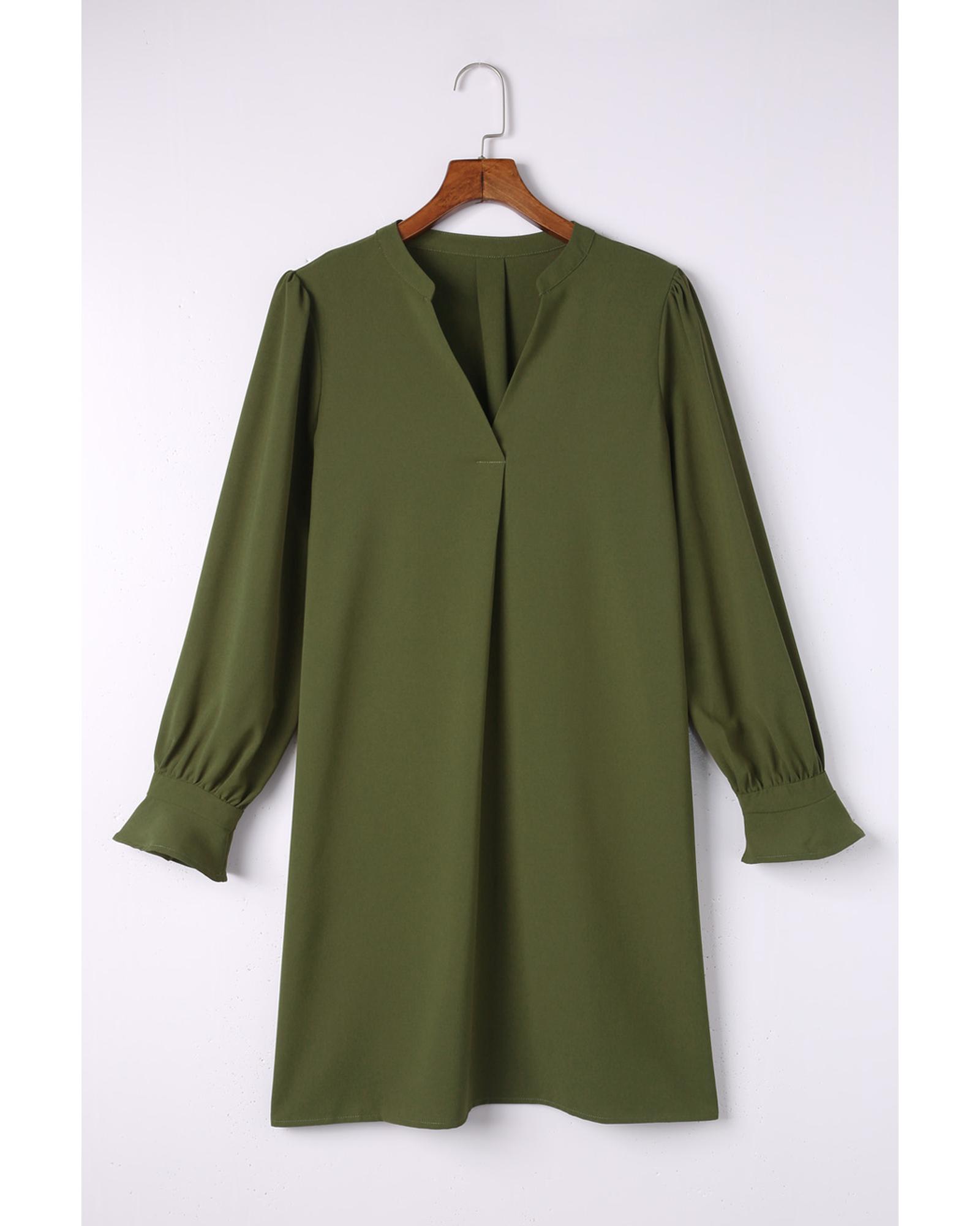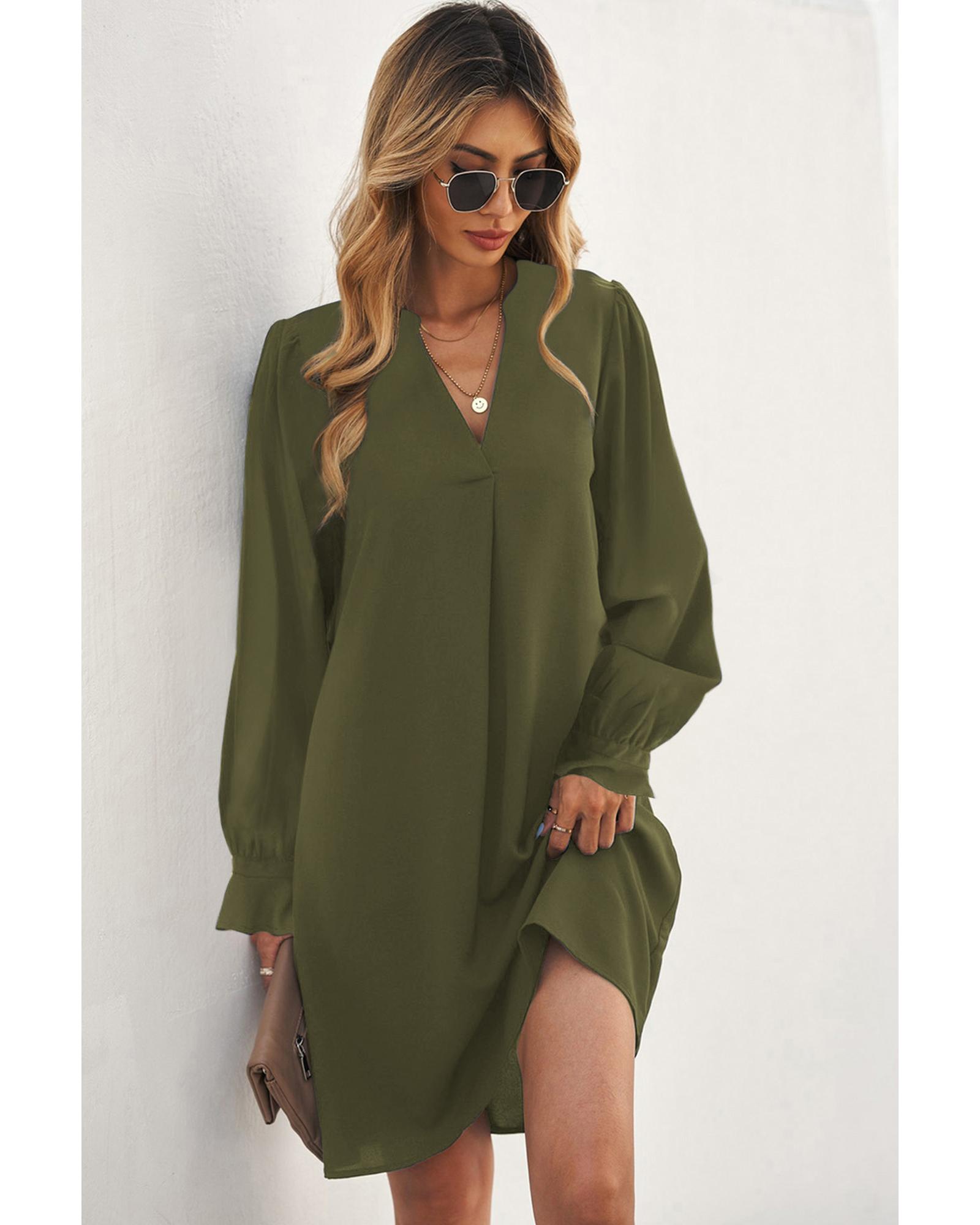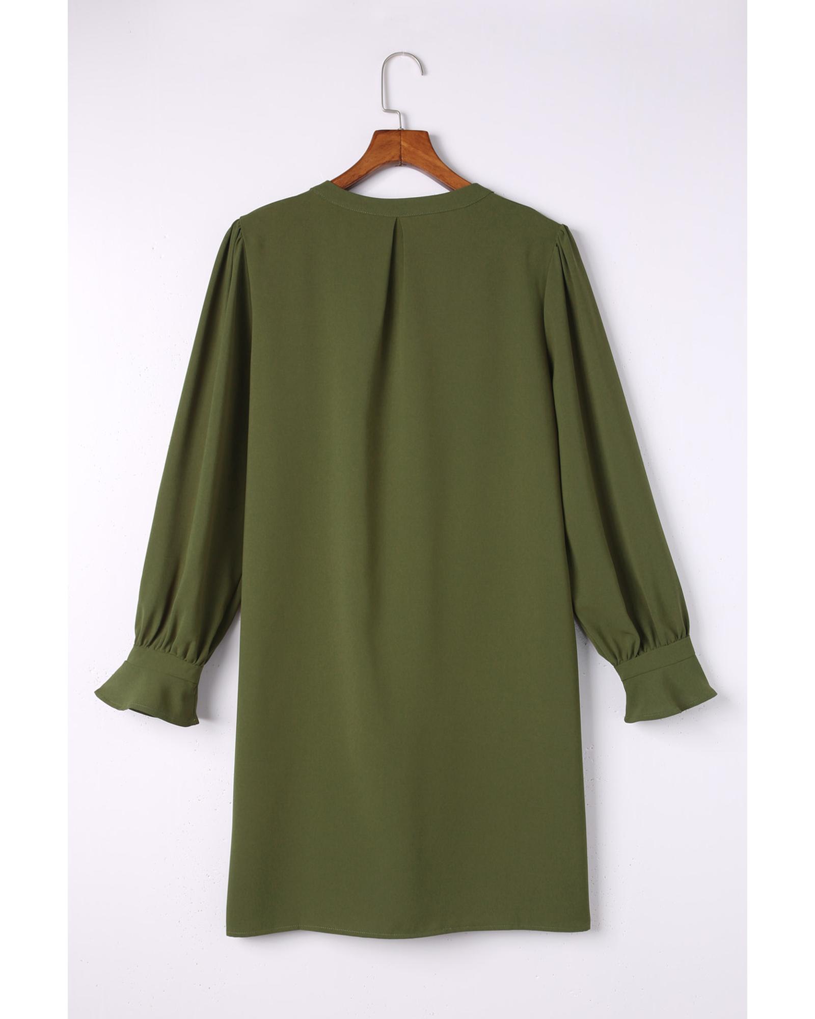 Azura Exchange Green Split V Neck Ruffled Sleeves Shirt Dress - S