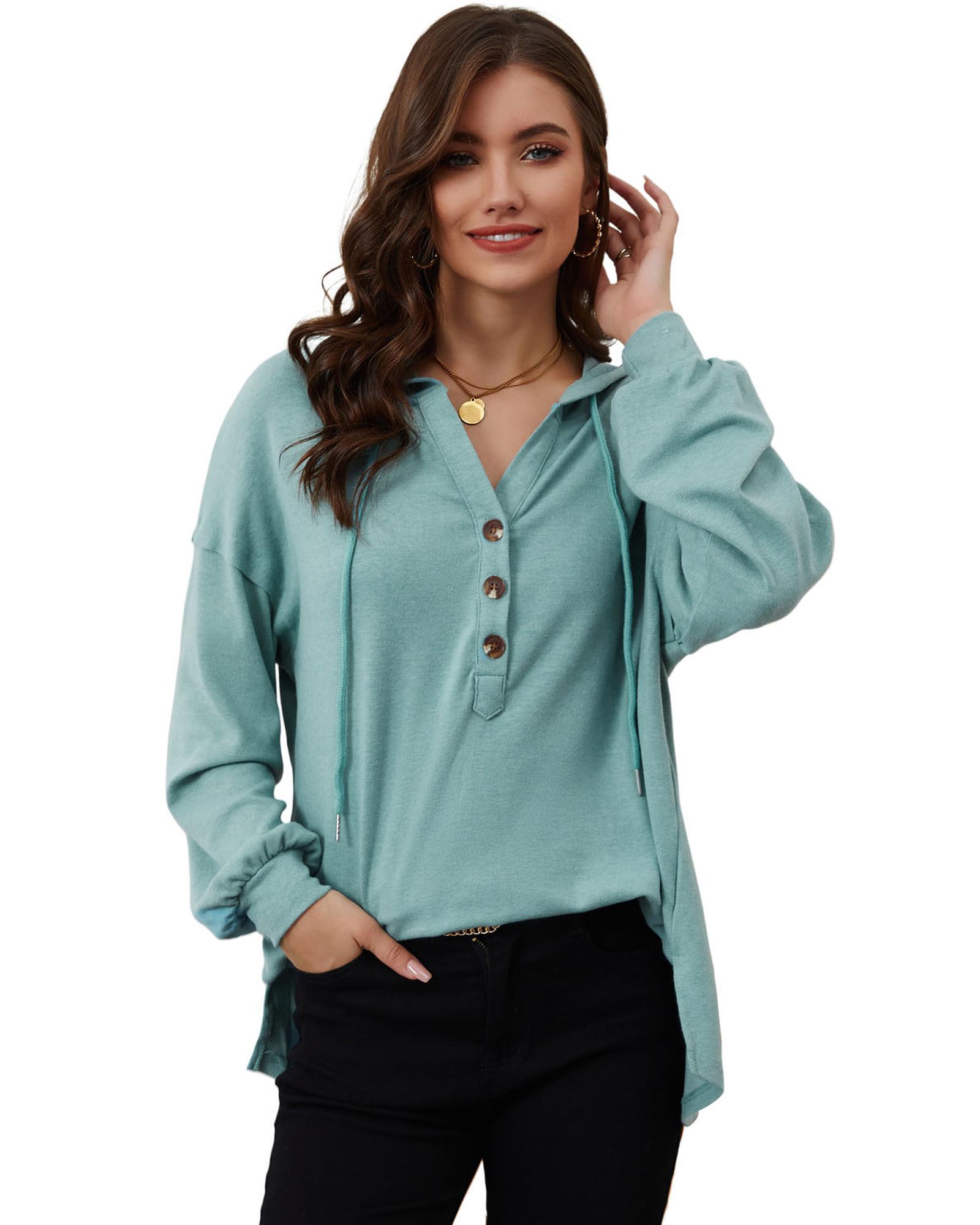 - Stylish and versatile Buttoned High and Low Hem Hoodie