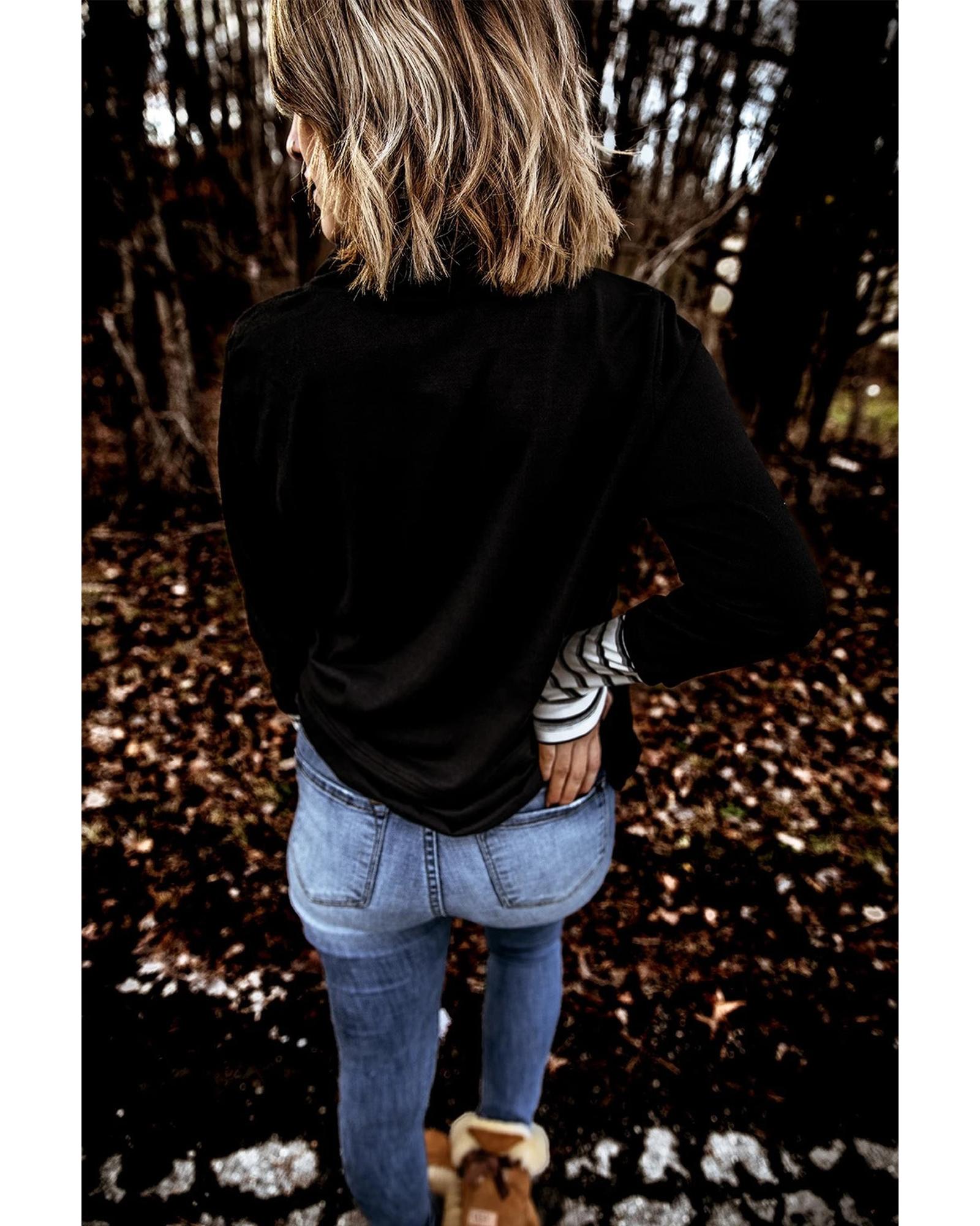 - Stylish and comfortable Striped Splicing High Neck Sweatshirt