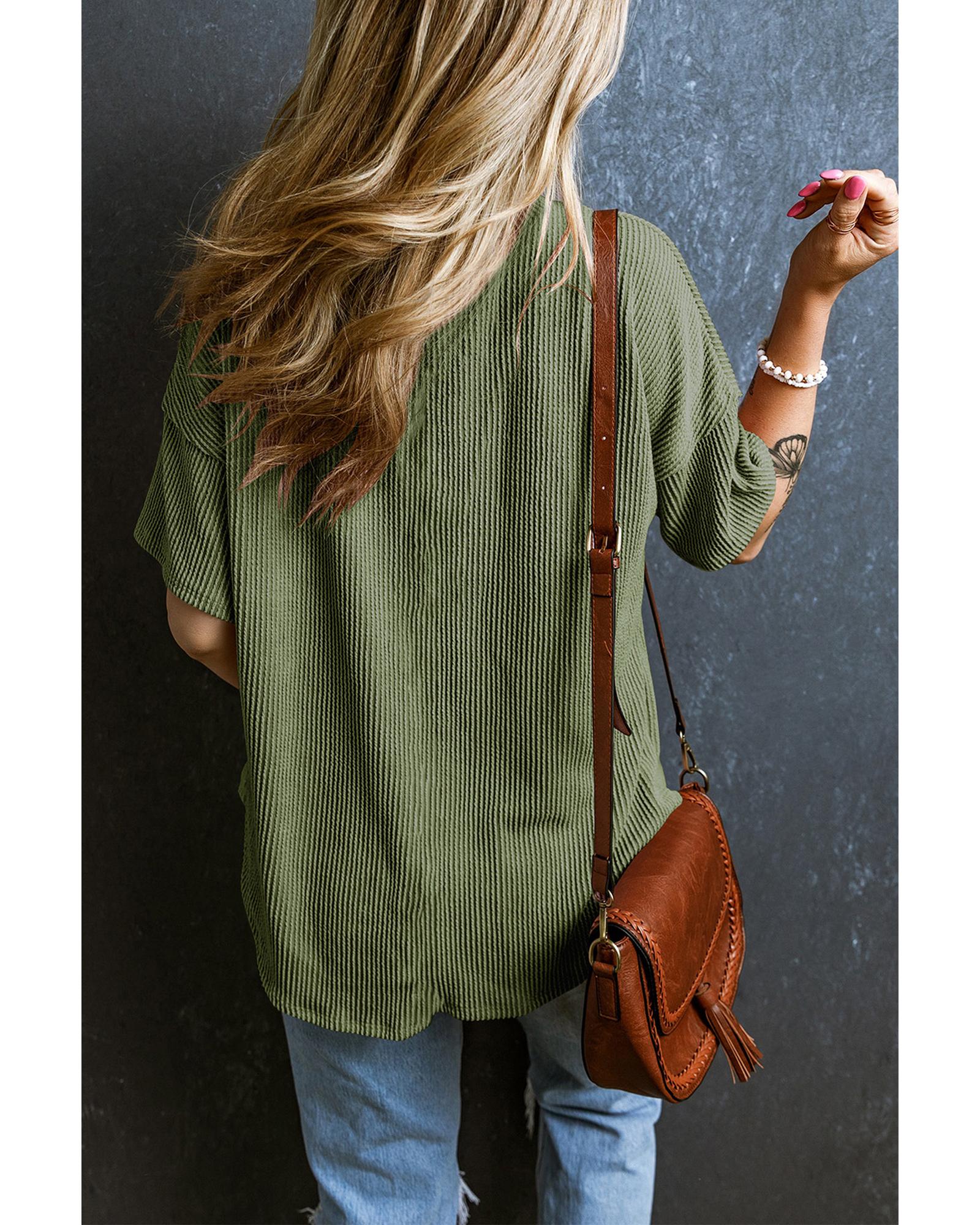 Azura Exchange Jungle Green Corded V Neck Chest Pocket Loose T-shirt – XL