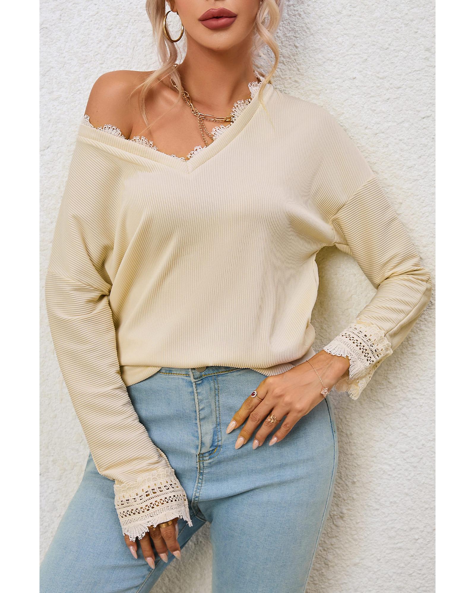 Azura Exchange Lace Trim V Neck Long Sleeve Top – 2XL
