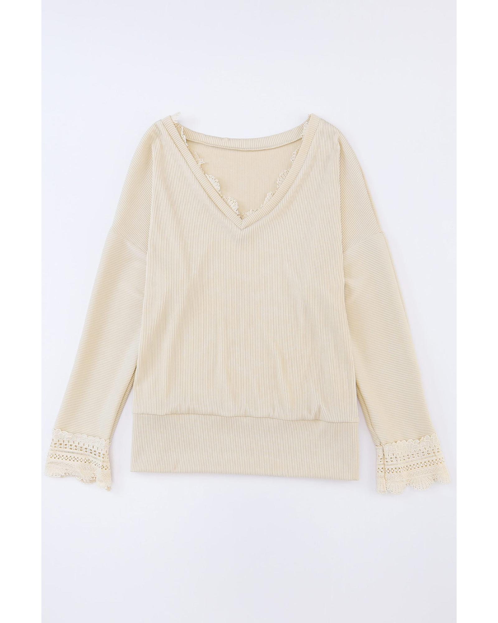 Azura Exchange Lace Trim V Neck Long Sleeve Top – L