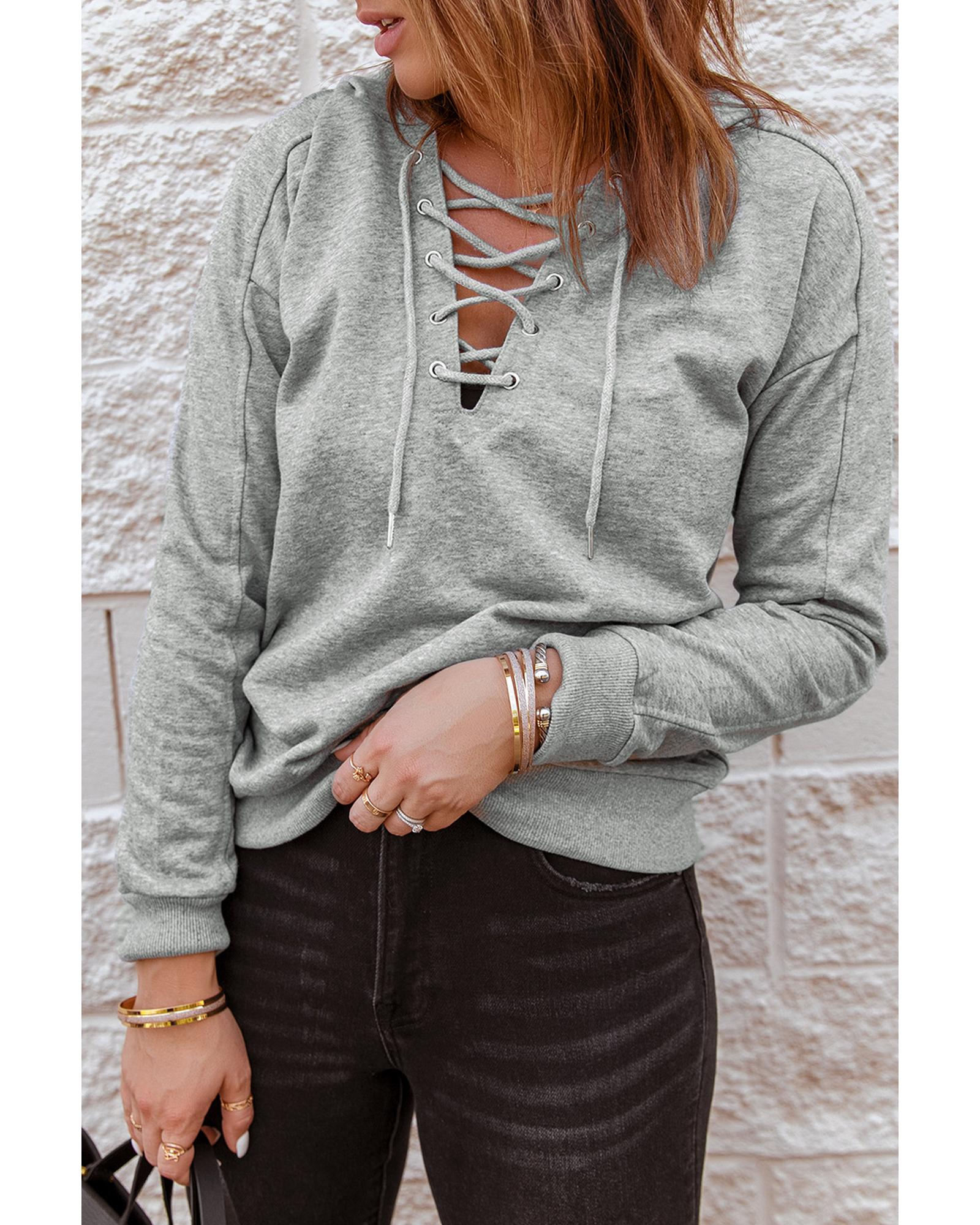 • Grey Casual Solid Color Lace-up Hoodie