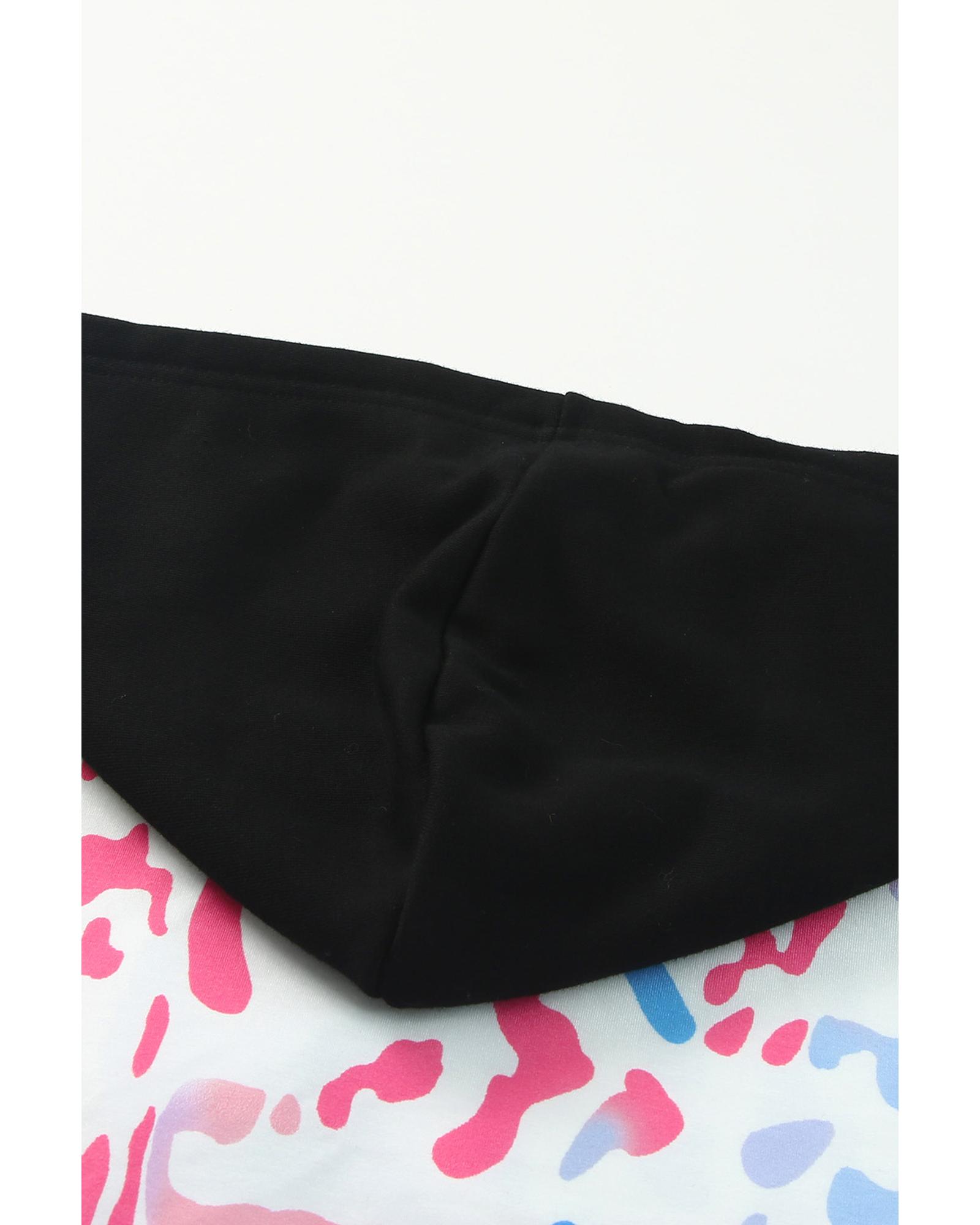 - Multicolor Colorful Leopard Drawstring Splicing Hoodie