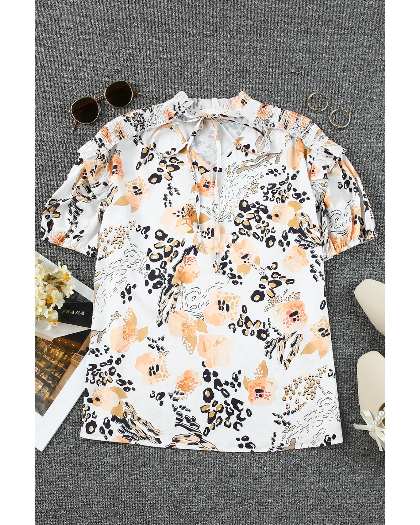 Azura Exchange Leopard Floral Print Puff Sleeve Blouse – XL