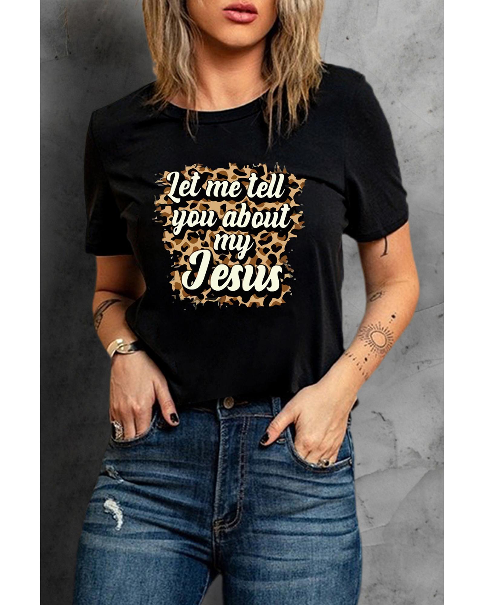 Azura Exchange Leopard Letter Print Crewneck Graphic Tee – L