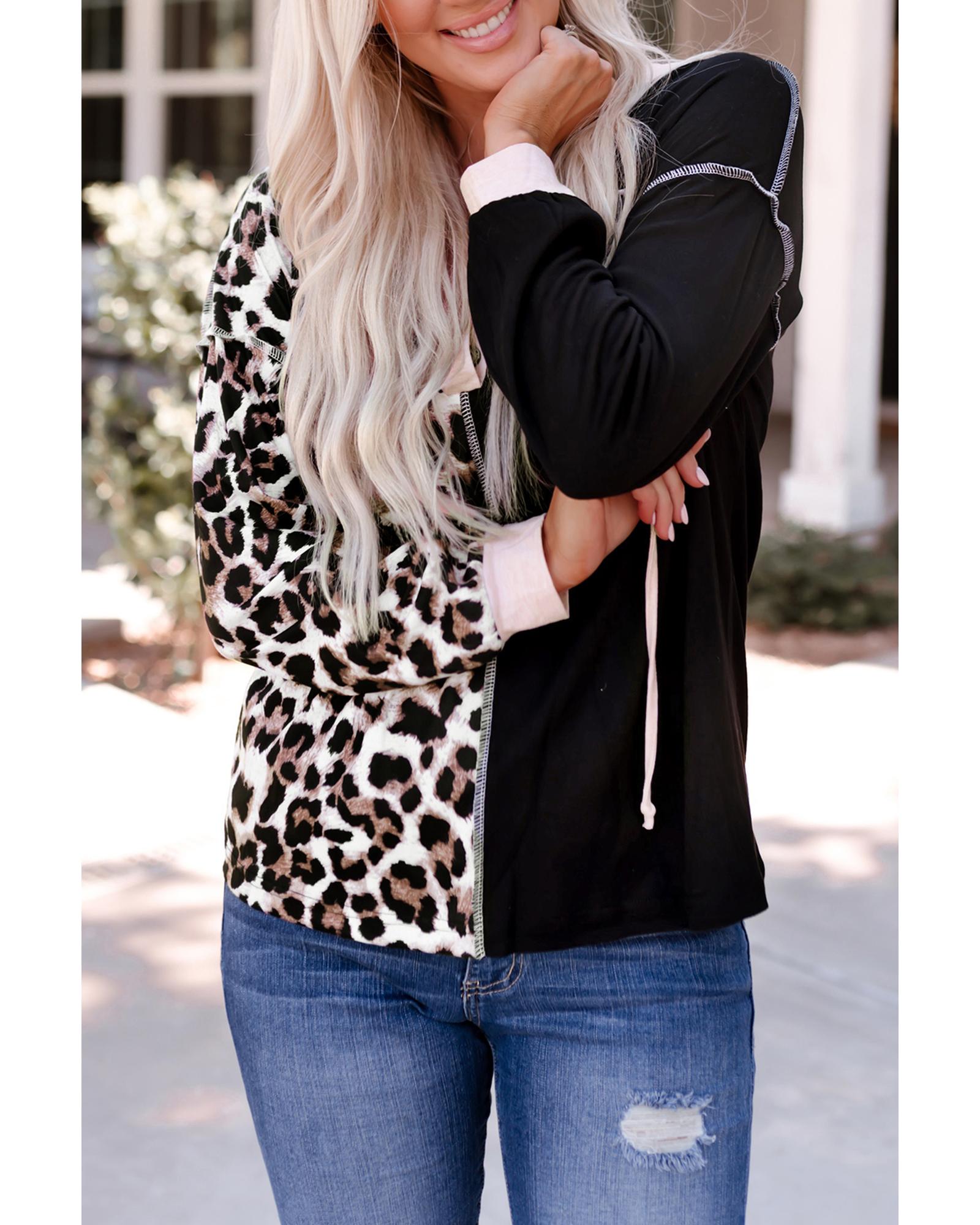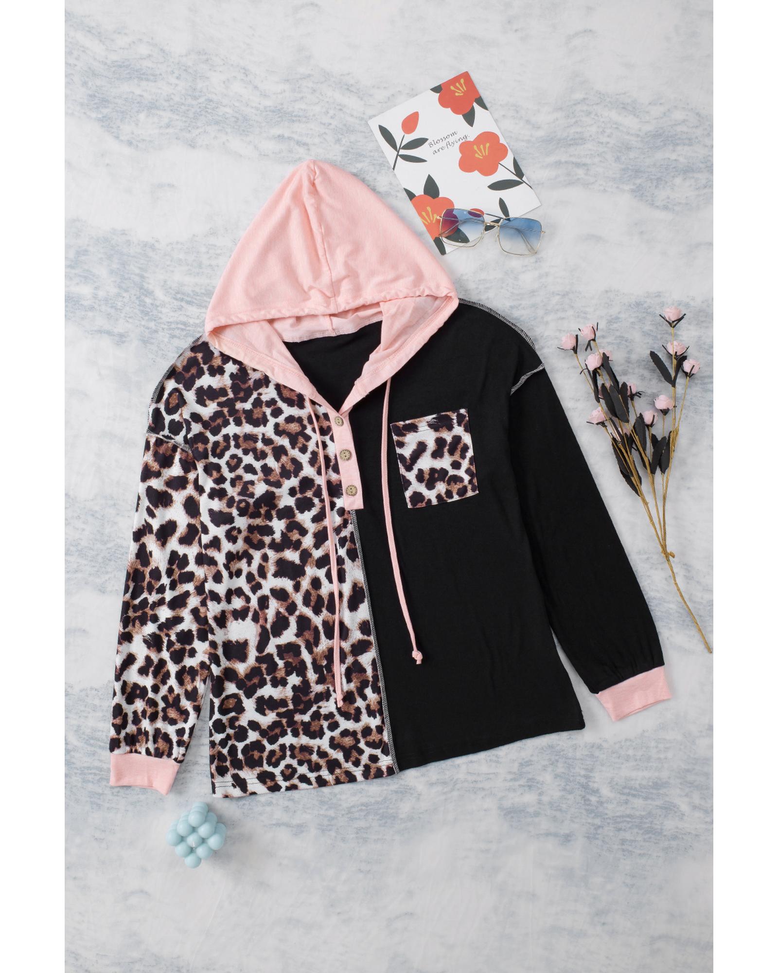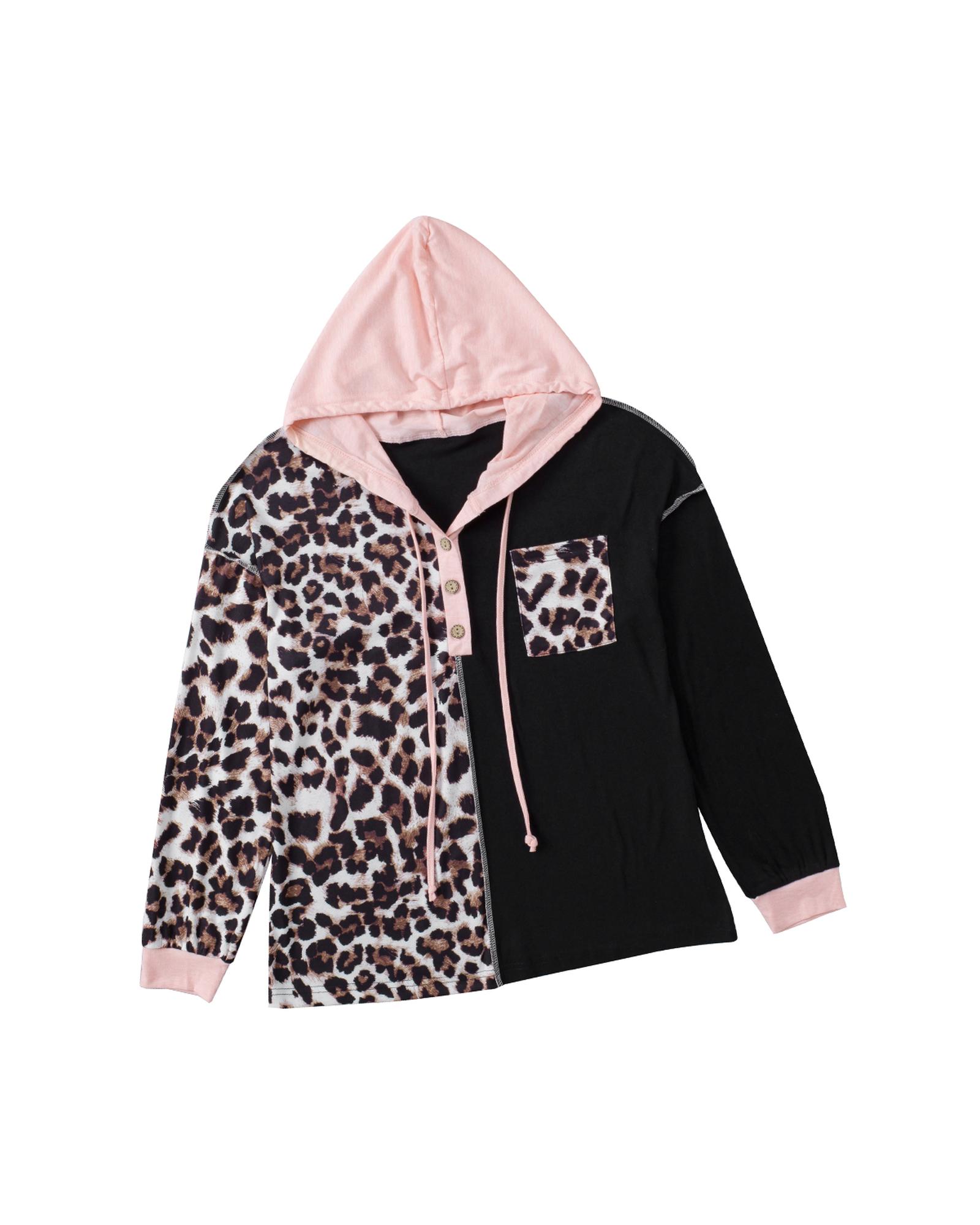 - Stylish and trendy Leopard Patchwork Buttoned Hooded Sweatshirt for women