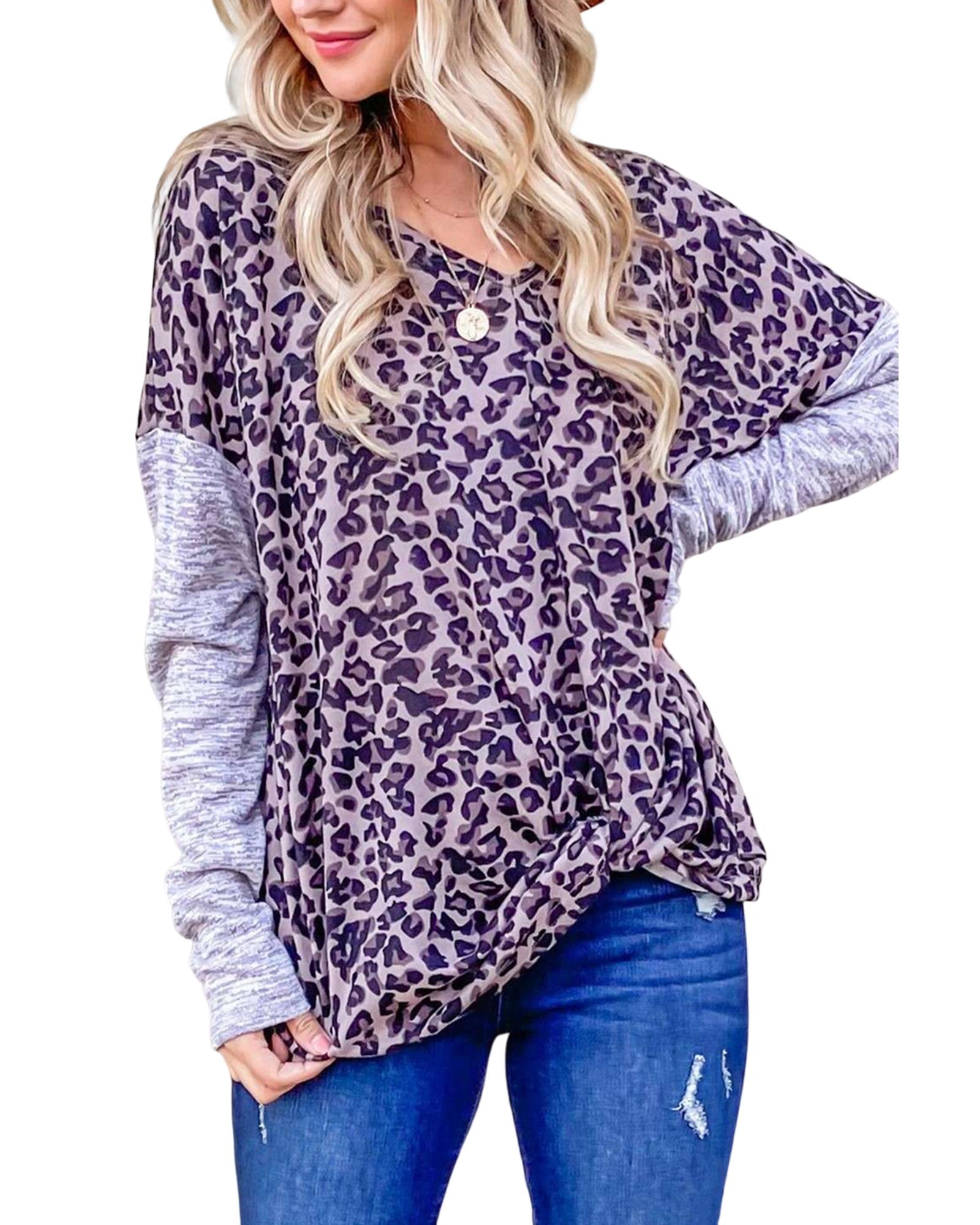 • Stylish and trendy Leopard Print Drop Shoulder Patchwork Sleeve Top