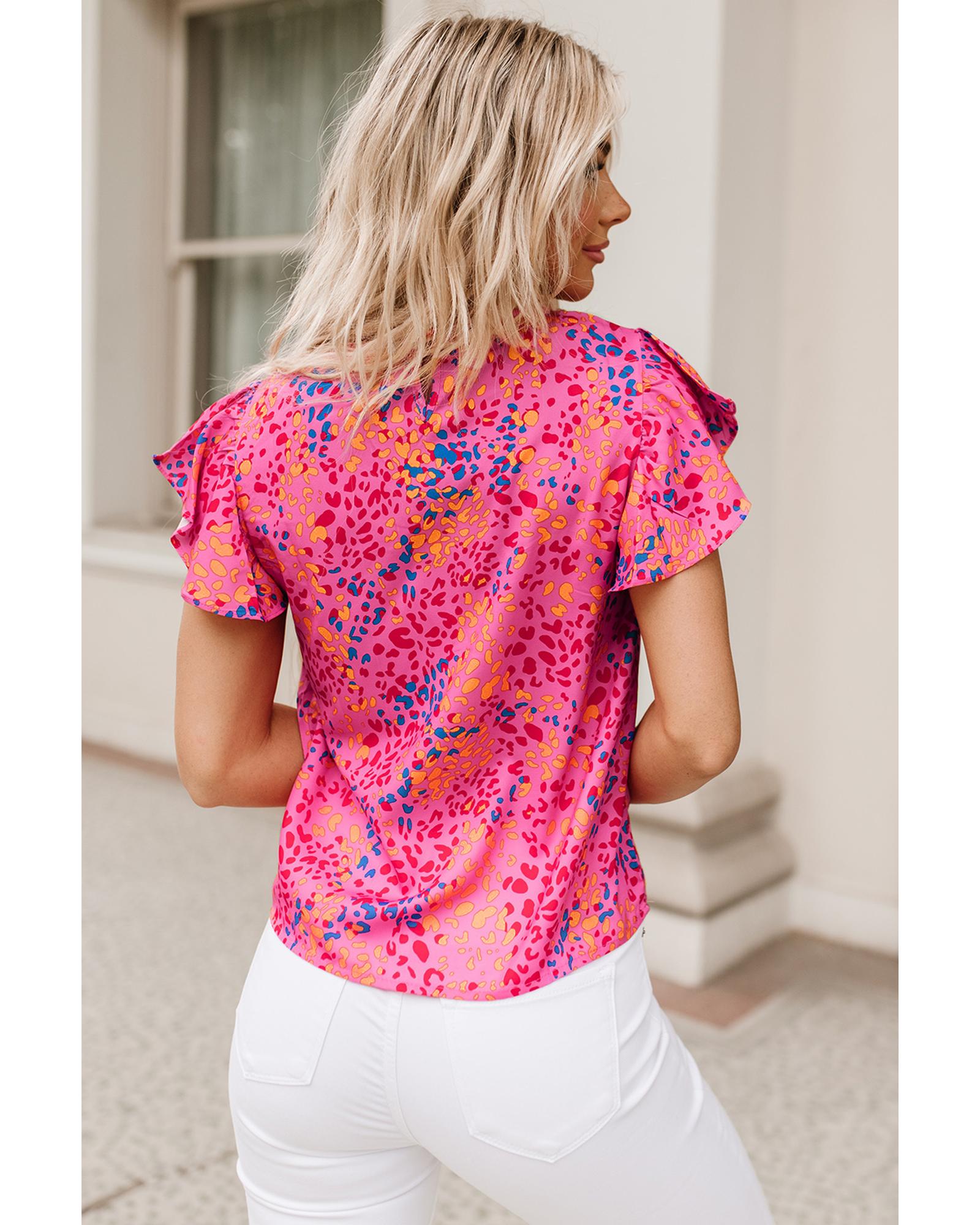 Azura Exchange Leopard Print Flutter Sleeve Blouse – S
