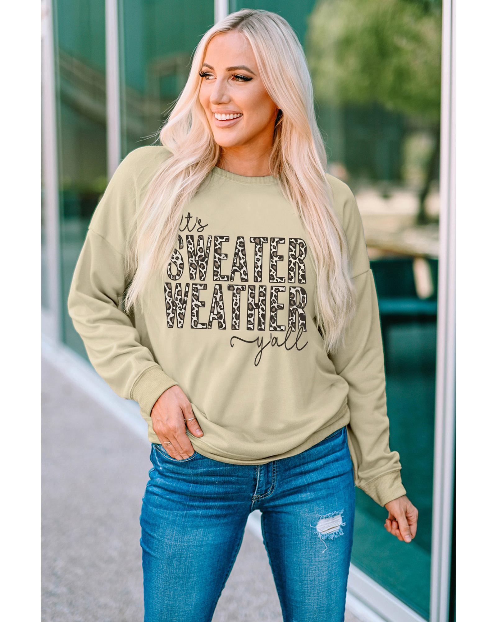 • Khaki Sweater Weather Leopard Print Pullover Sweatshirt
