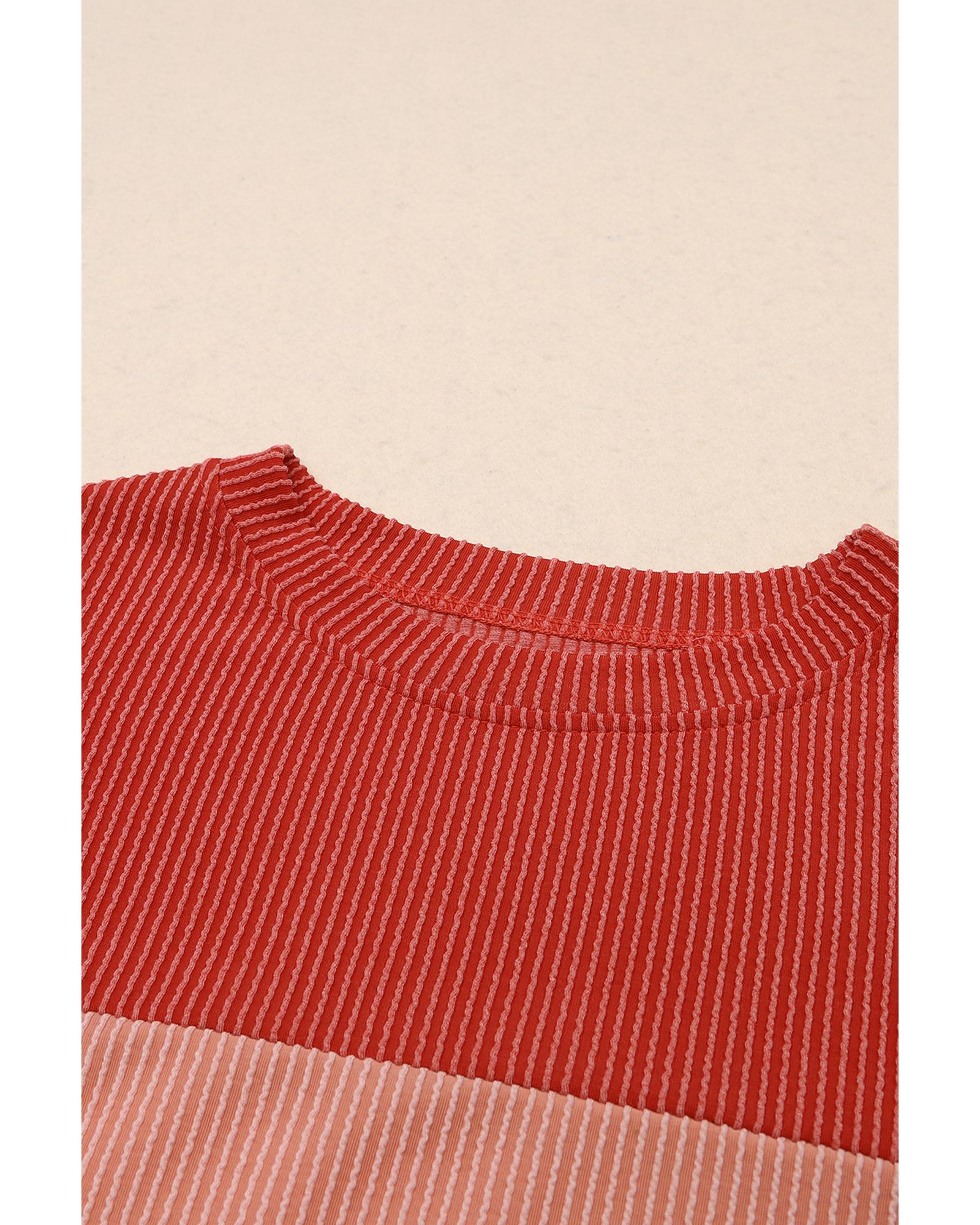 - Stylish and versatile Red Color Block Long Sleeve Ribbed Loose Top