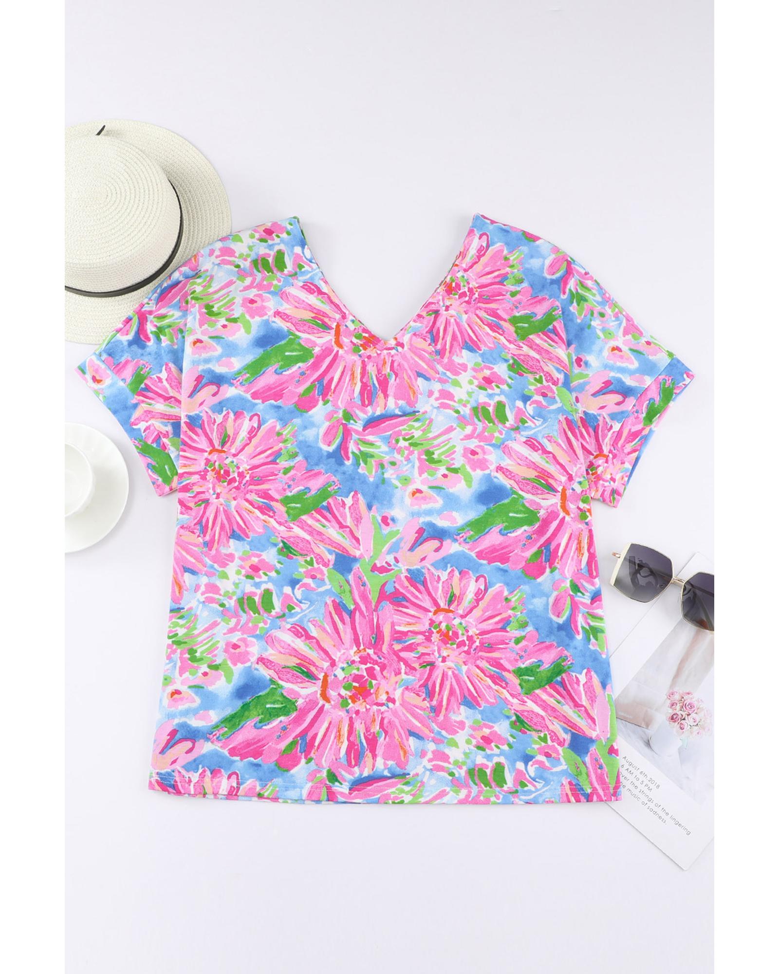 Azura Exchange Loose Fit Floral Print V Neck T Shirt – L