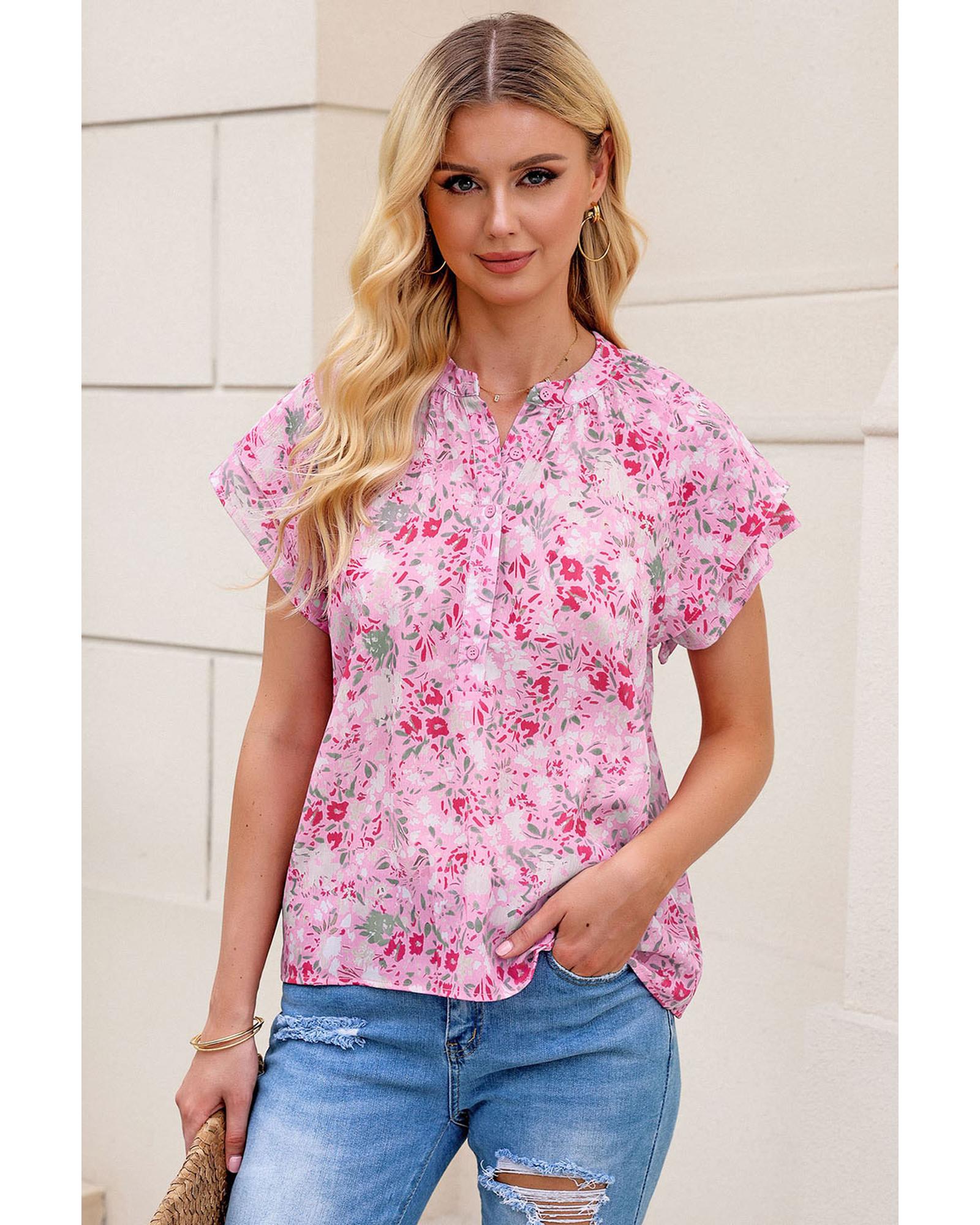 - Stylish and elegant Floral Mandarin Collar Top