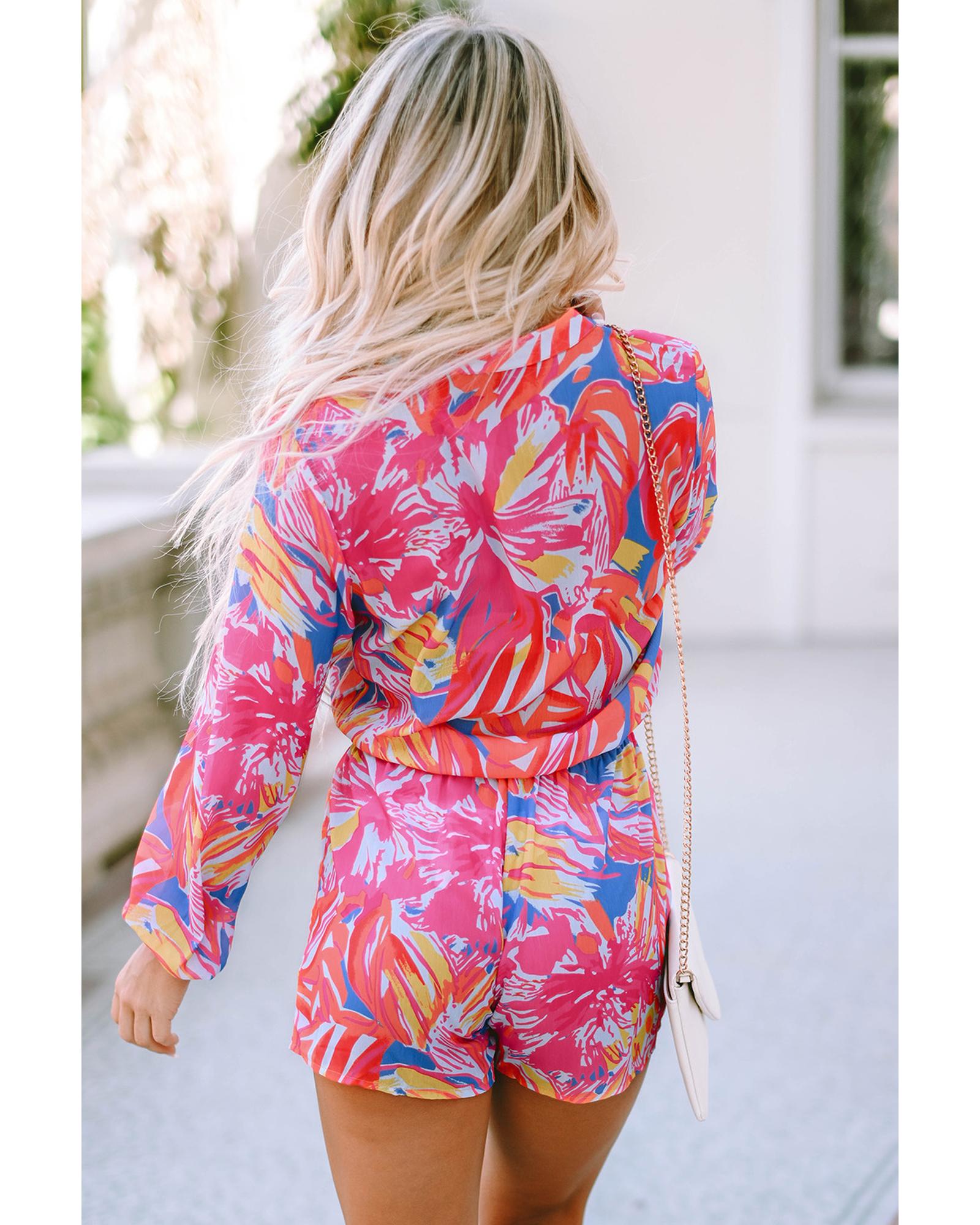 Azura Exchange Multicolor Bold Graffiti Print Shirt Button Romper – S