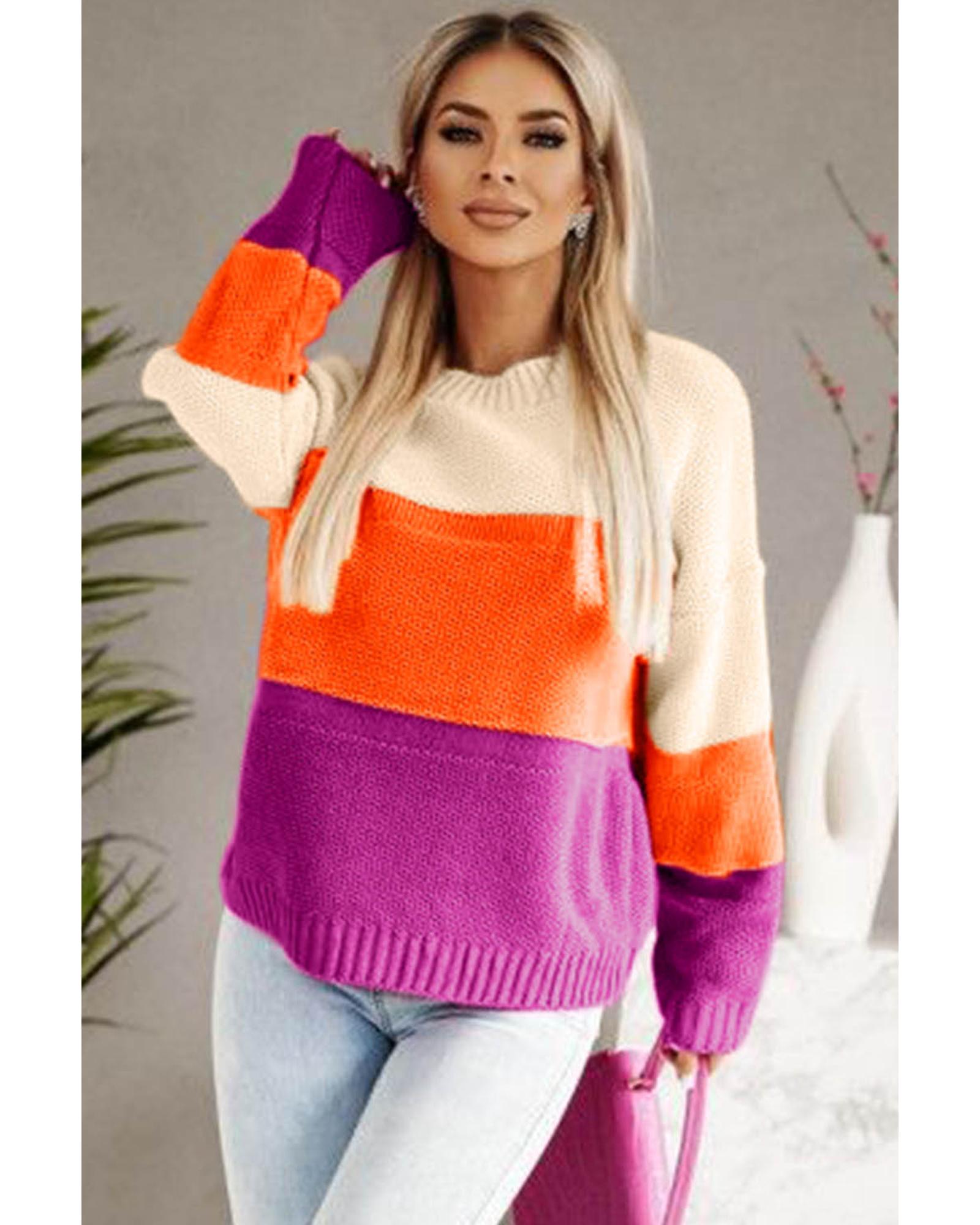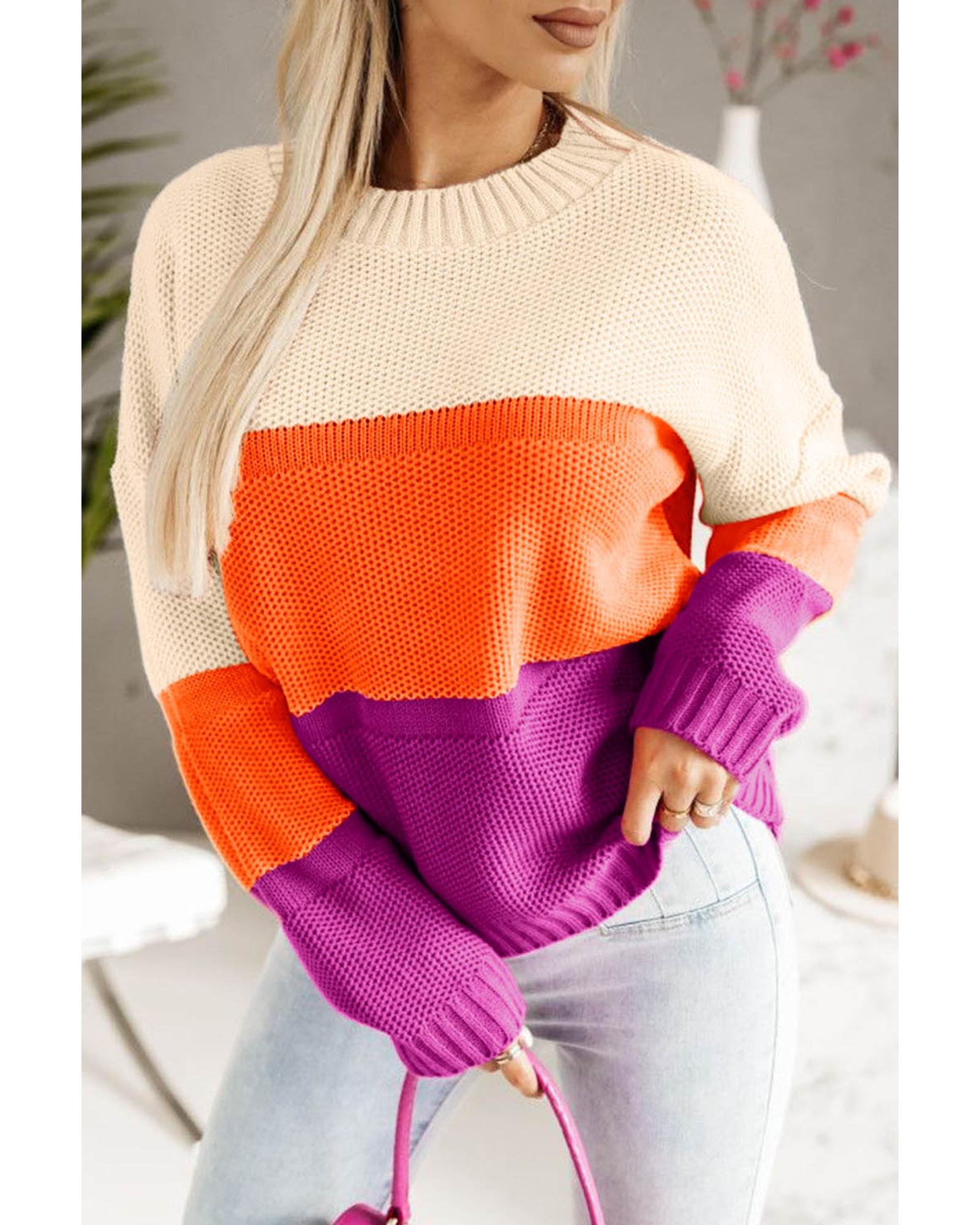 Azura Exchange Multicolor Color Block Drop Shoulder Round Neck Knit Sweater – S