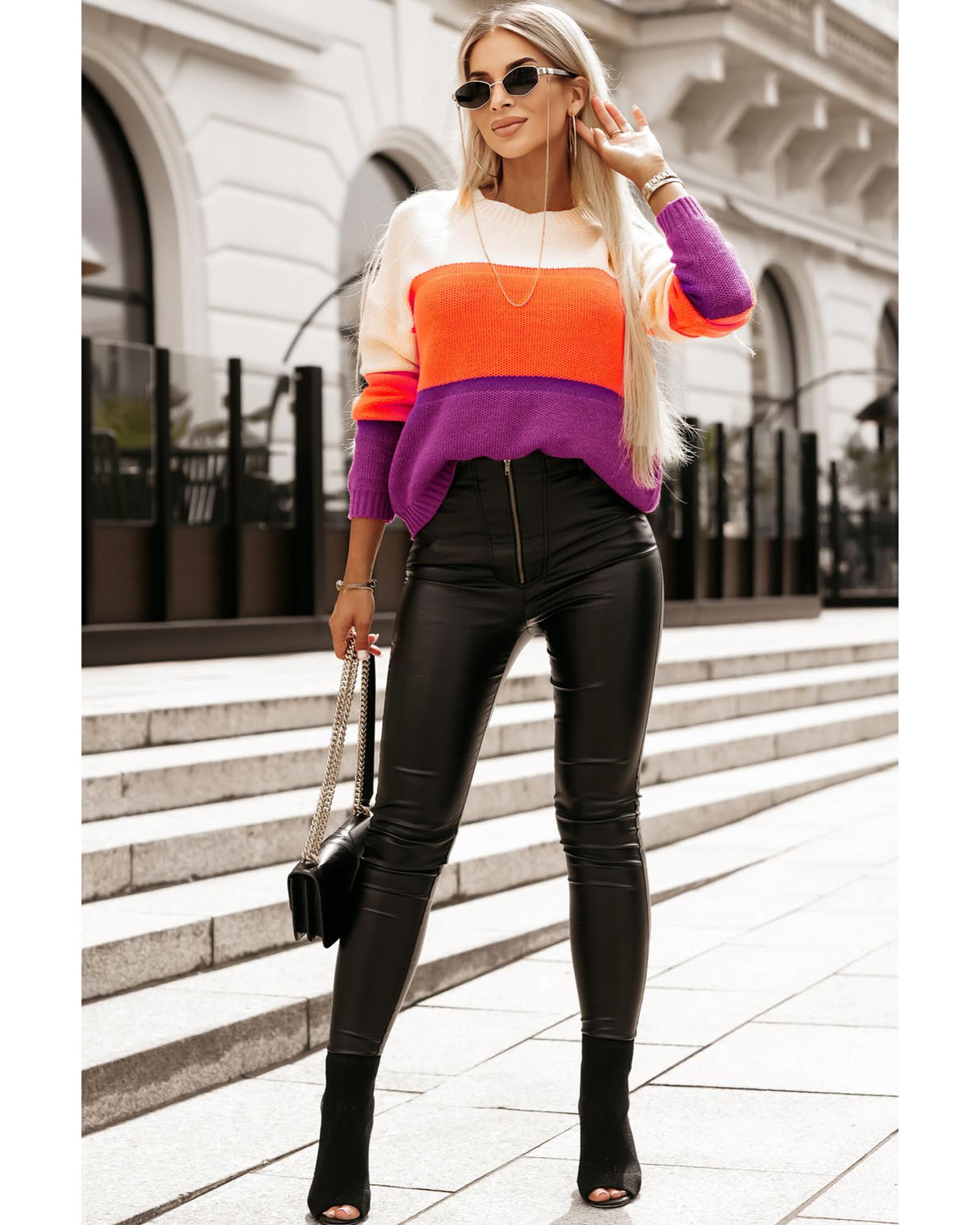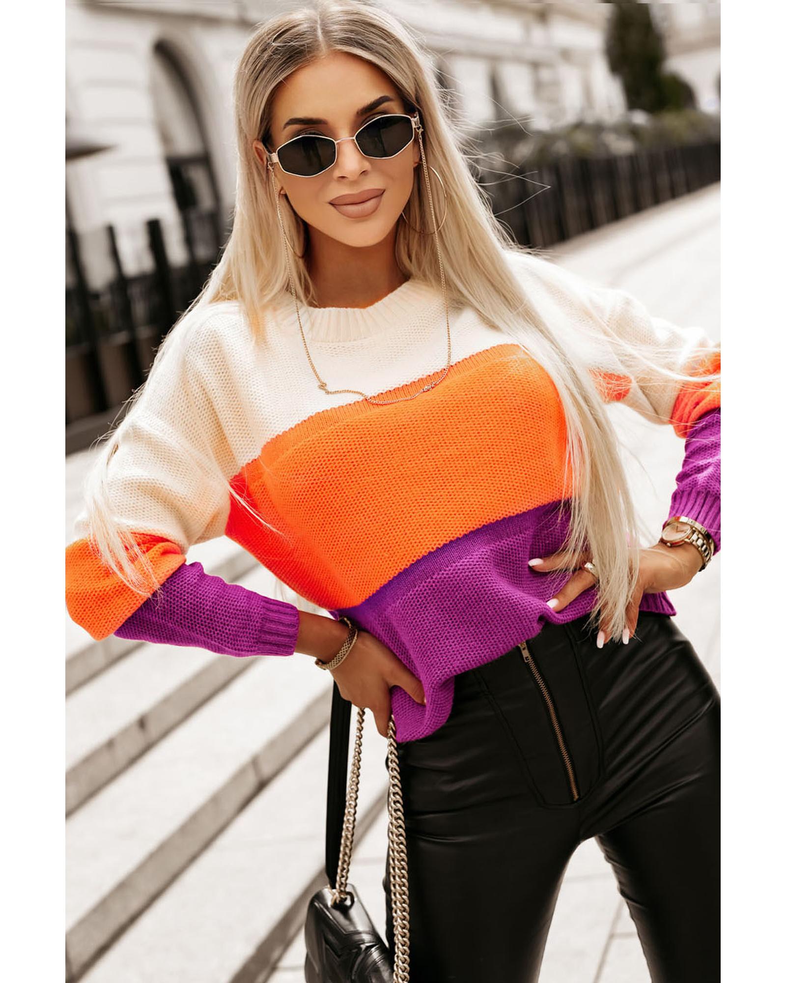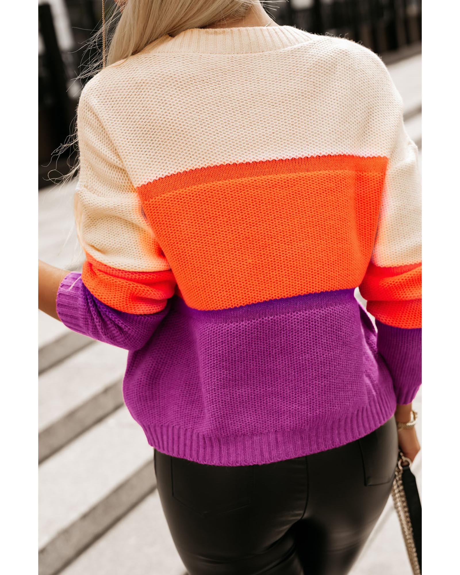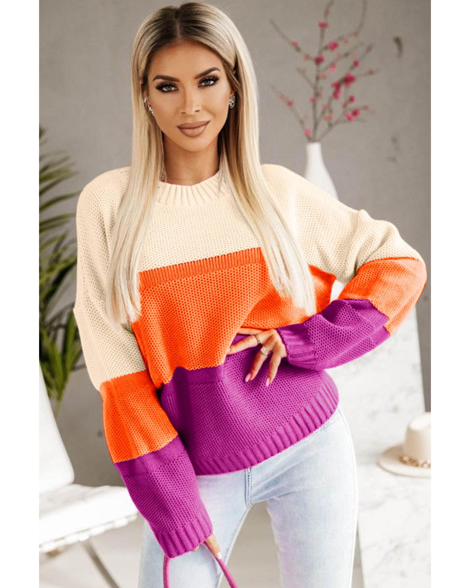 Azura Exchange Multicolor Color Block Drop Shoulder Round Neck Knit Sweater – XL