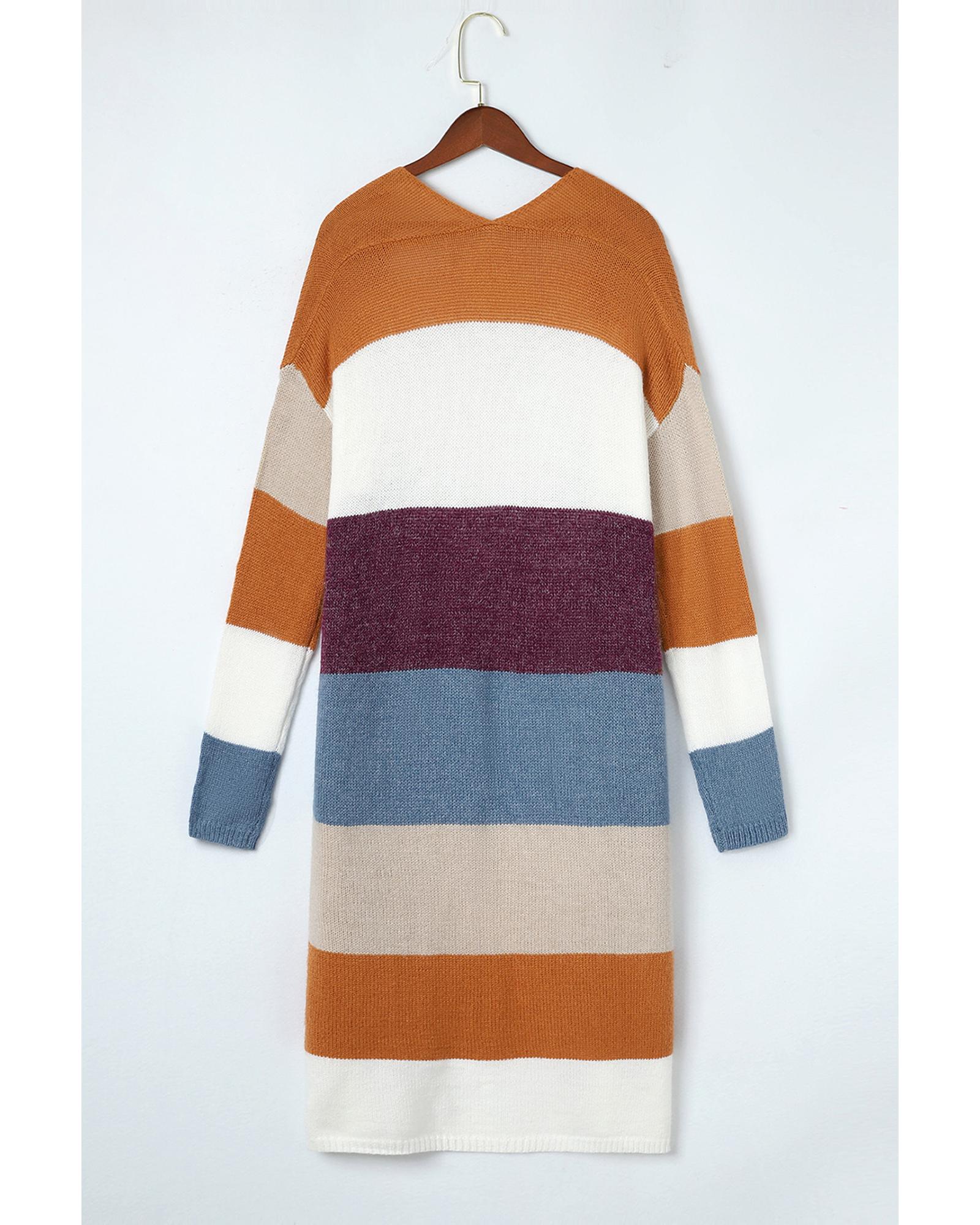 Azura Exchange Multicolor Colorblock Open Front Long Knit Cardigan – XL