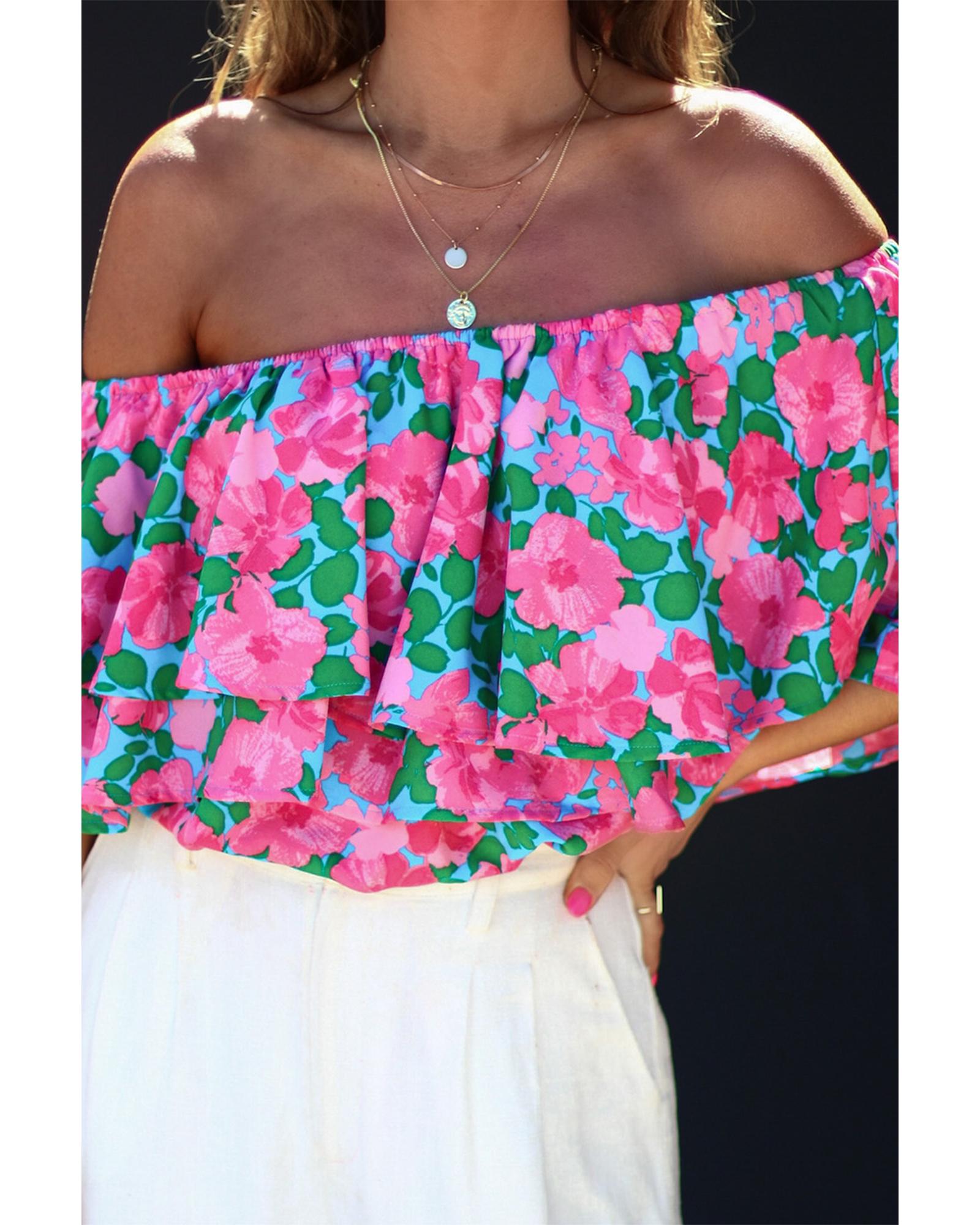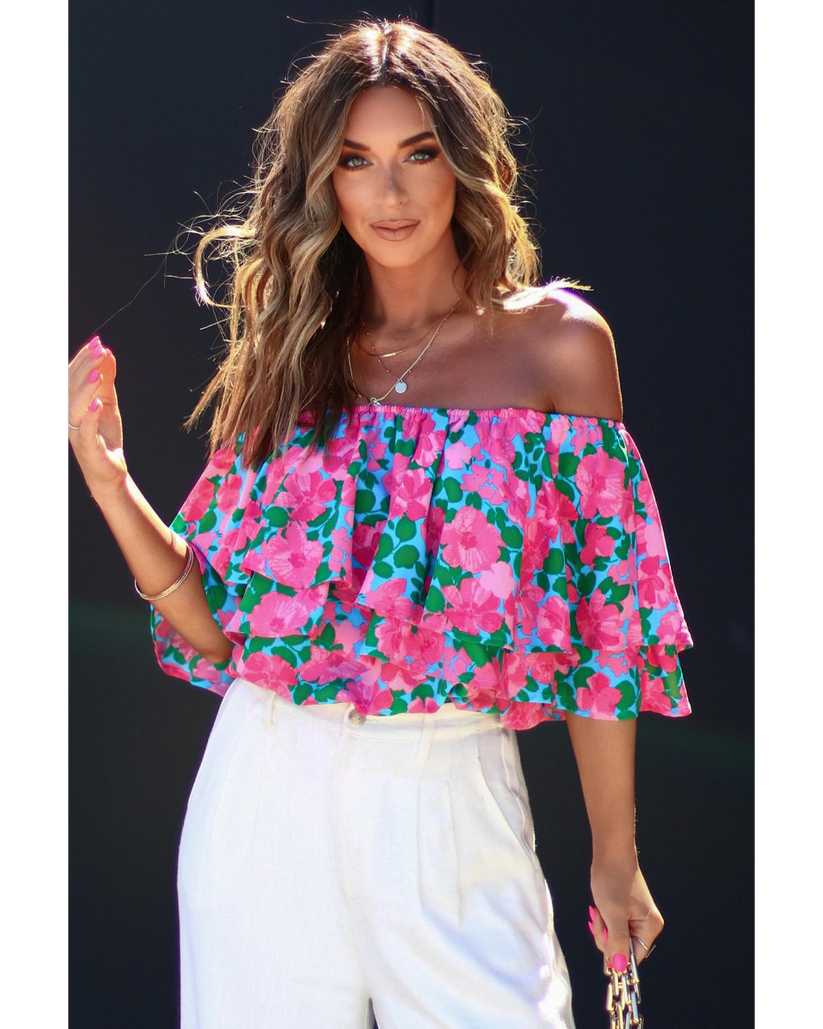 Azura Exchange Off-Shoulder Tiered Ruffle Blouse – S