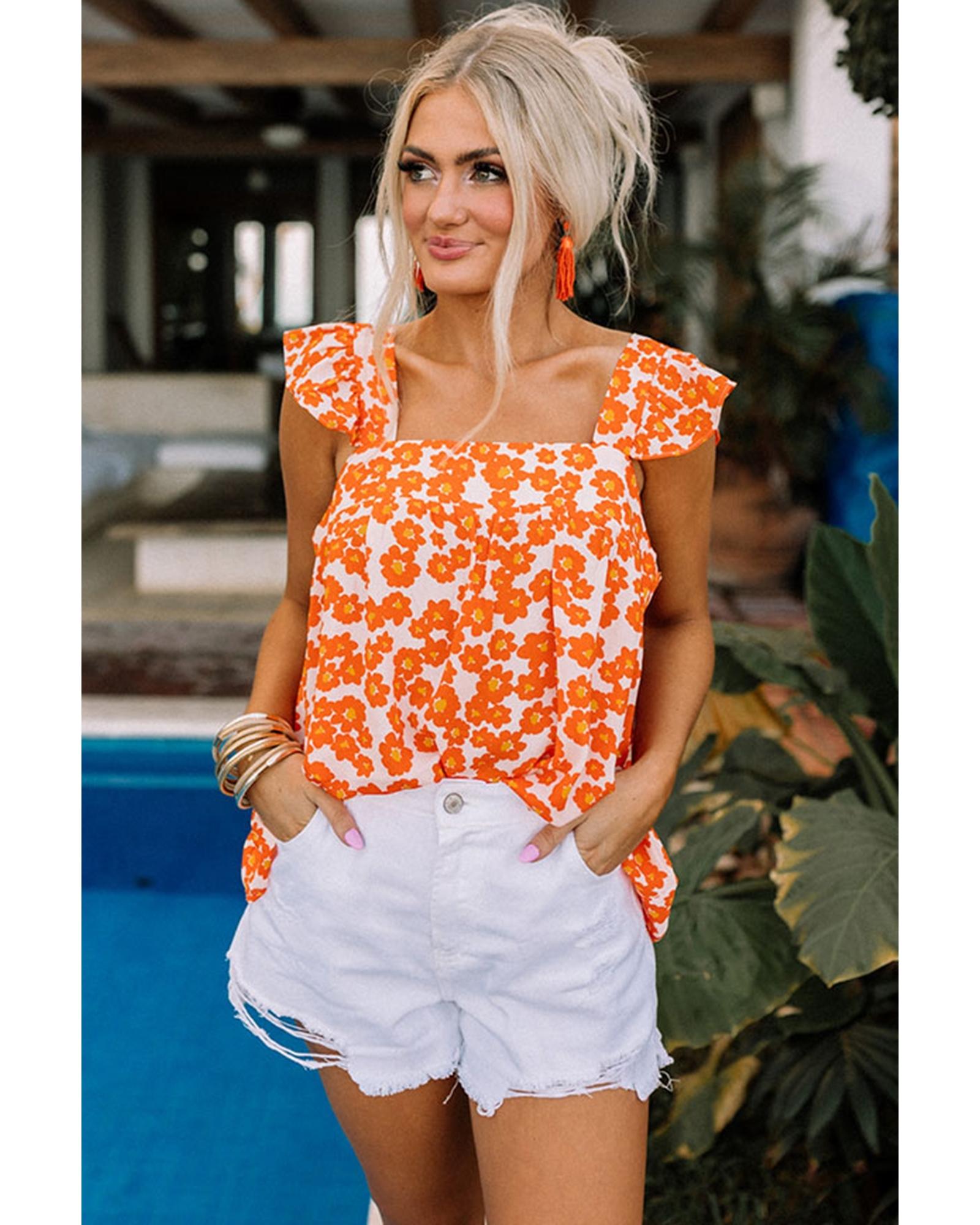 Azura Exchange Orange Floral Print Square Neck Ruffle Tank Top – XL