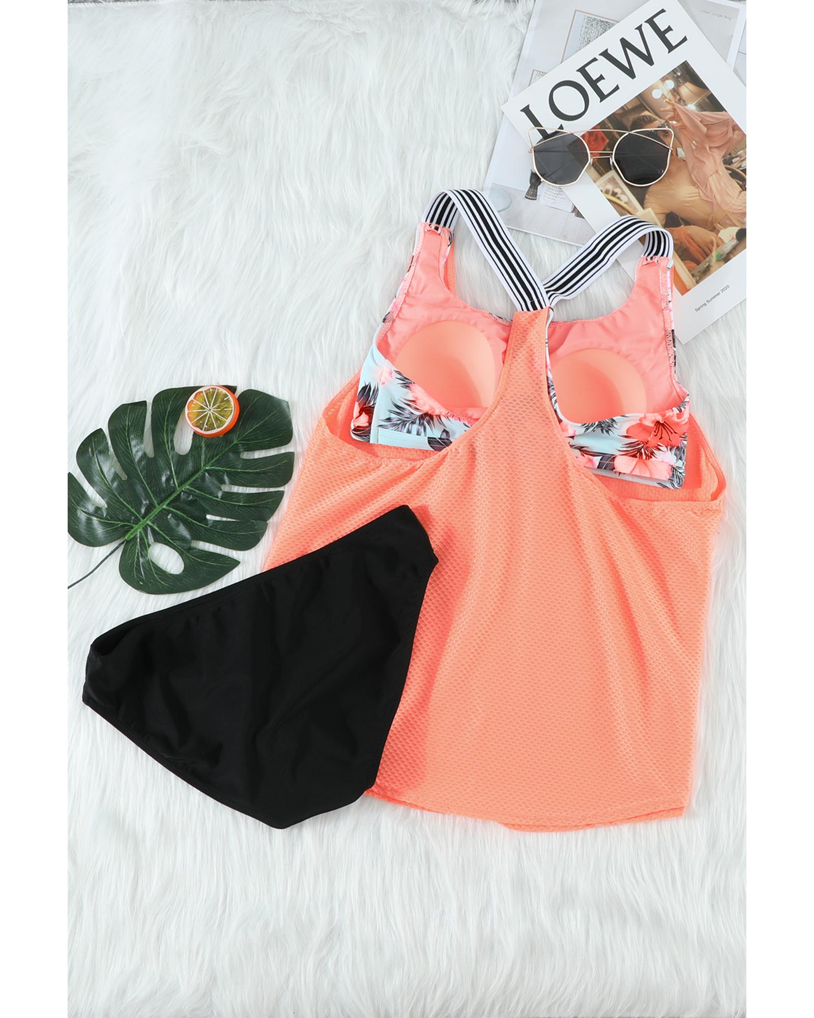 Azura Exchange Orange Printed Splicing Racerback Tankini – 2XL
