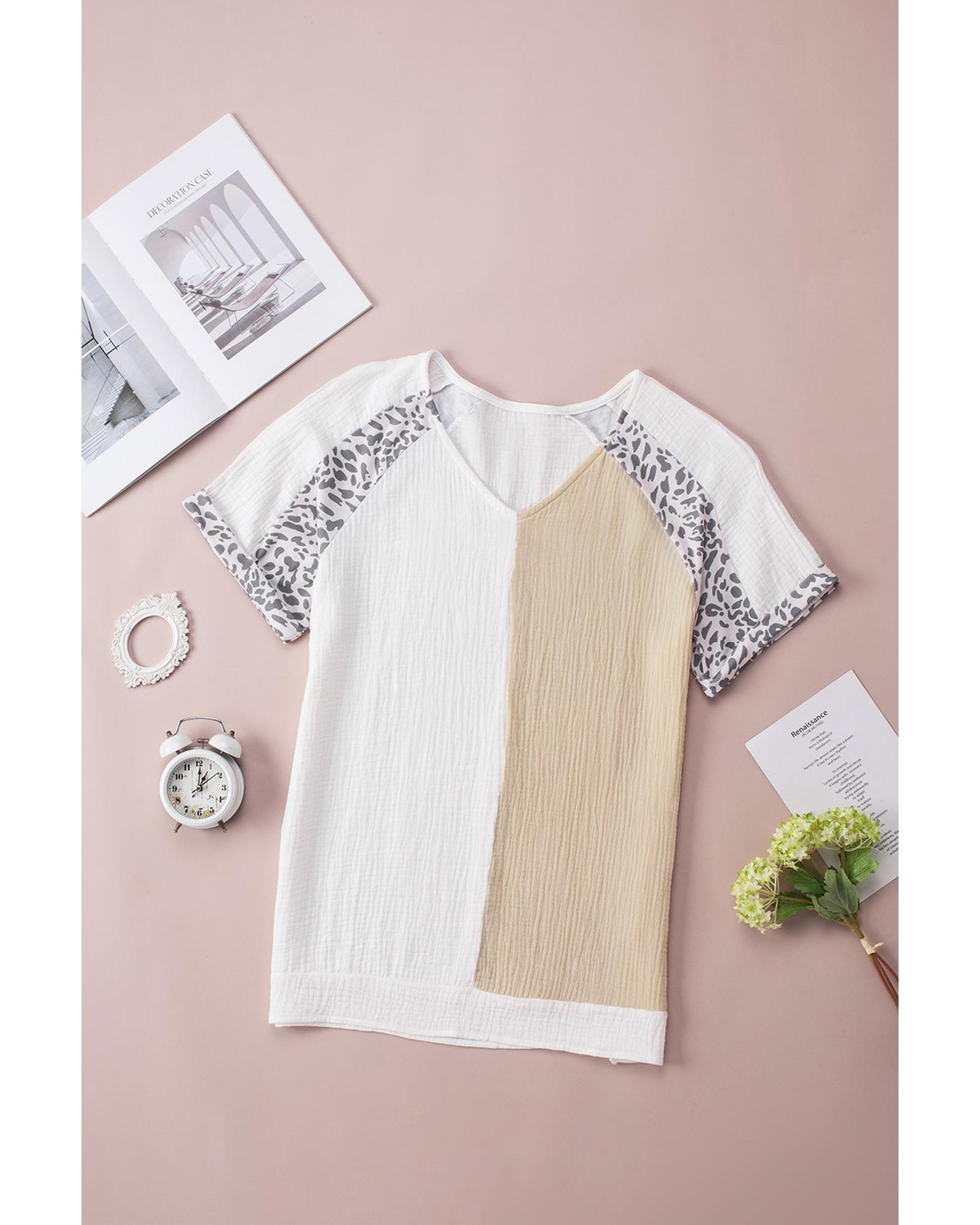 Azura Exchange Patchwork Leopard Trim Blouse - S Original price was: $57.99.Current price is: $30.99.