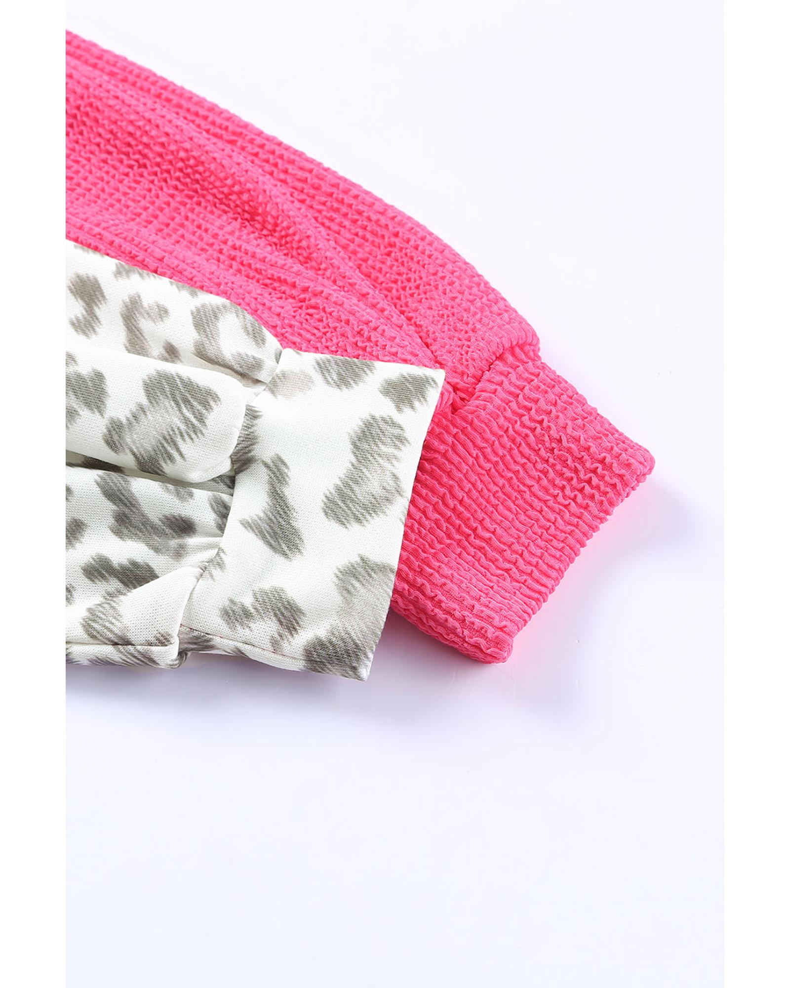 - Leopard Patchwork Color Block Ribbed Long Sleeve Top