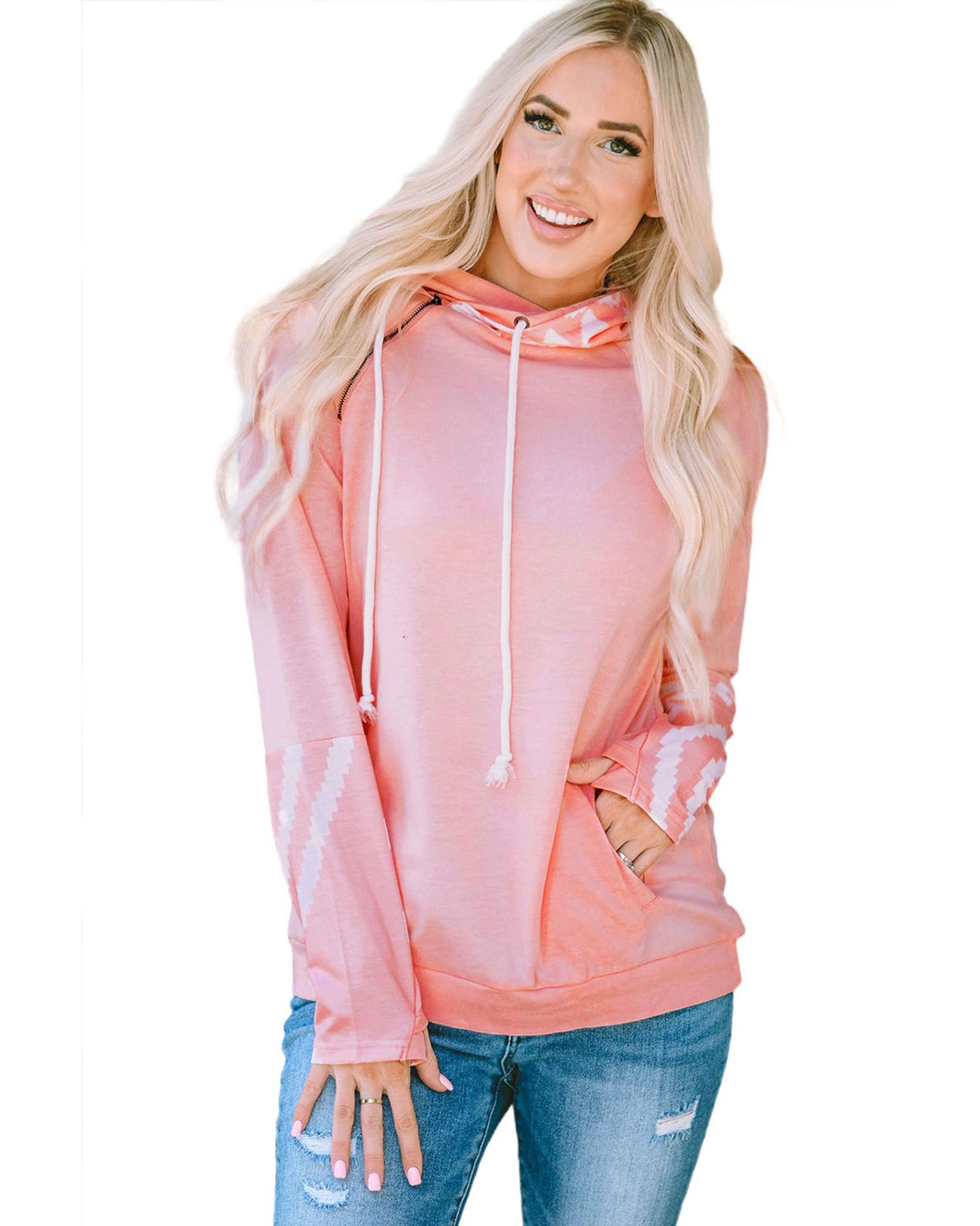 - Stylish and comfortable Aztec Print Patchwork Thumb Hole Hoodie