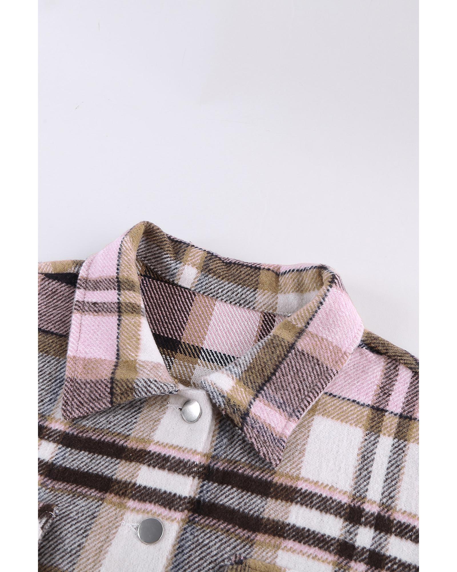 Azura Exchange Pink Geometric Plaid Print Pocketed Shacket – L