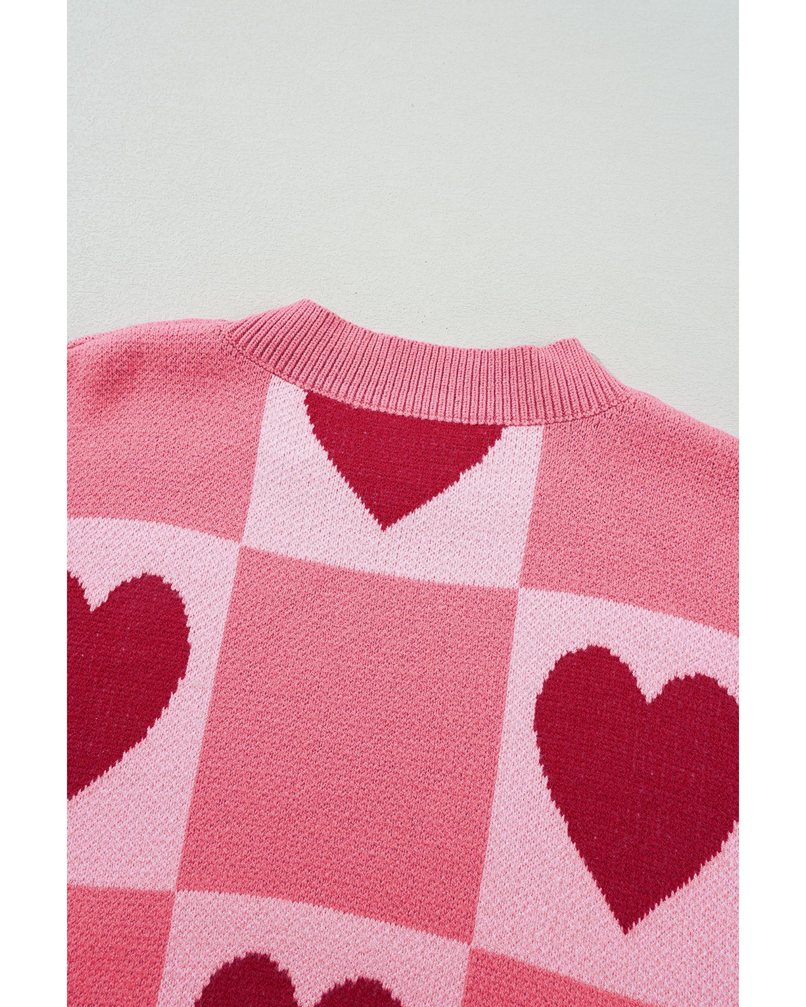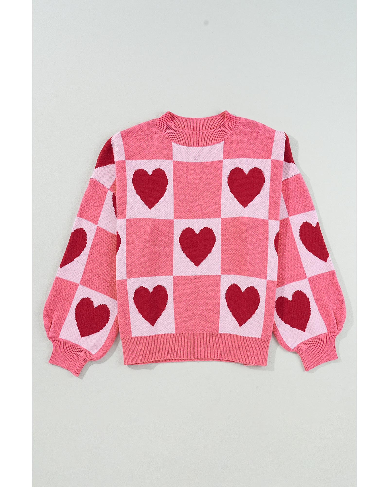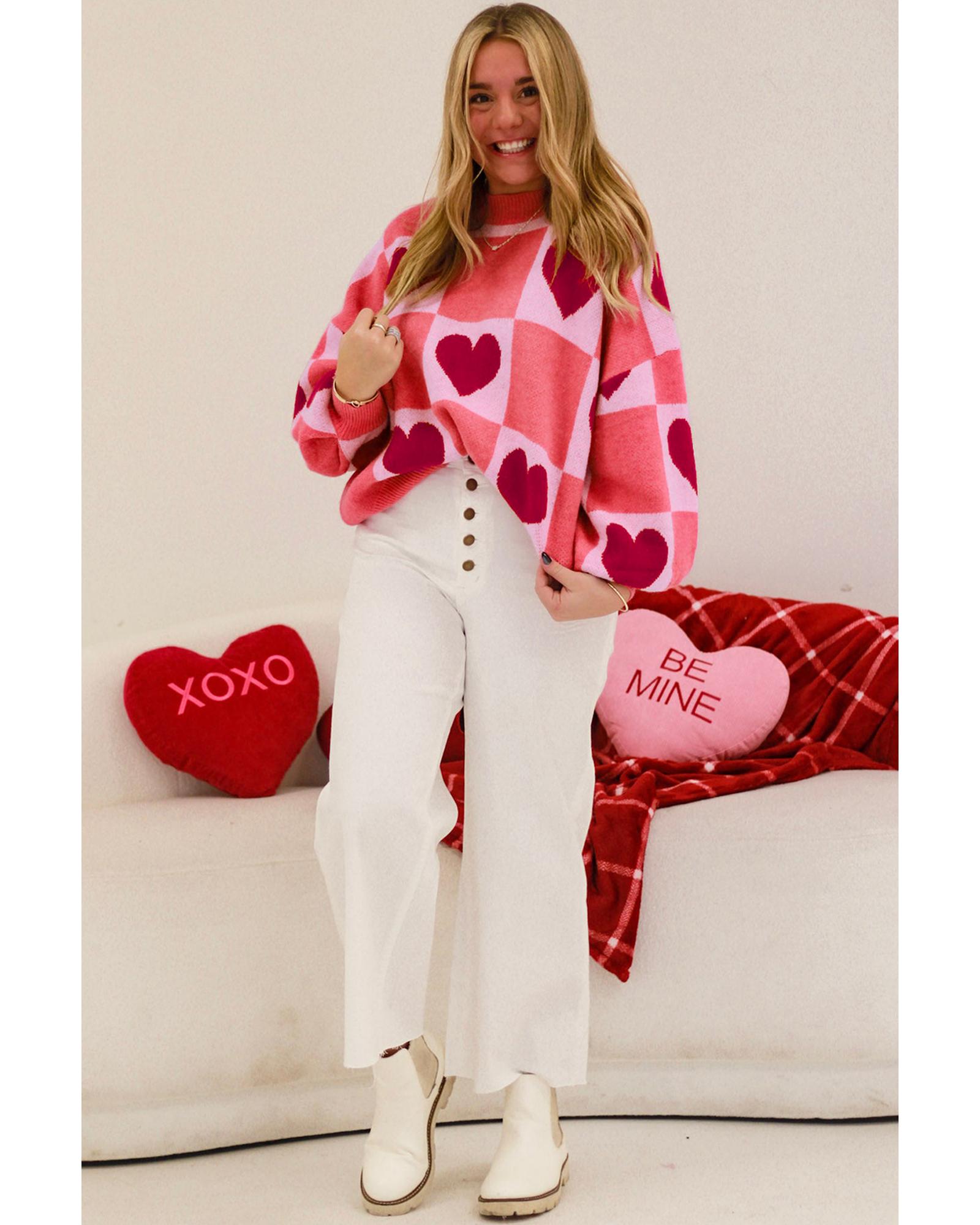Azura Exchange Pink Plus Size Love Heart Block Mock Neck Lantern Sleeve Valentine Sweater – 2X