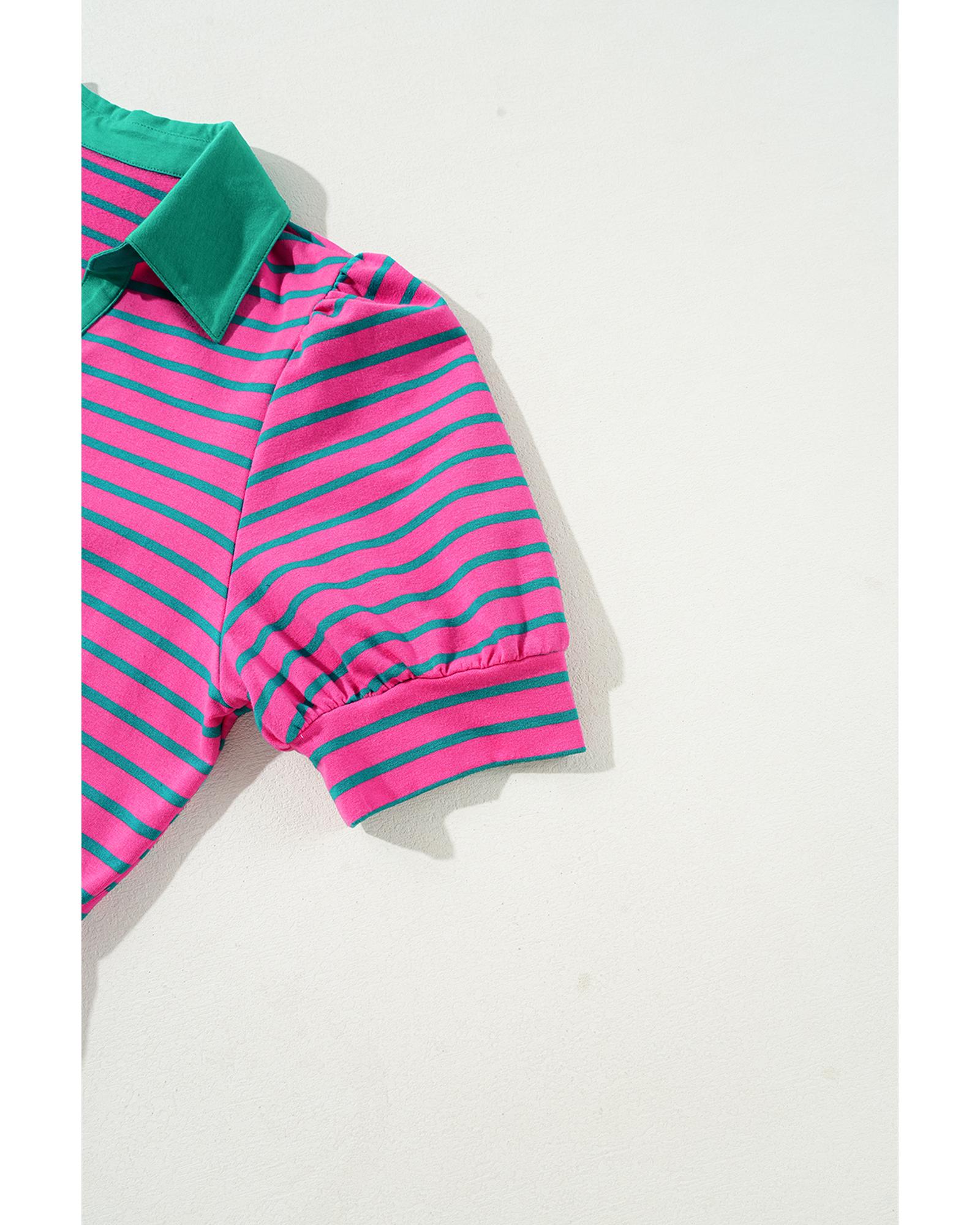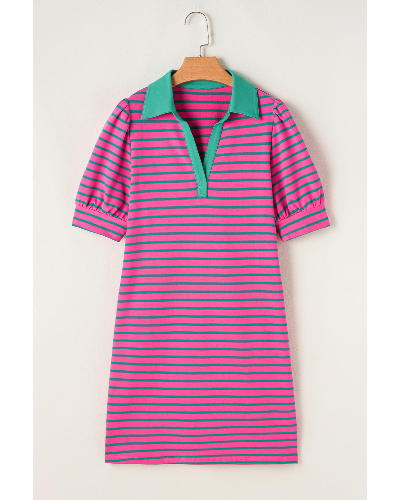 Azura Exchange Pink Stripe Collared V Neck Puff Sleeve T Shirt Dress - S Original price was: $68.99.Current price is: $36.99.