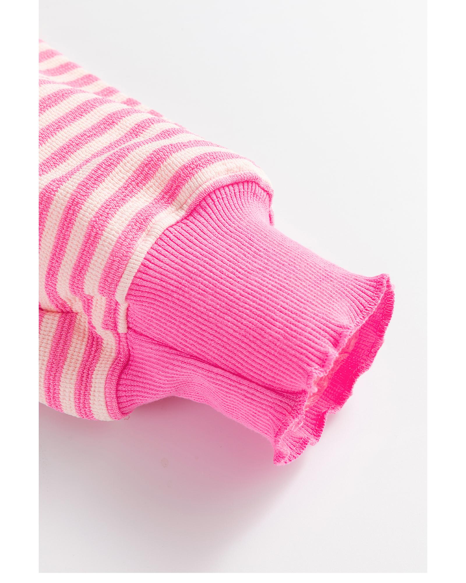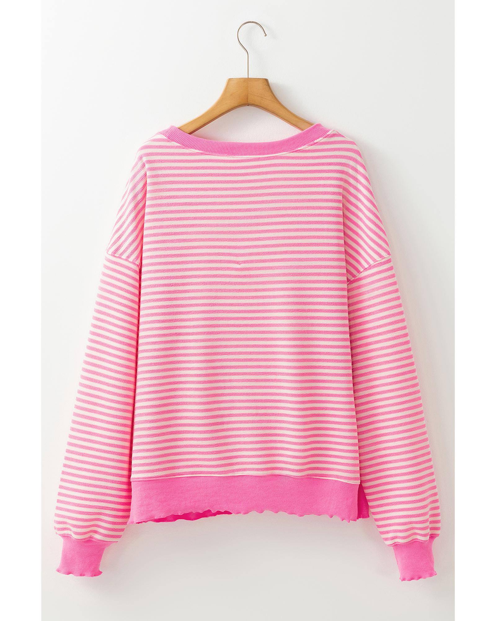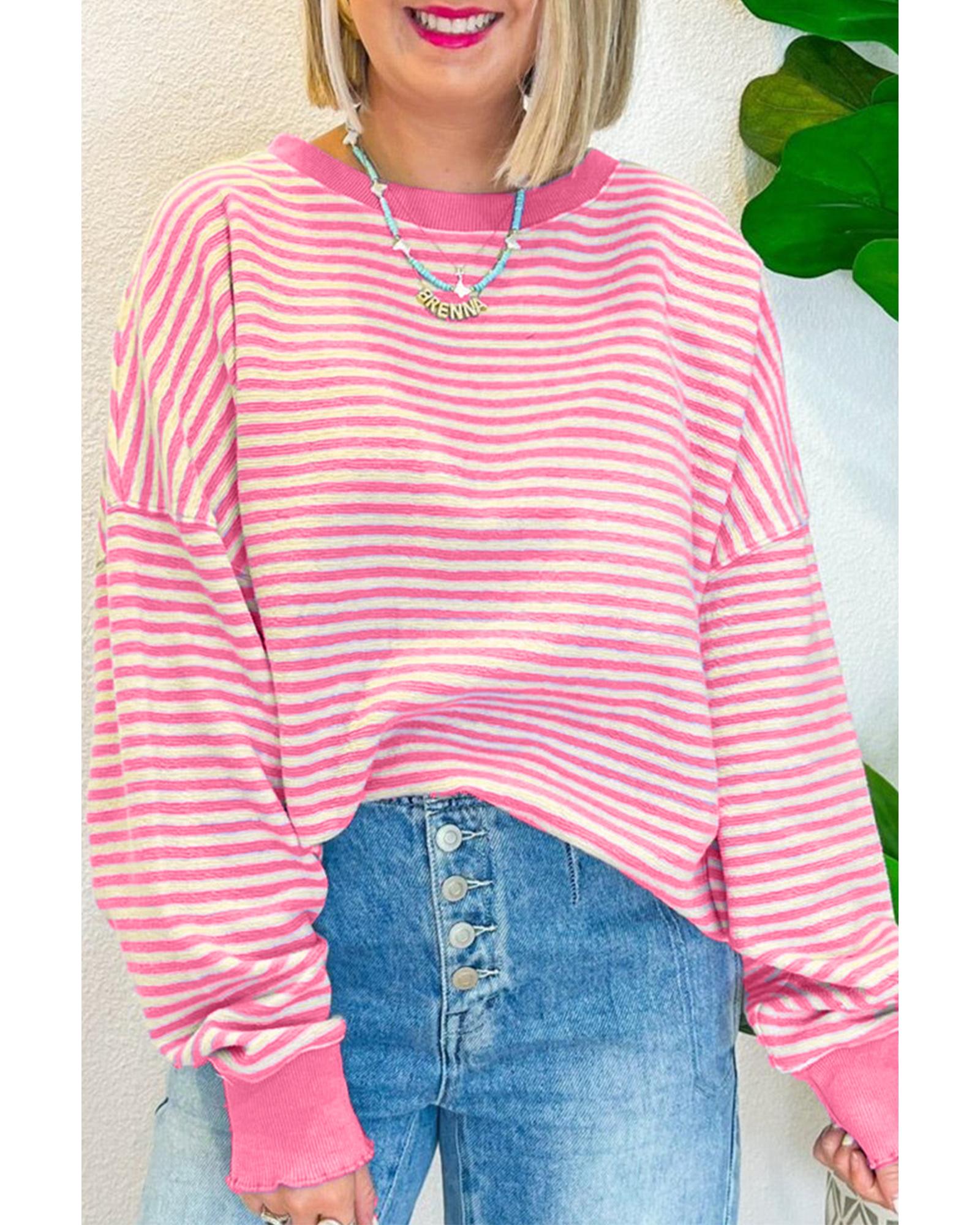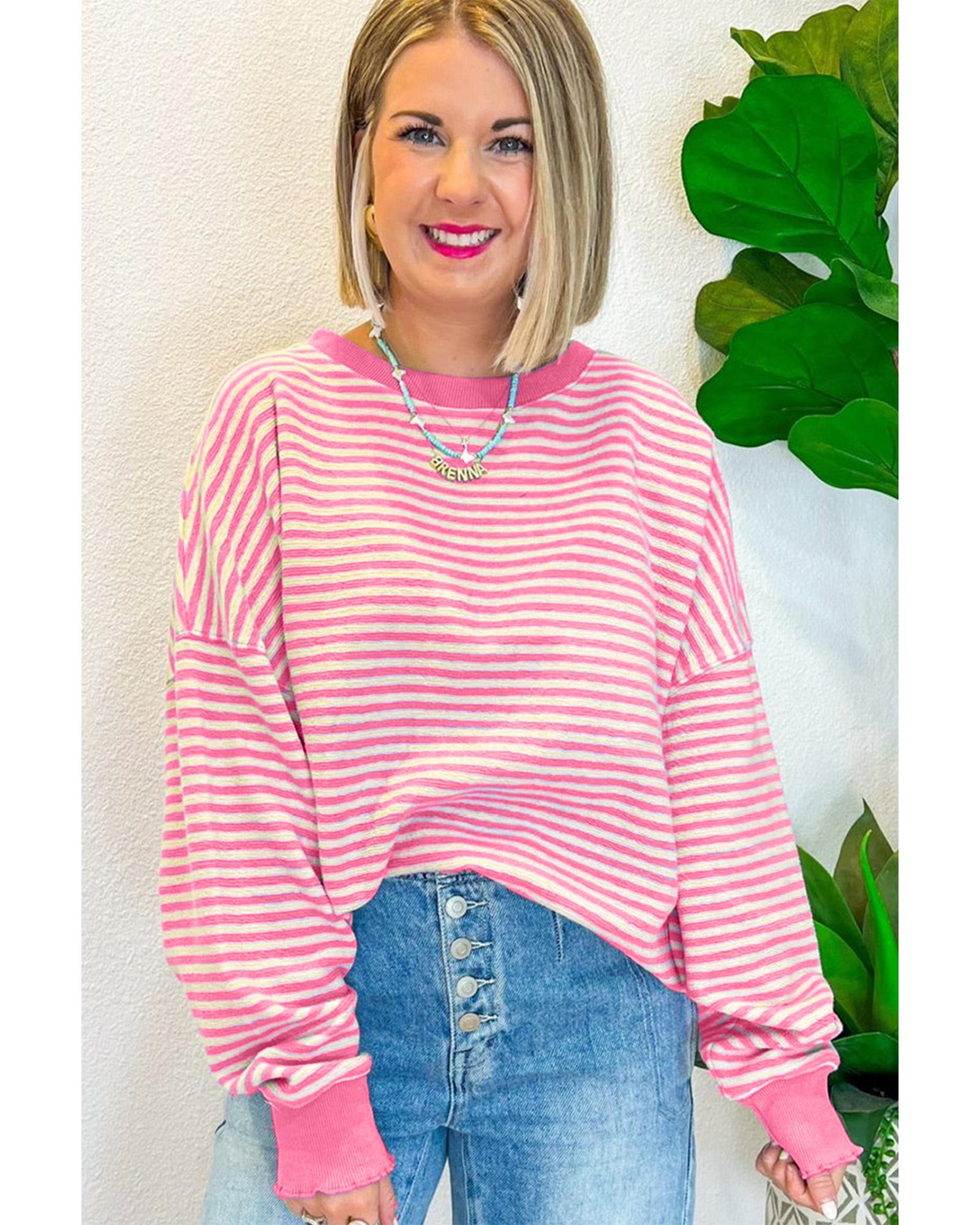 Azura Exchange Pink Stripe Loose Drop Shoulder Long Sleeve Top – L